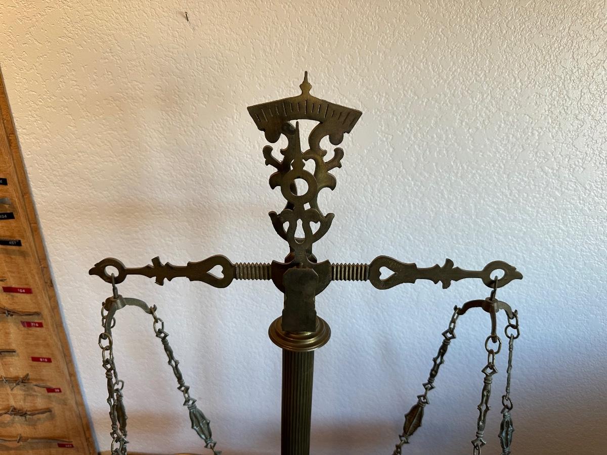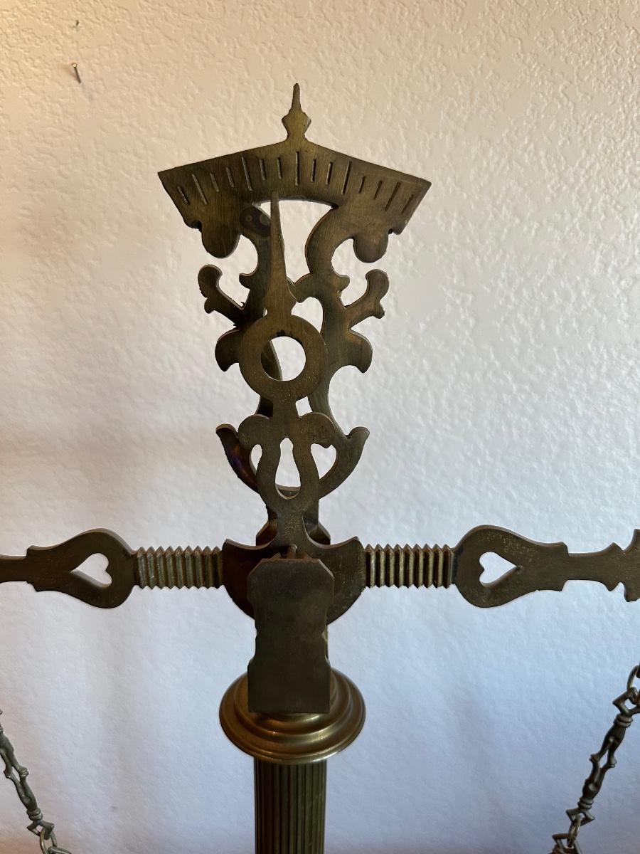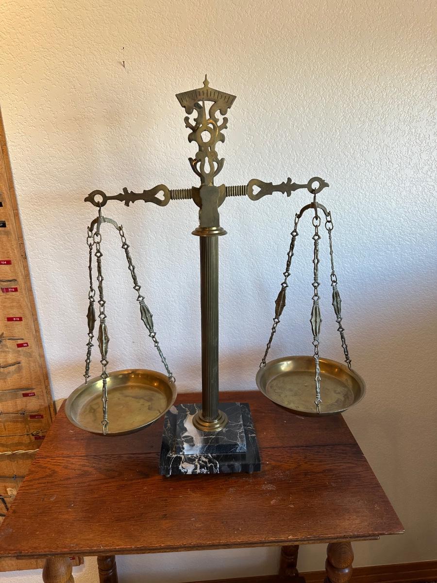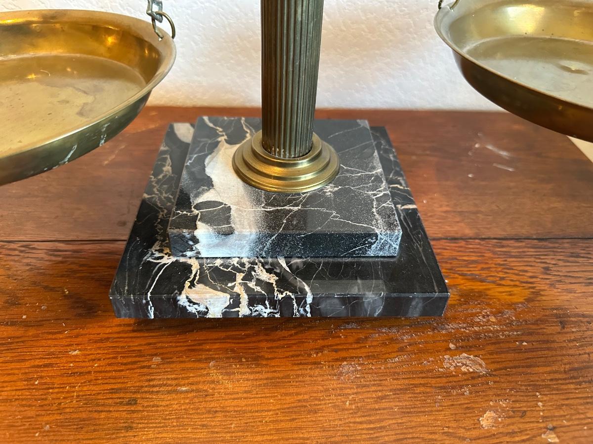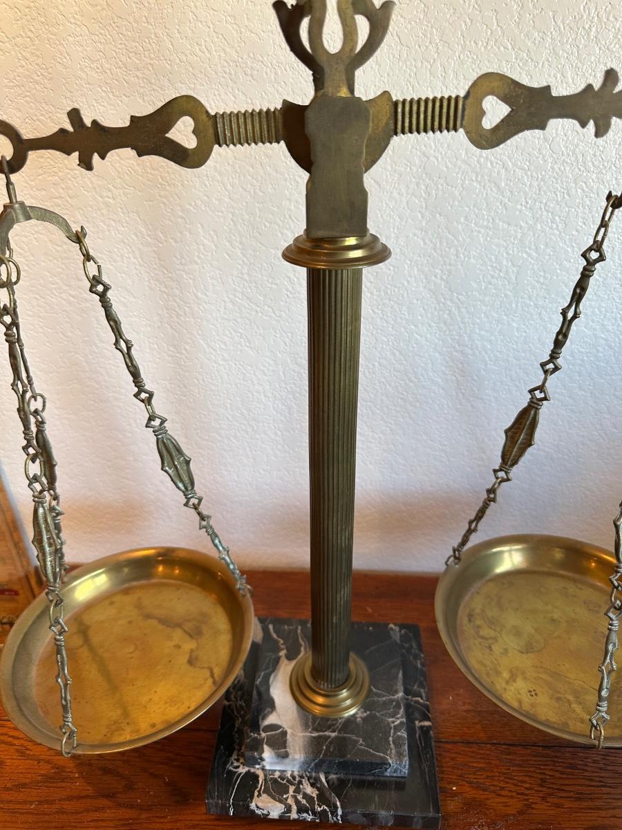 BRASS BALANCE SCALE WITH A MARBLE BASE