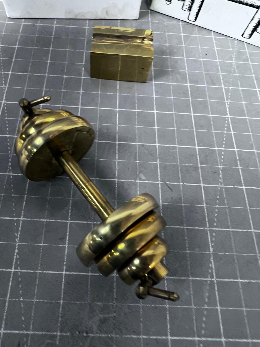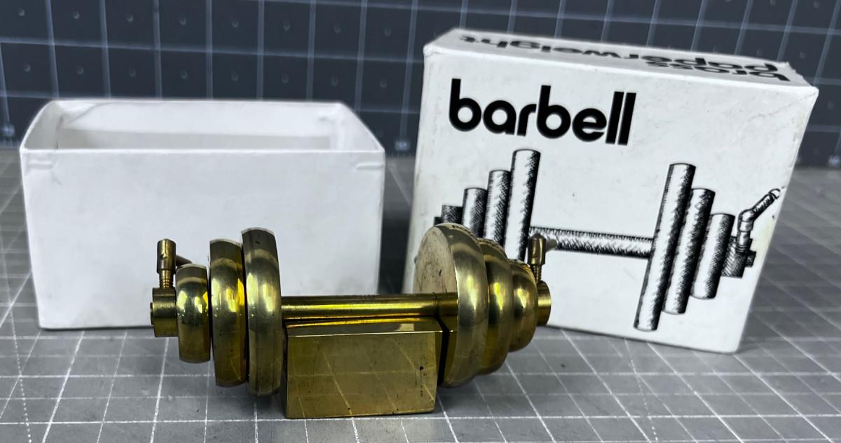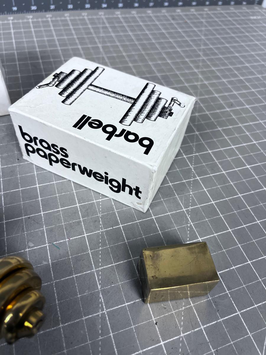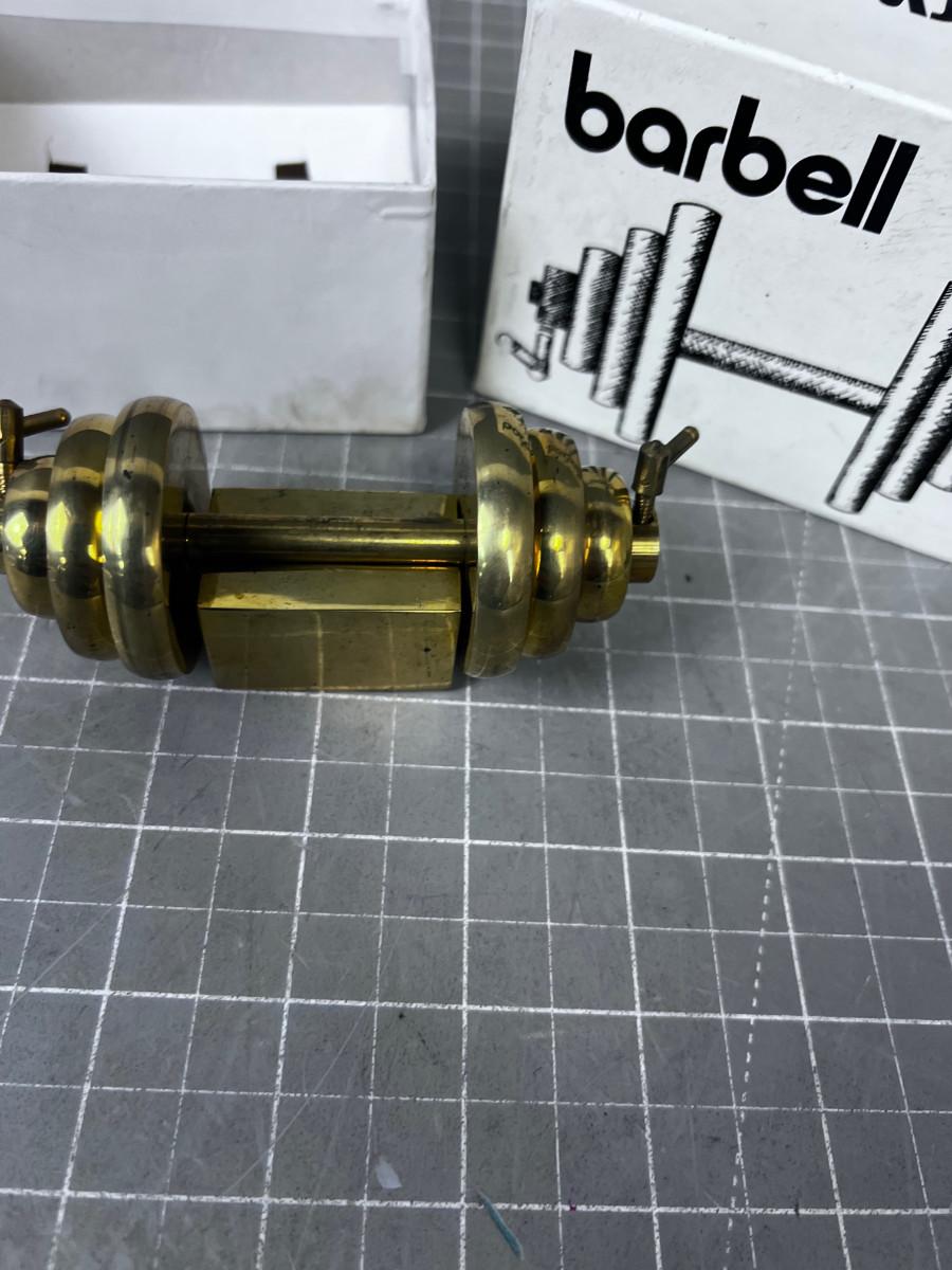 Brass Barbell Paper Weight, In the box