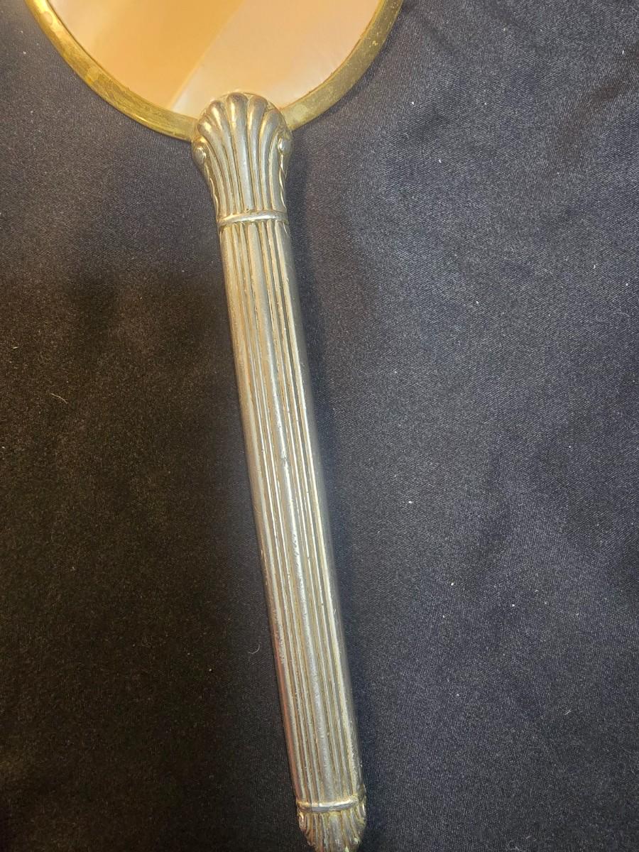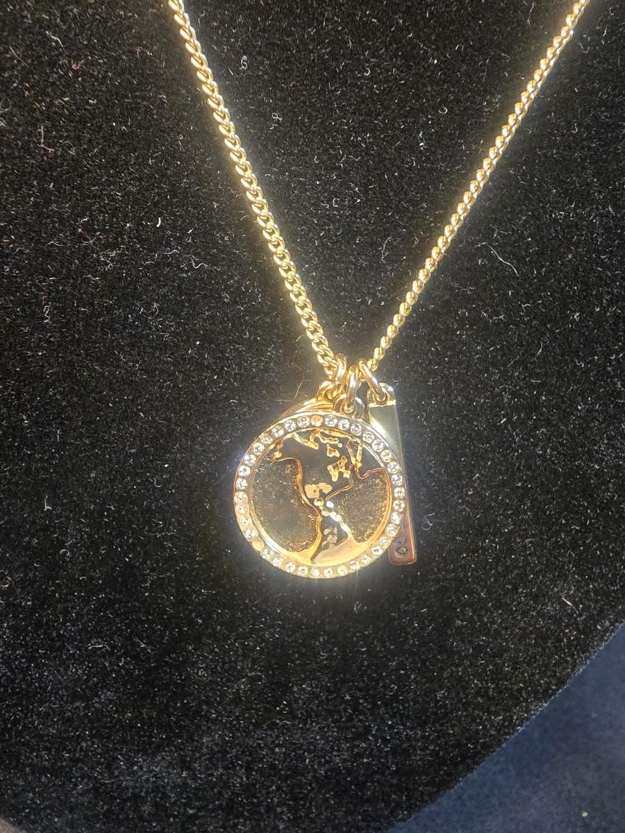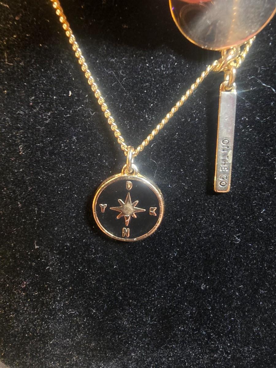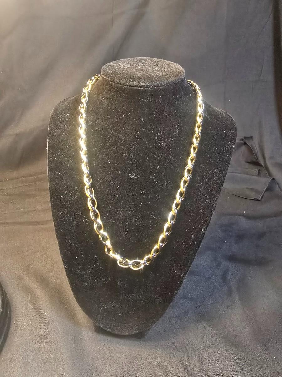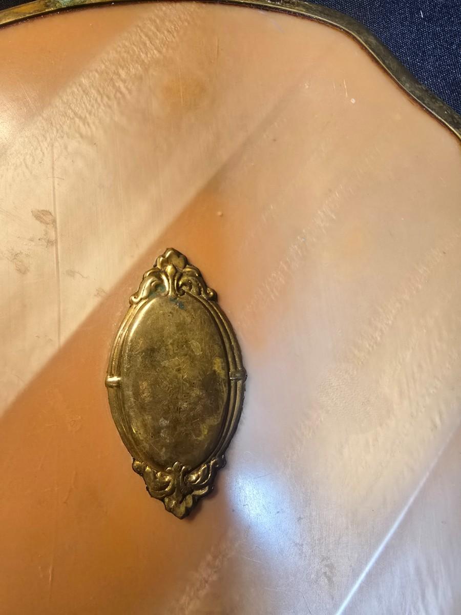 BRASS BASE DOUBLE LIGHTED LAMP, VANITY MIRROR, 2 NECKLACES AND A PURSE