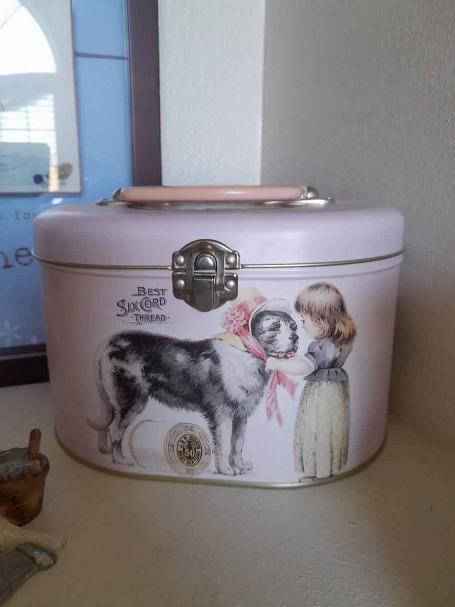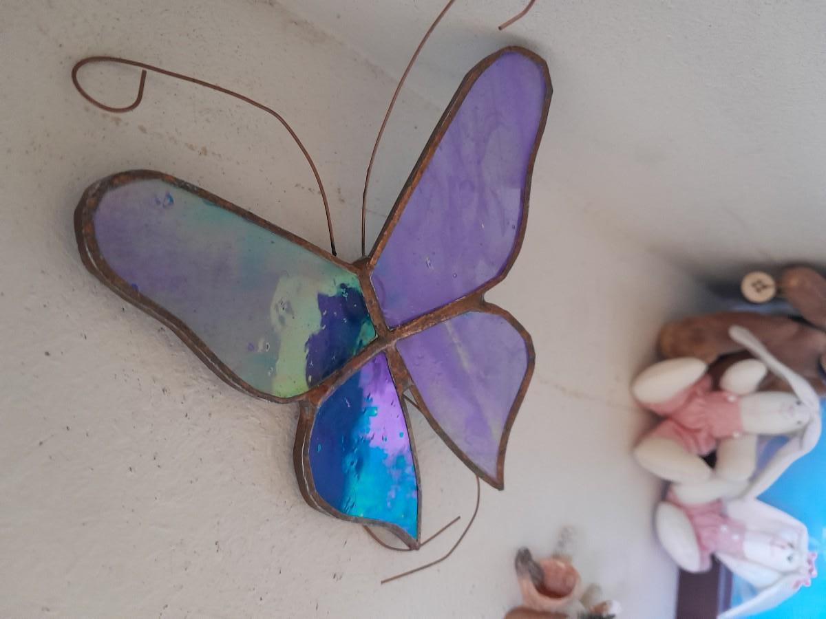 METAL HINGED BOX WITH HANDLE, GLASS BUTTERFLY
