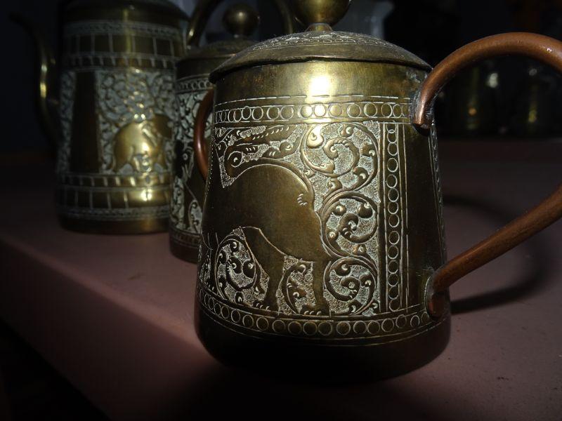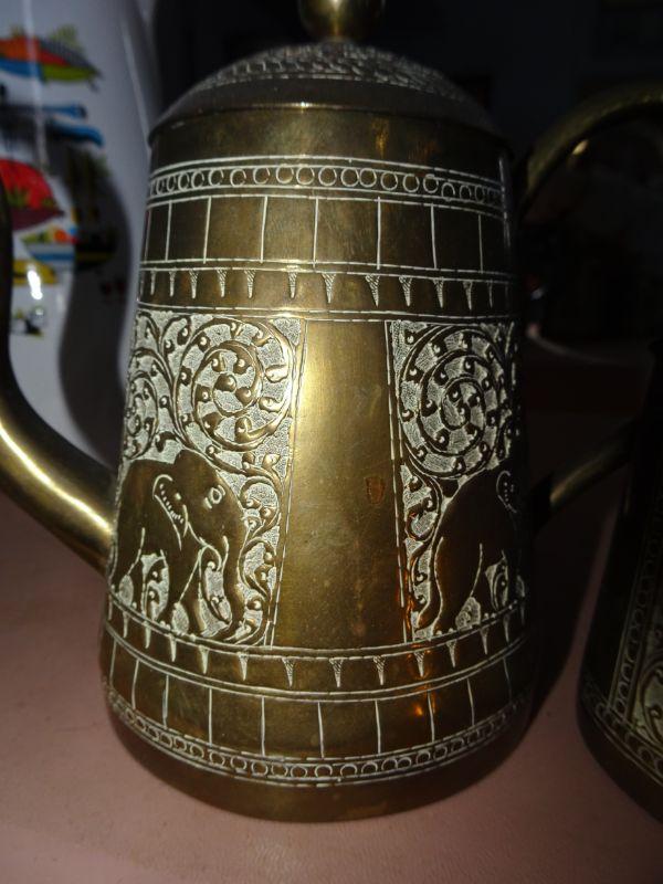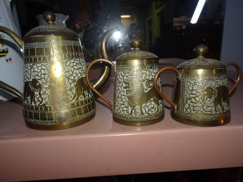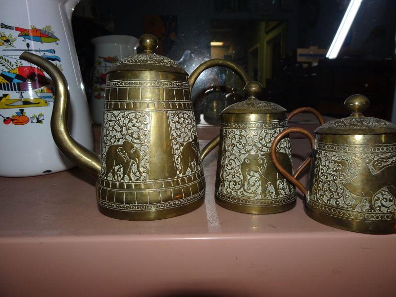 Brass Bohemian Style Coffee Pot, Creamer & Sugar