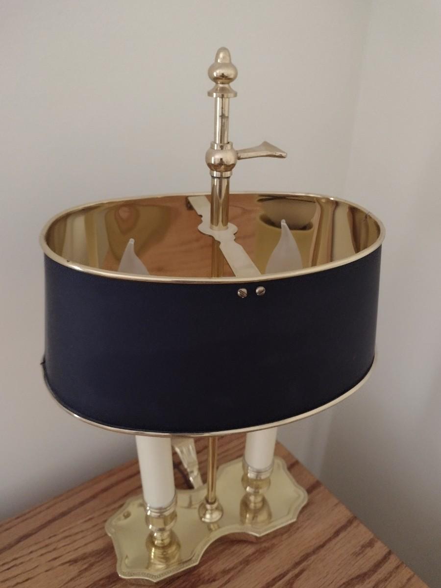 Brass Bouillotte French Style Desk Lamp with Navy Blue Shade
