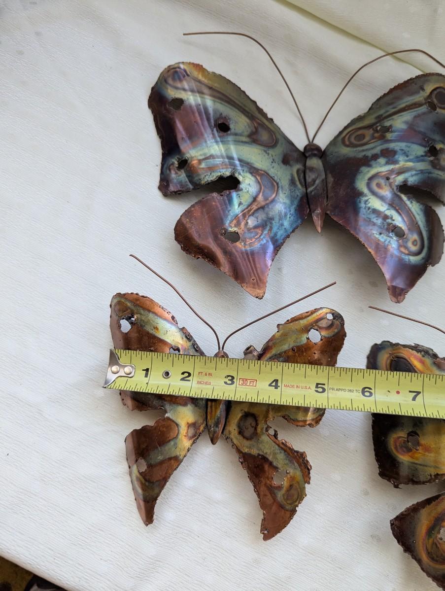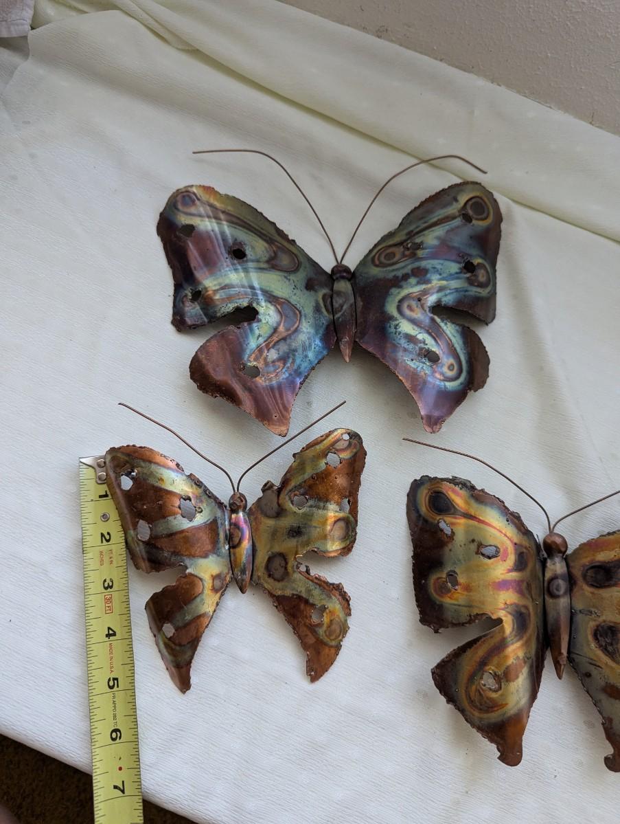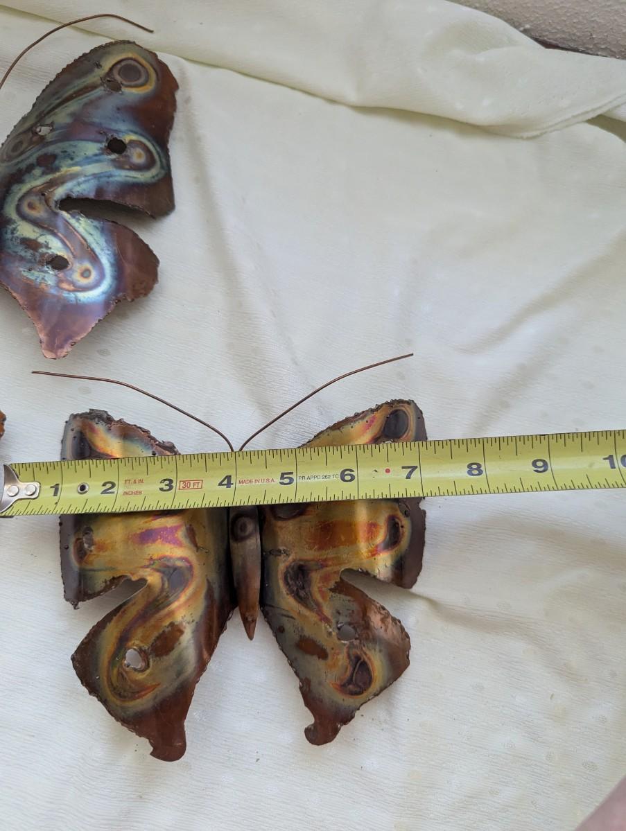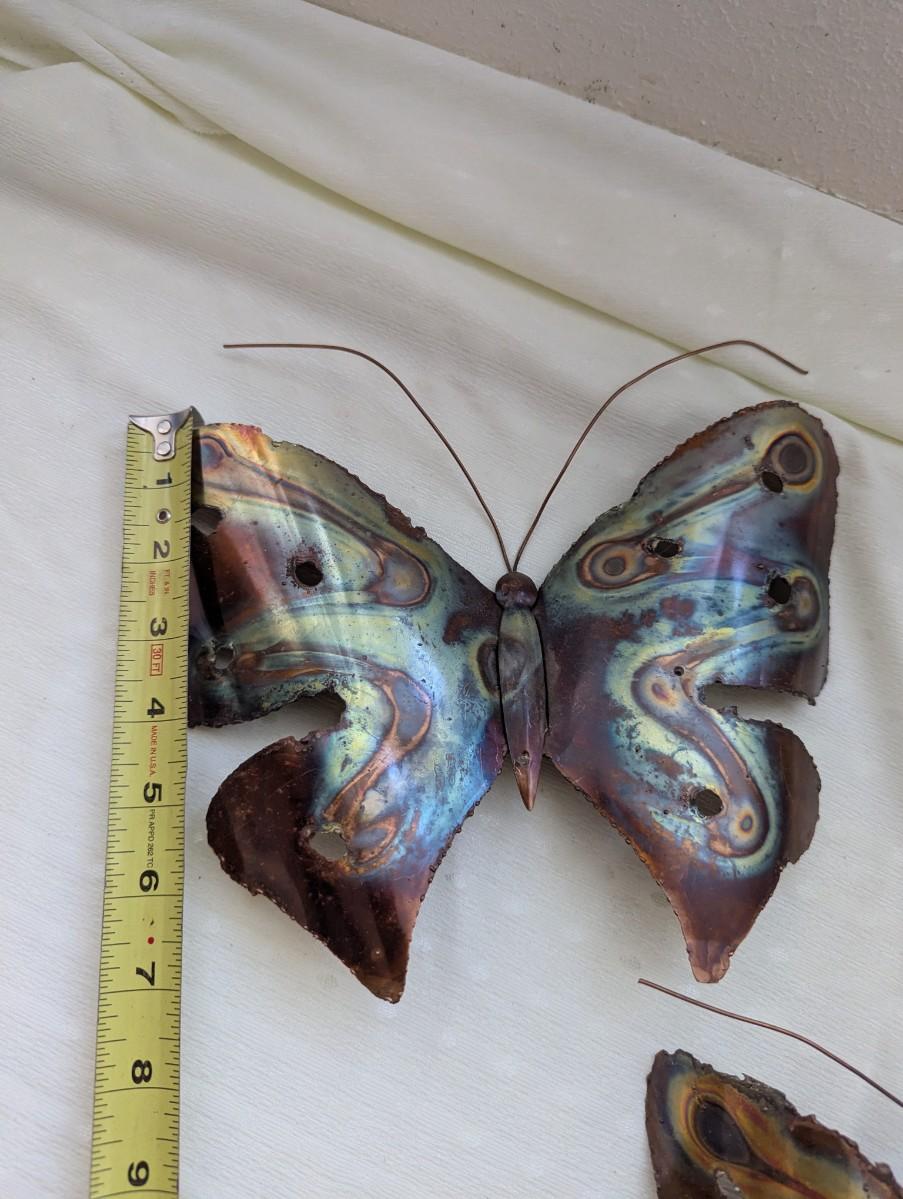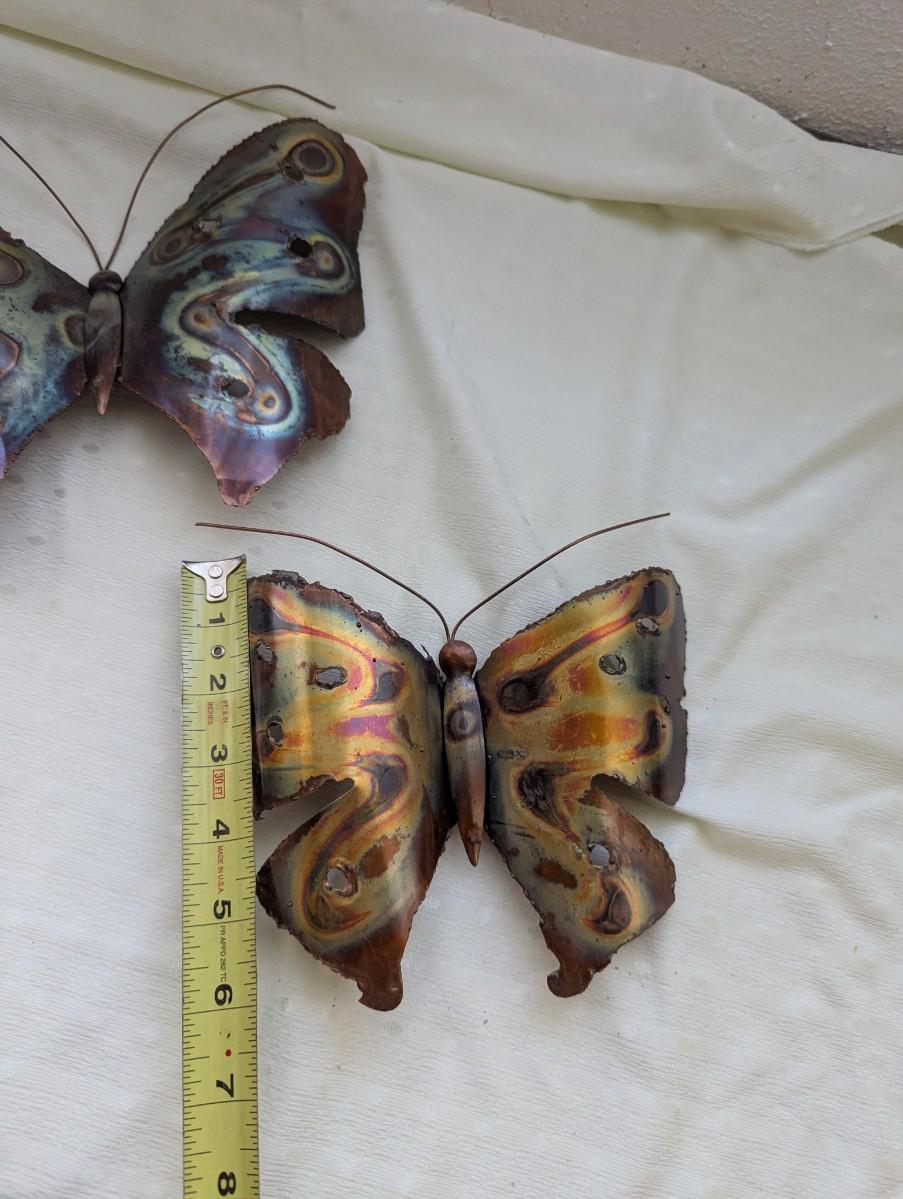 Vintage brass Butterfly wall sculpture art set, jagged edges, 1970's