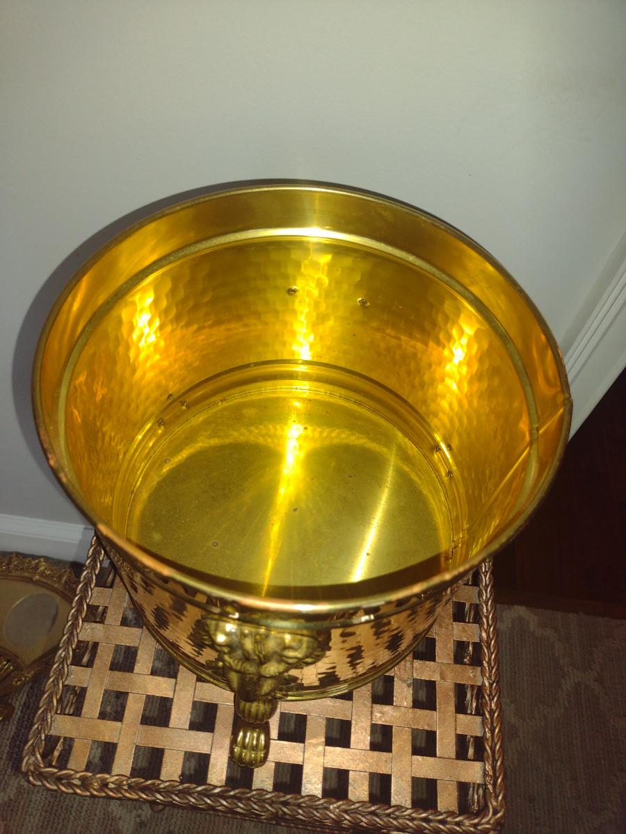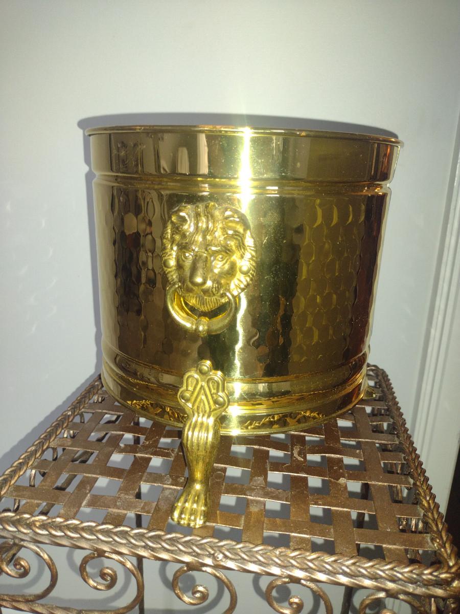 Brass Cachepot/Waste Can with Lion Head Design- Approx 8" in Diameter, 9 1/4" Tall