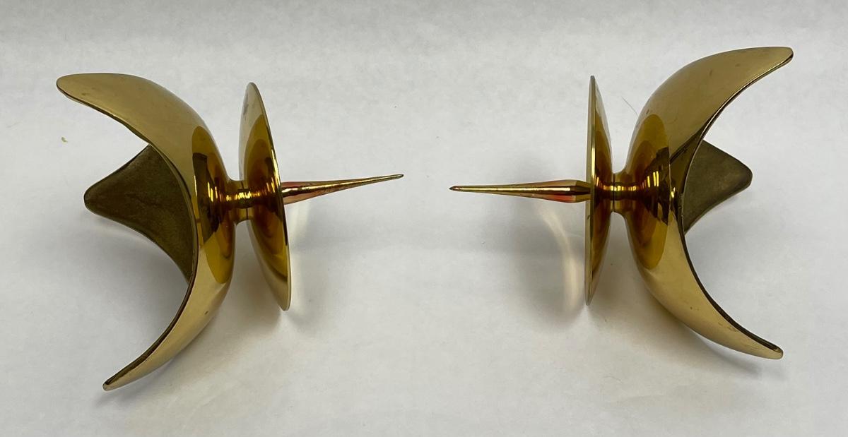 Vintage Mid-Century Modern Space Age Atomic Brass Candle Holders