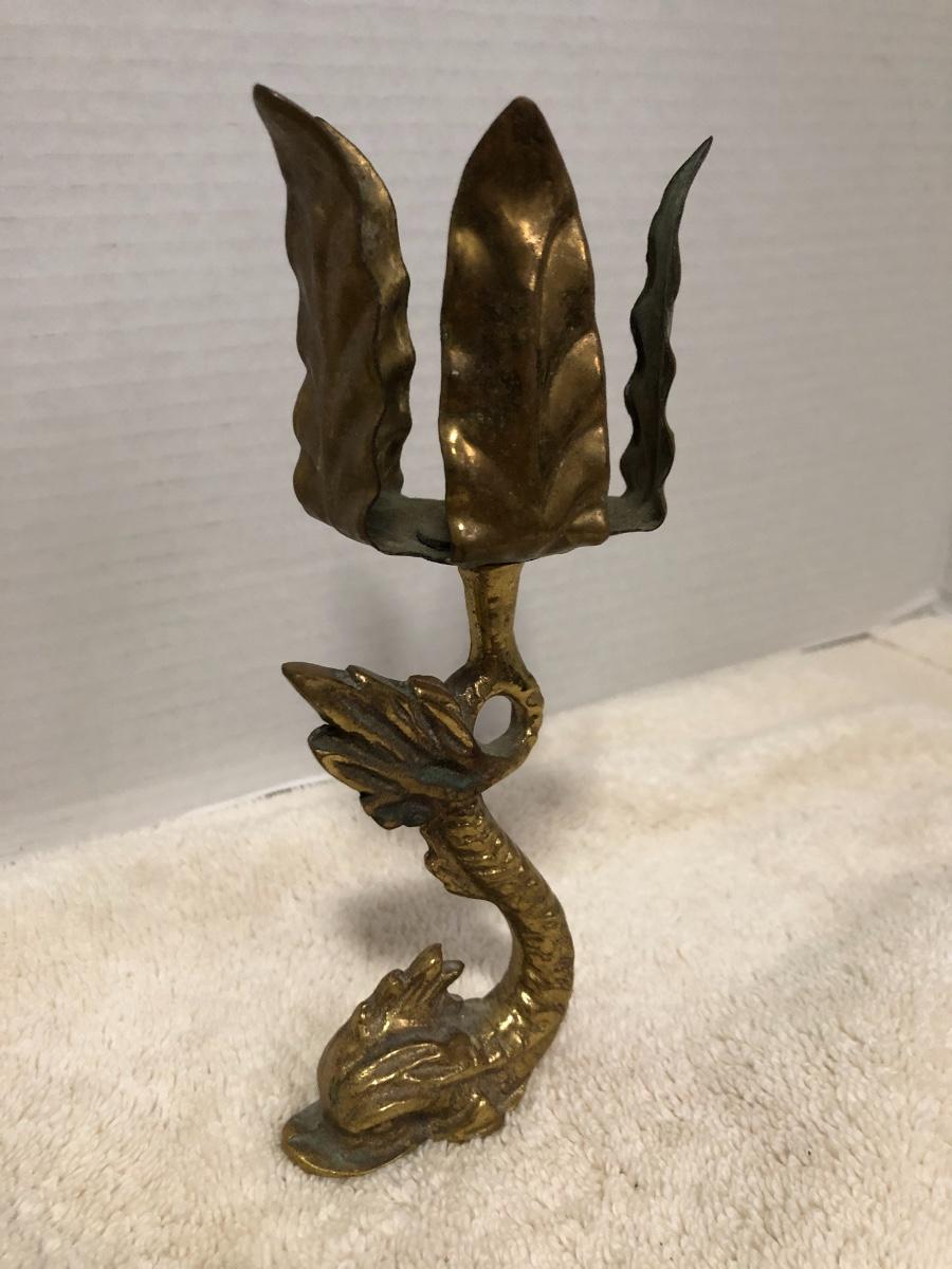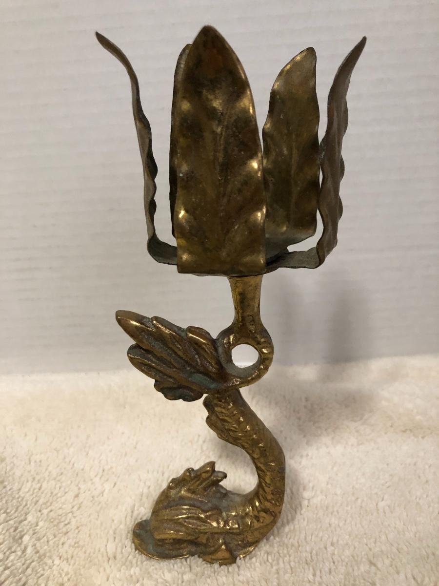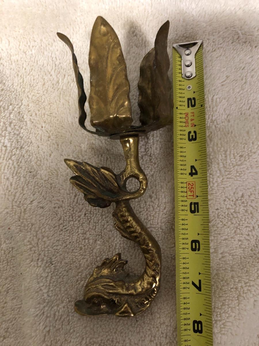 Brass Candle Sconce Asian Ornate Dauphin /Carp