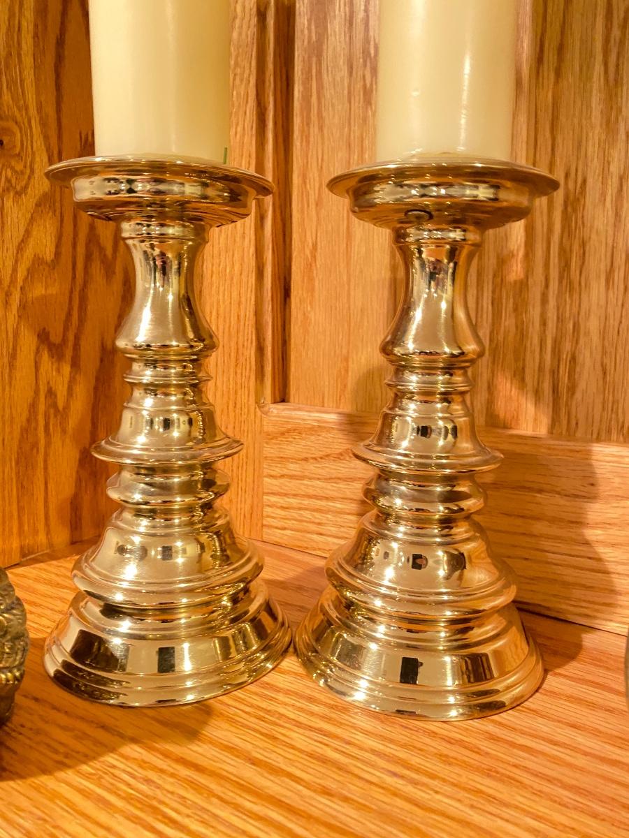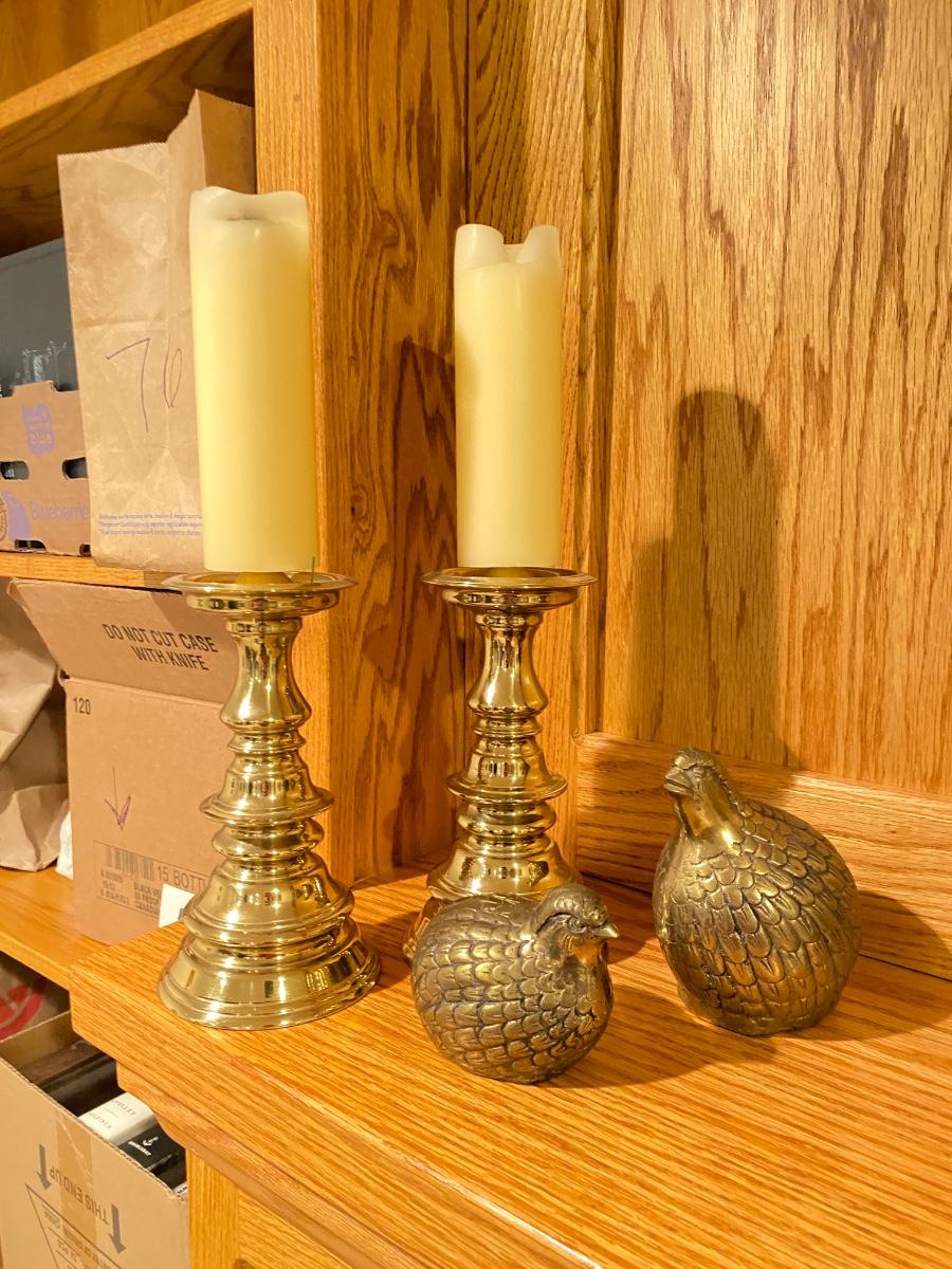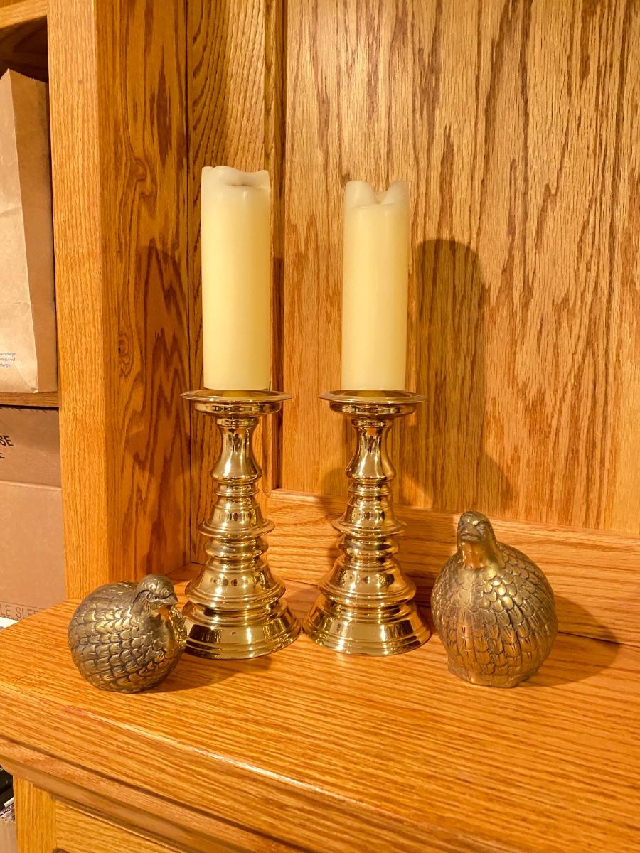 BRASS CANDLESTICK HOLDERS AND BRASS QUAILS
