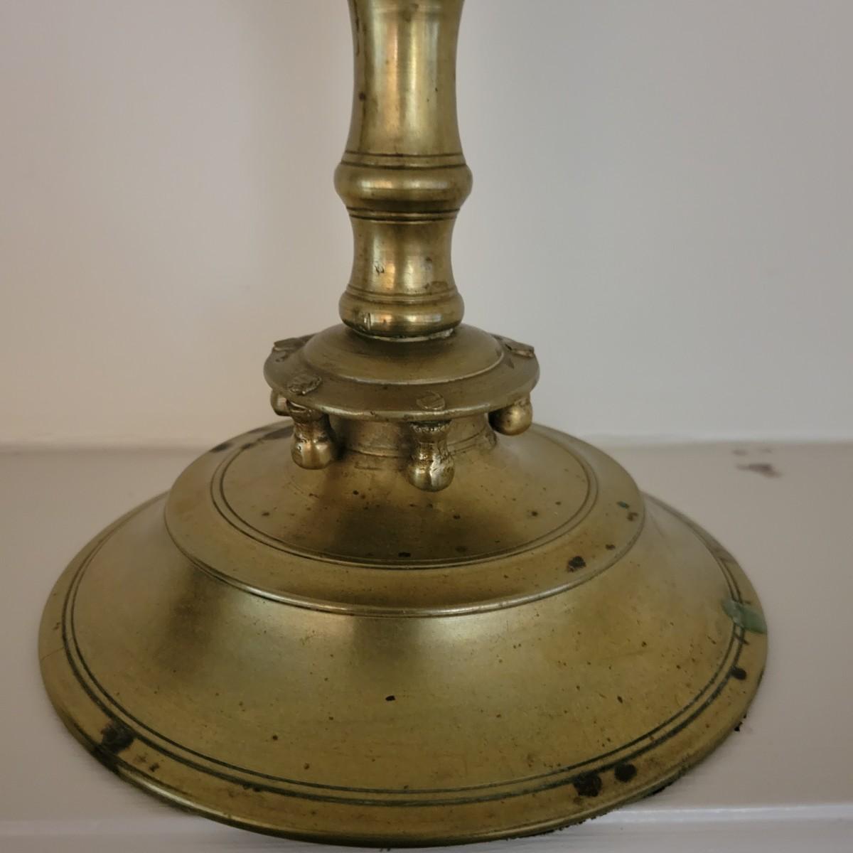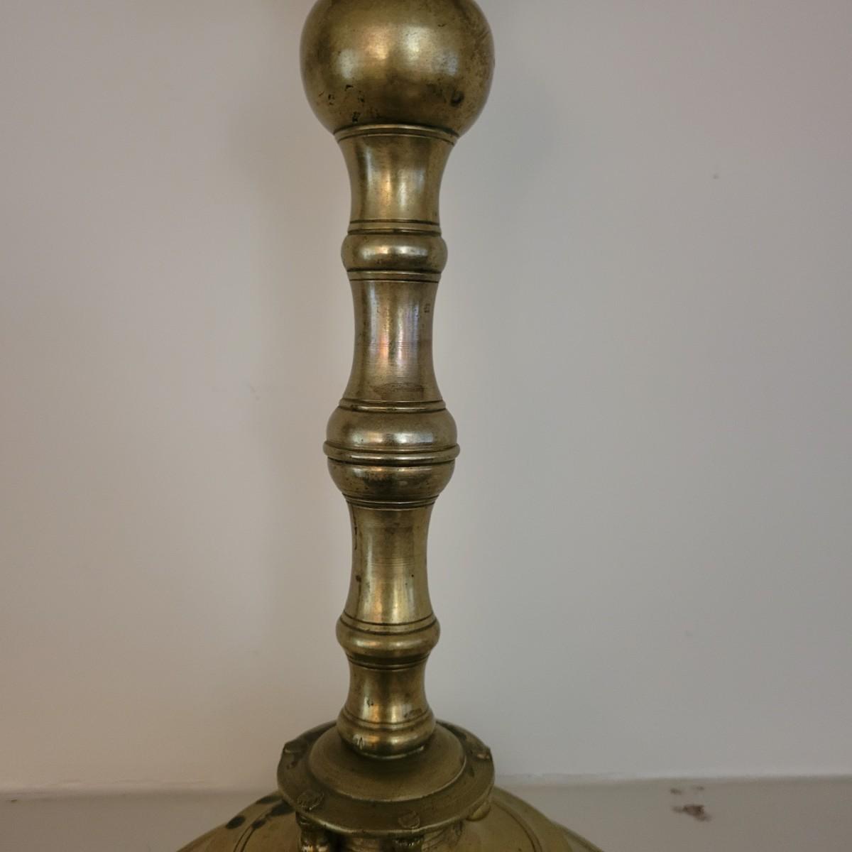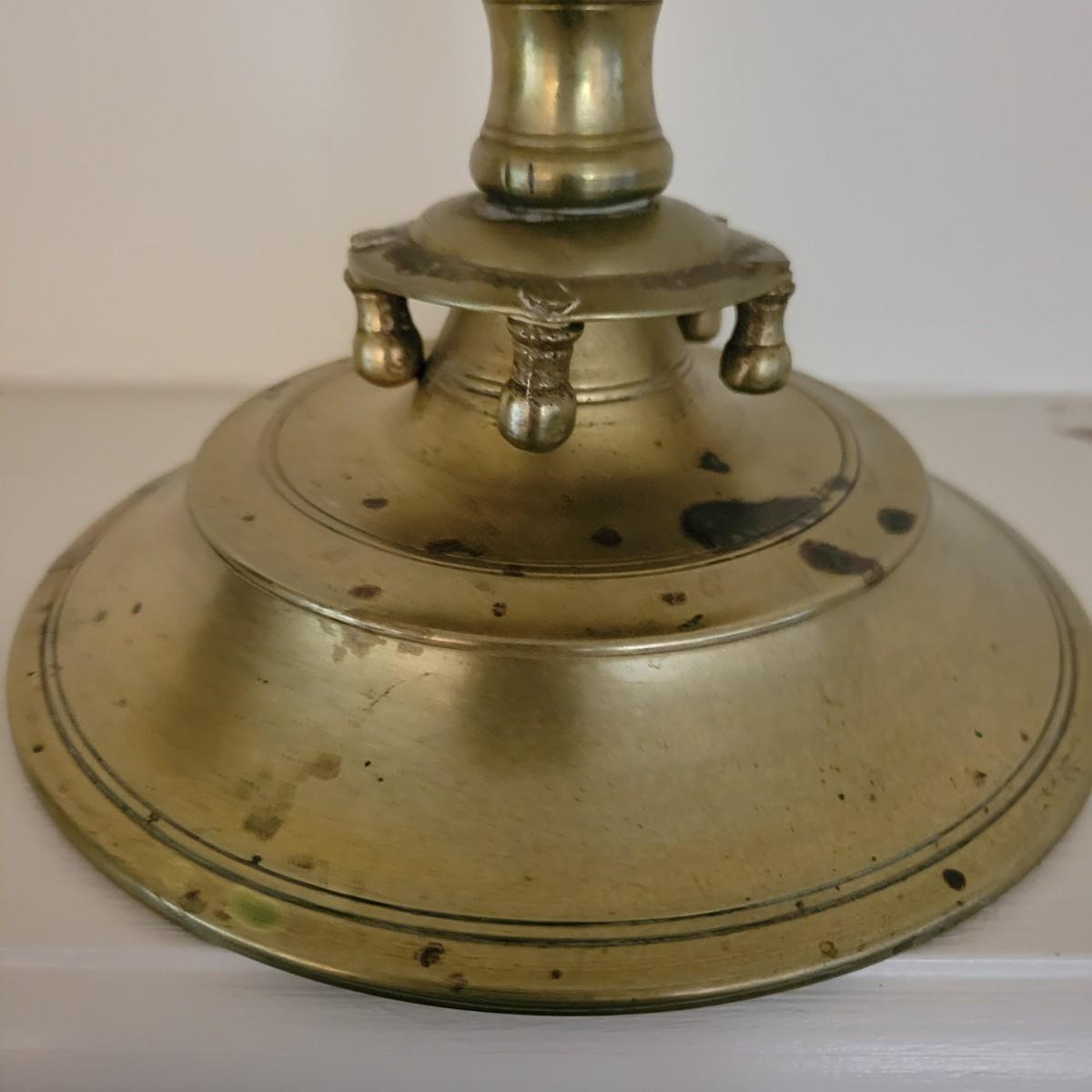 A brass candelabra in good condition with some minor tarnish on its base. This piece features seven candle holders and ornate arms supporting them. Each arm also rotates. Measures approximately 17" x 7" x 21.5. Shipping available