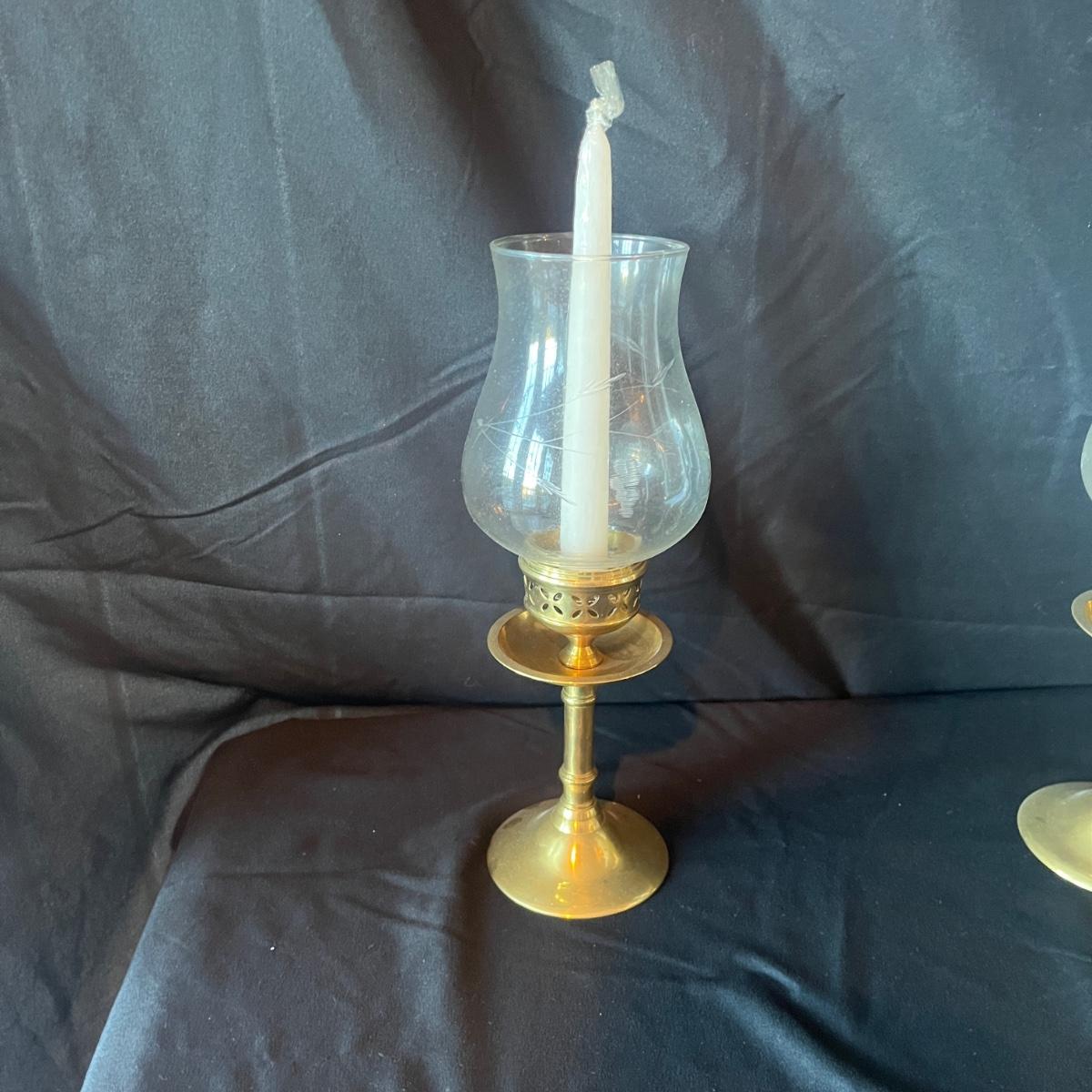 Brass Candleholders with Hurricane Glass (2DR-MG)