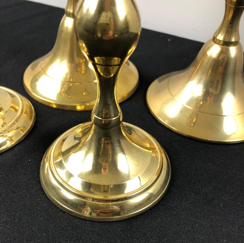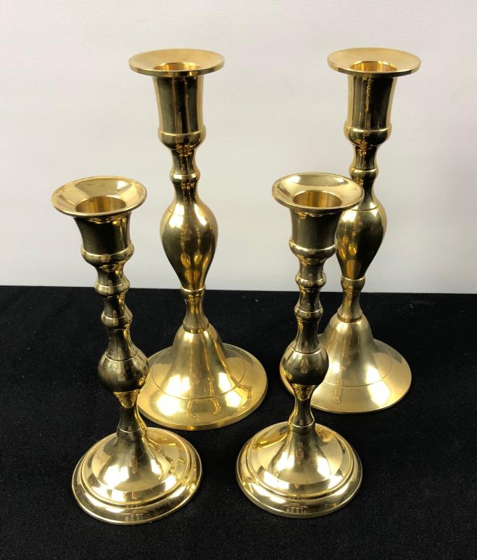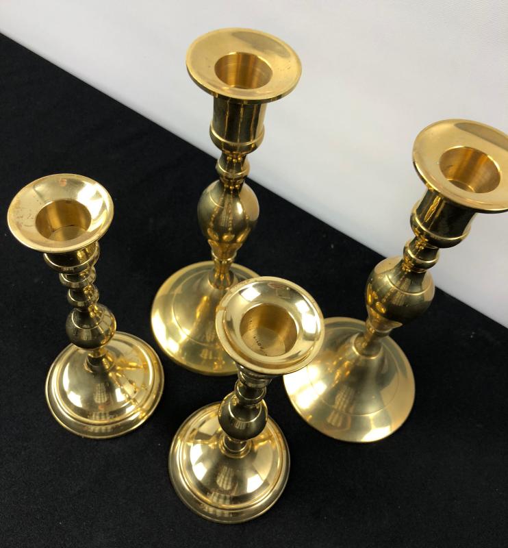 Here are two pair of traditional style brass candlesticks...9" and 7"...