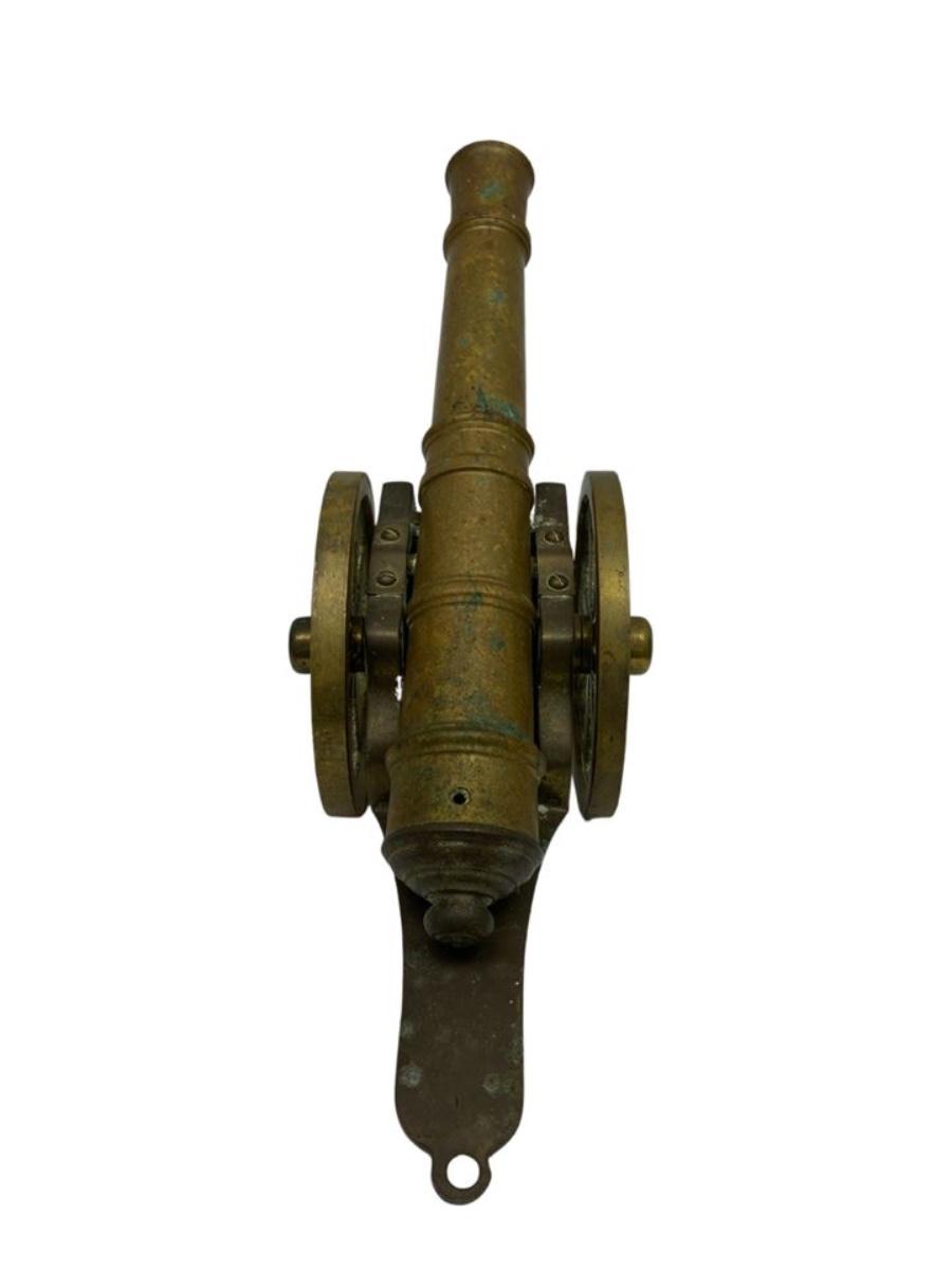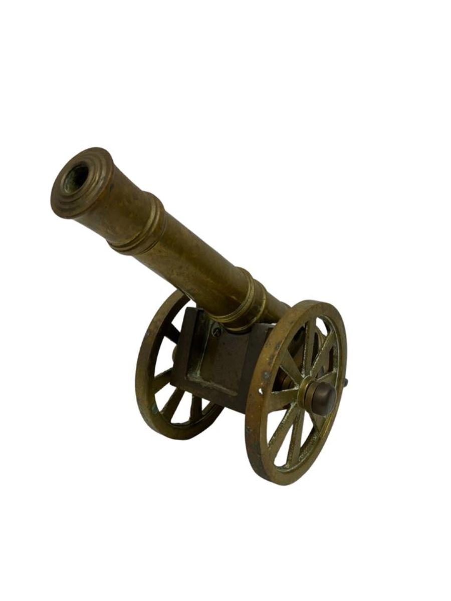 Brass Cannon Table Top Sculpture, 13"