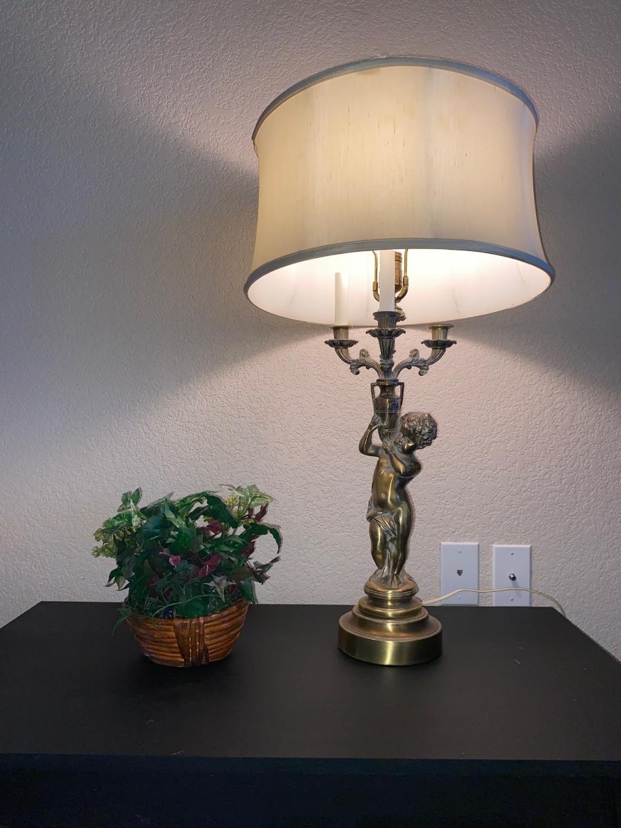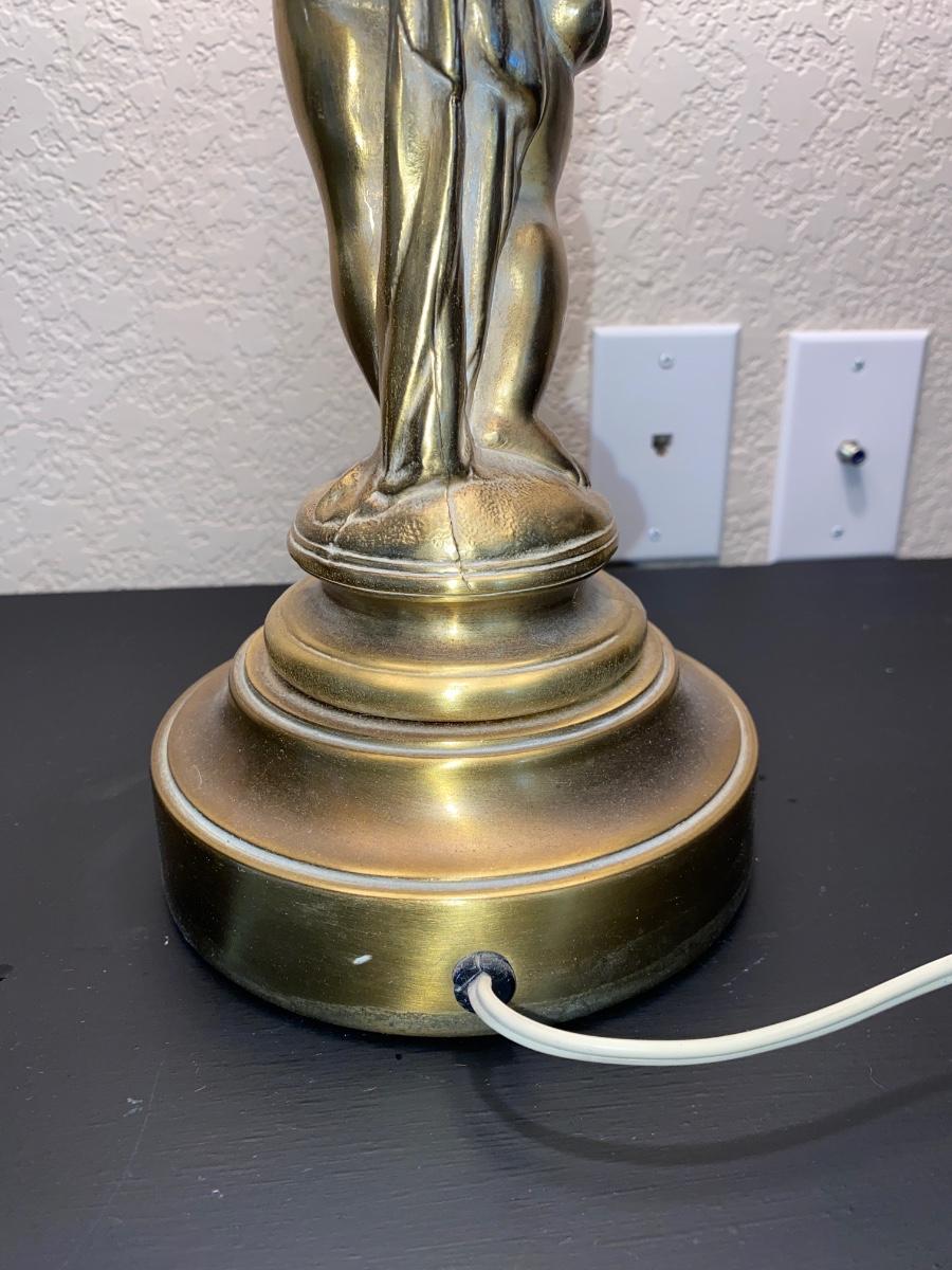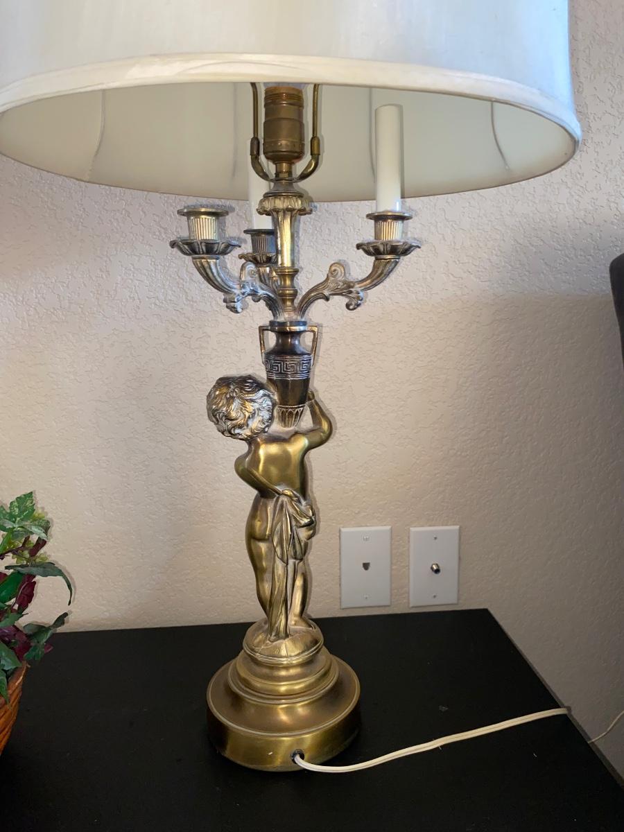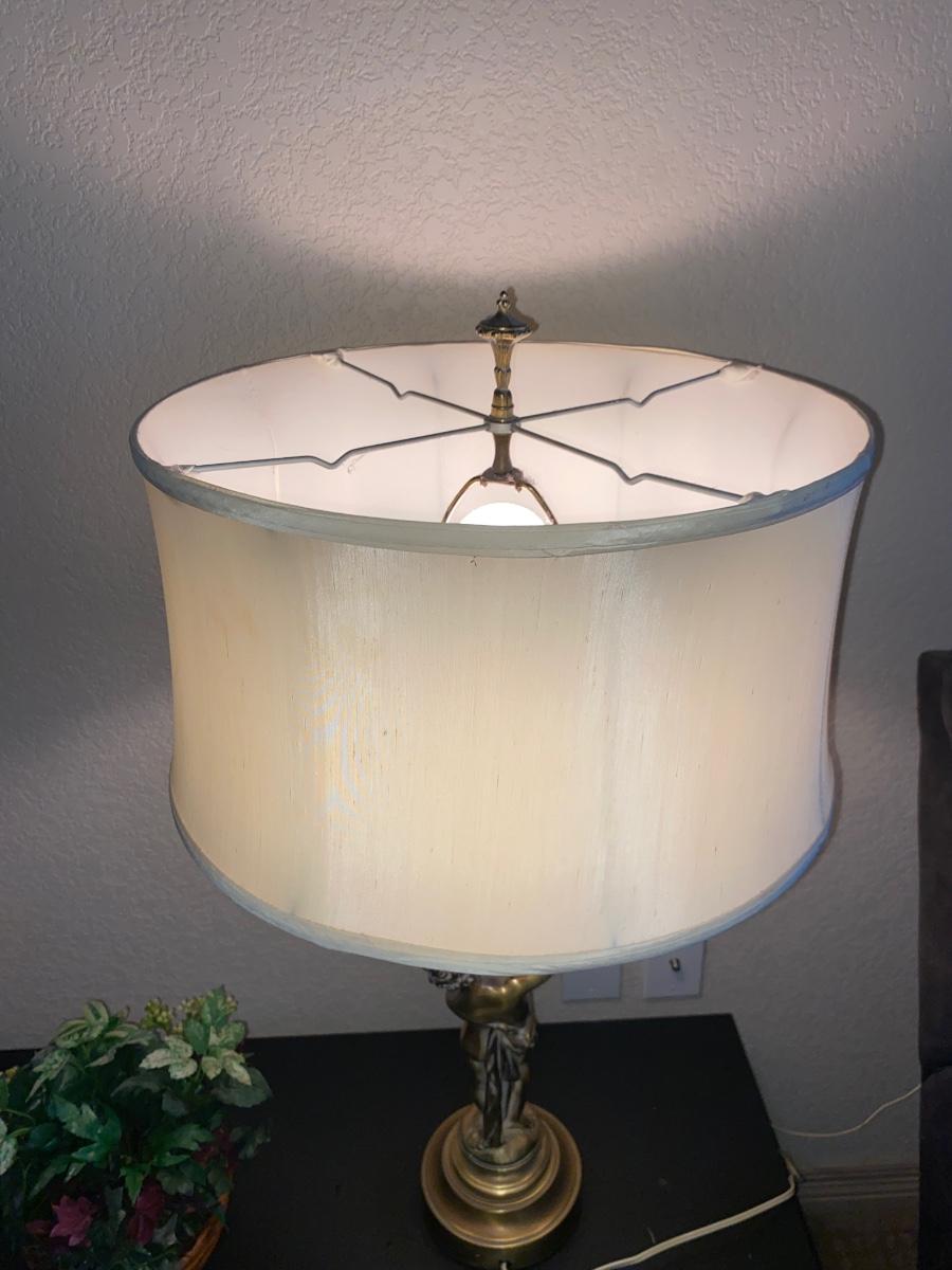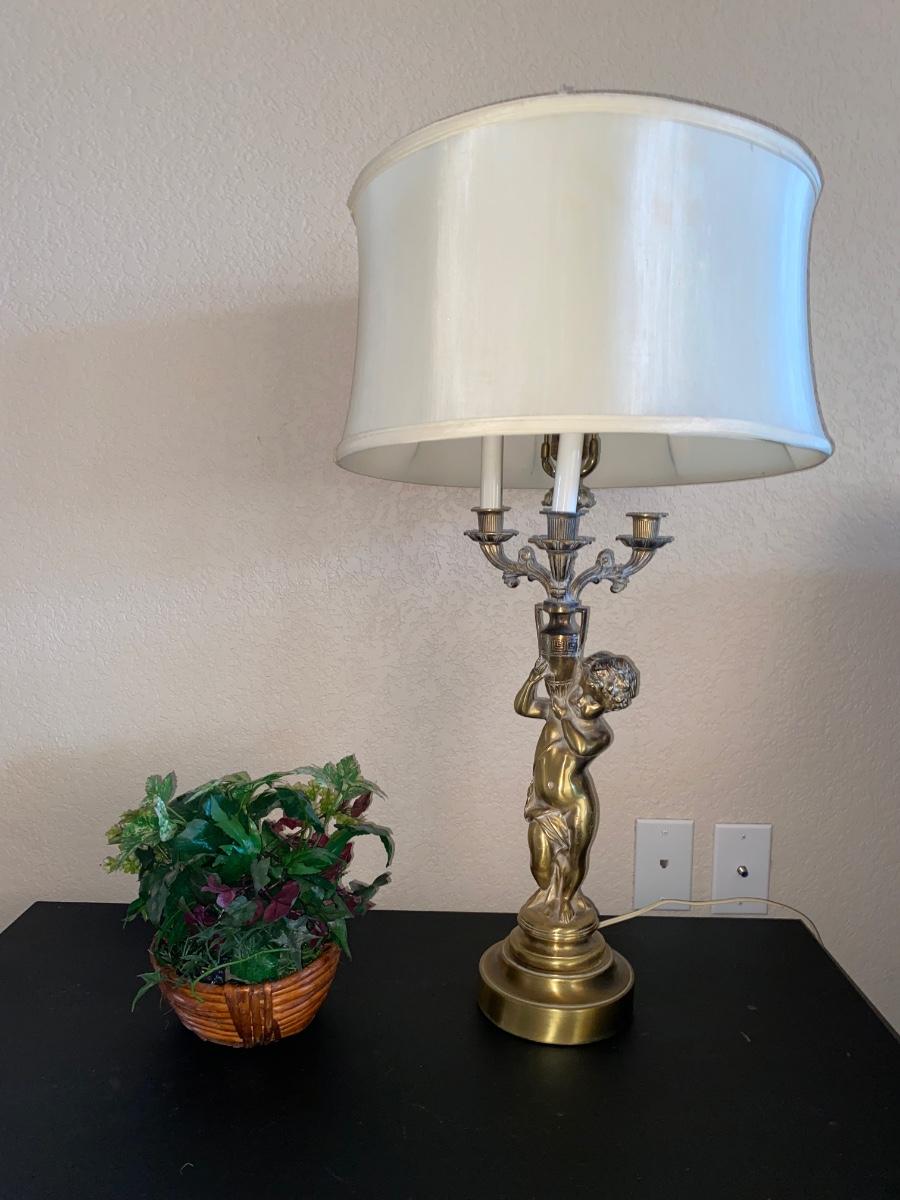 BRASS CHEUB LAMP AND FAUX FOLIAGE