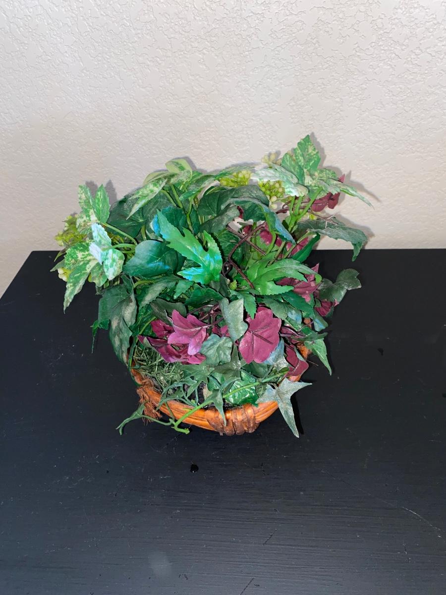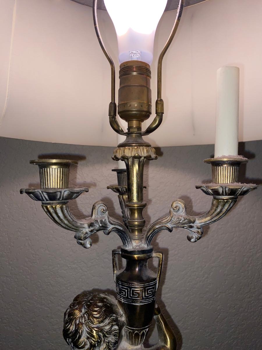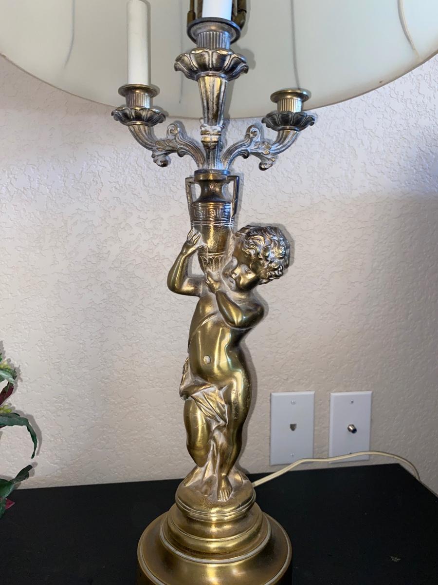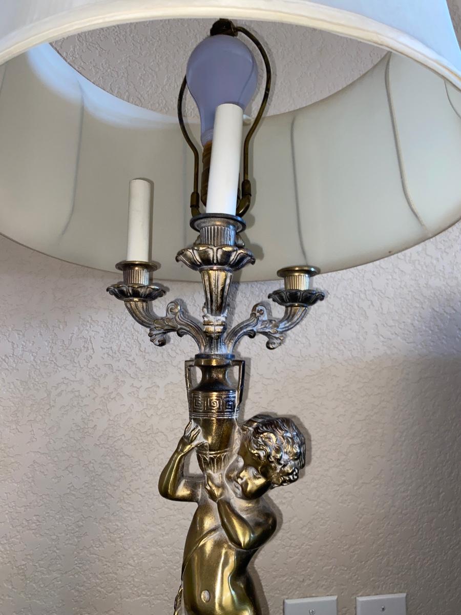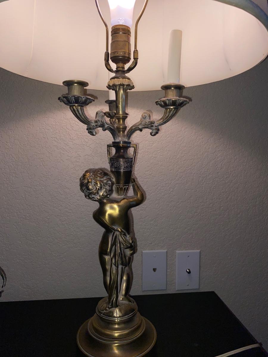 BRASS CHEUB LAMP AND FAUX FOLIAGE