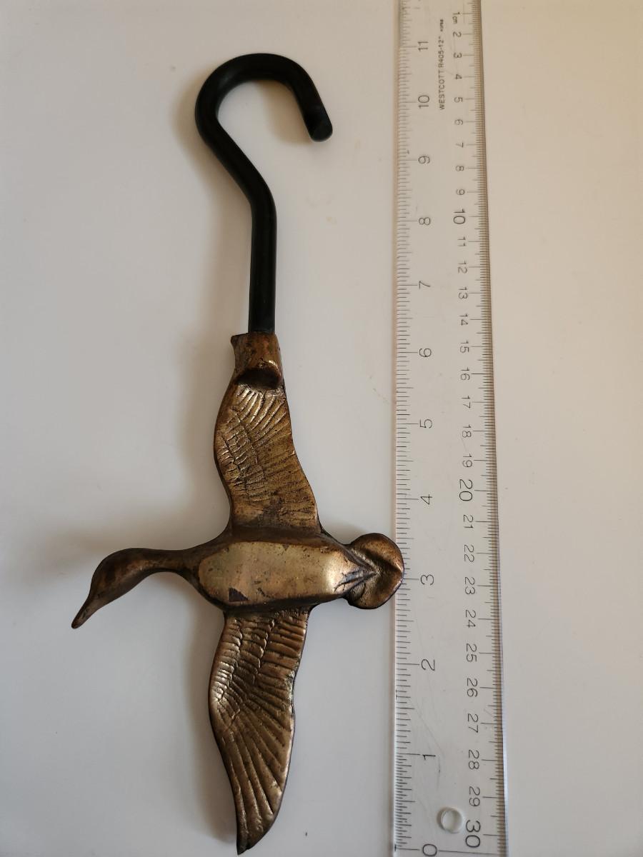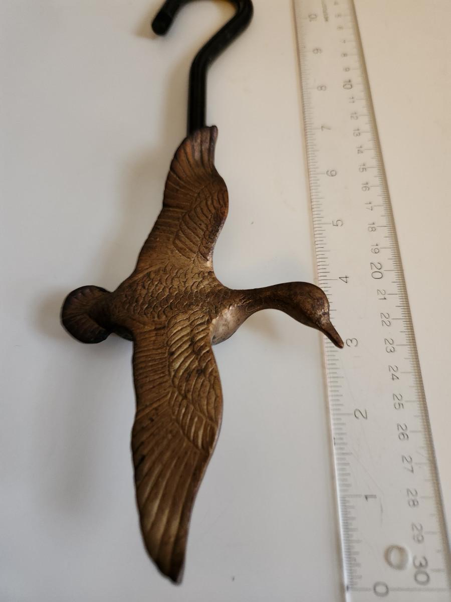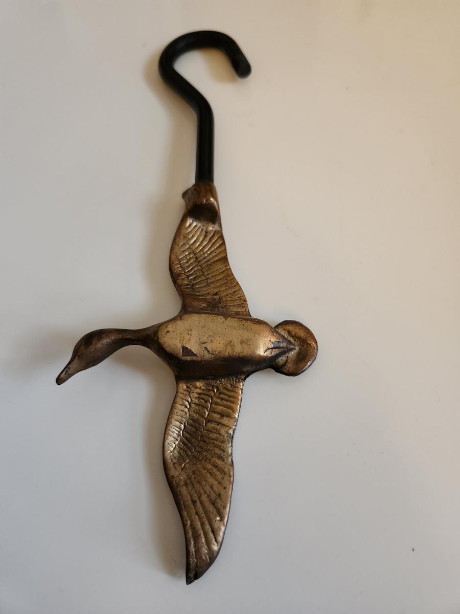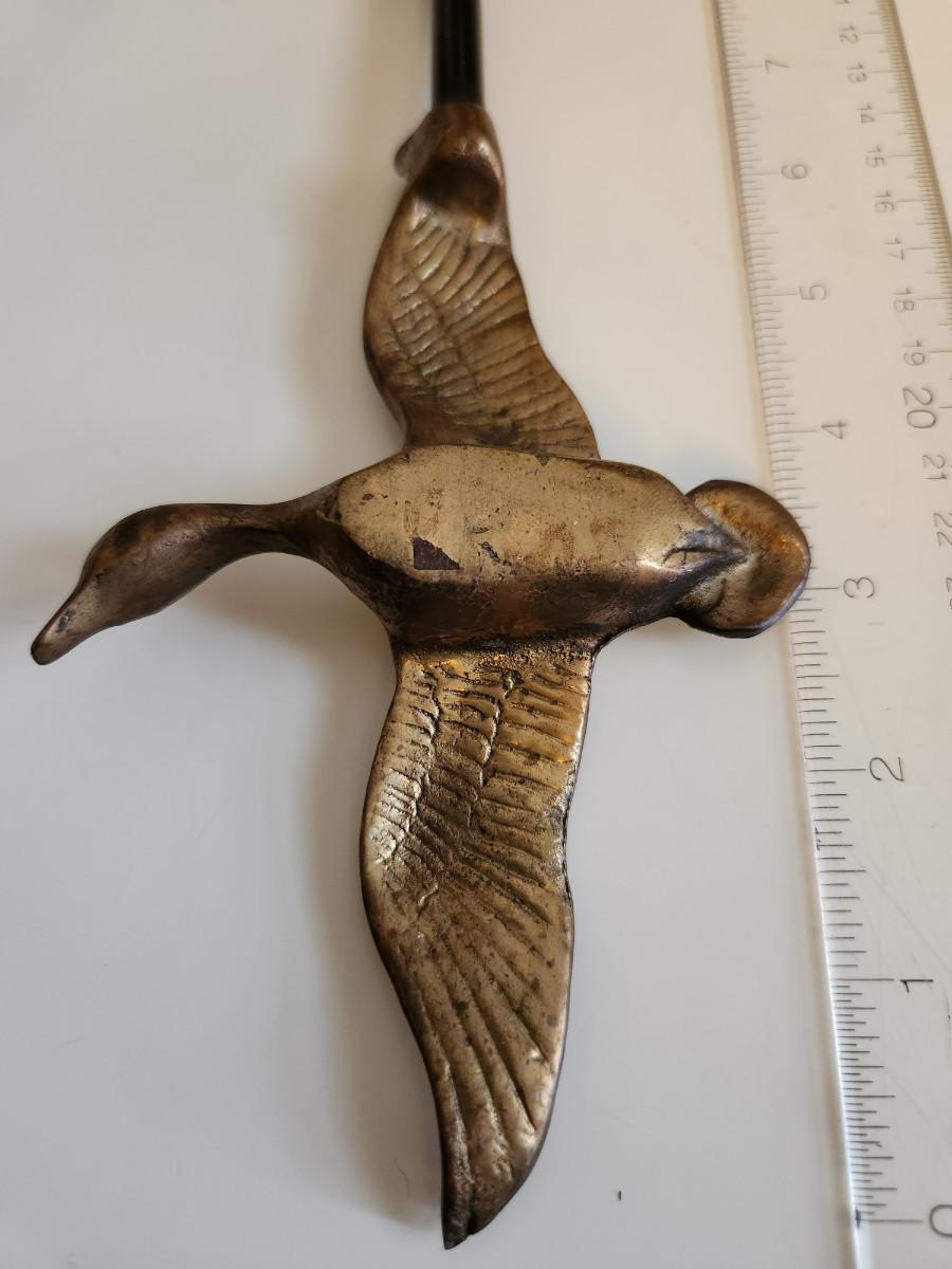 This auction lot is for a Brass Chimney Damper Pull. Quite a unique item, would enhance most any fireplace. Molded as a goose or duck. See pictures for measurements. Open and close your flue in style.