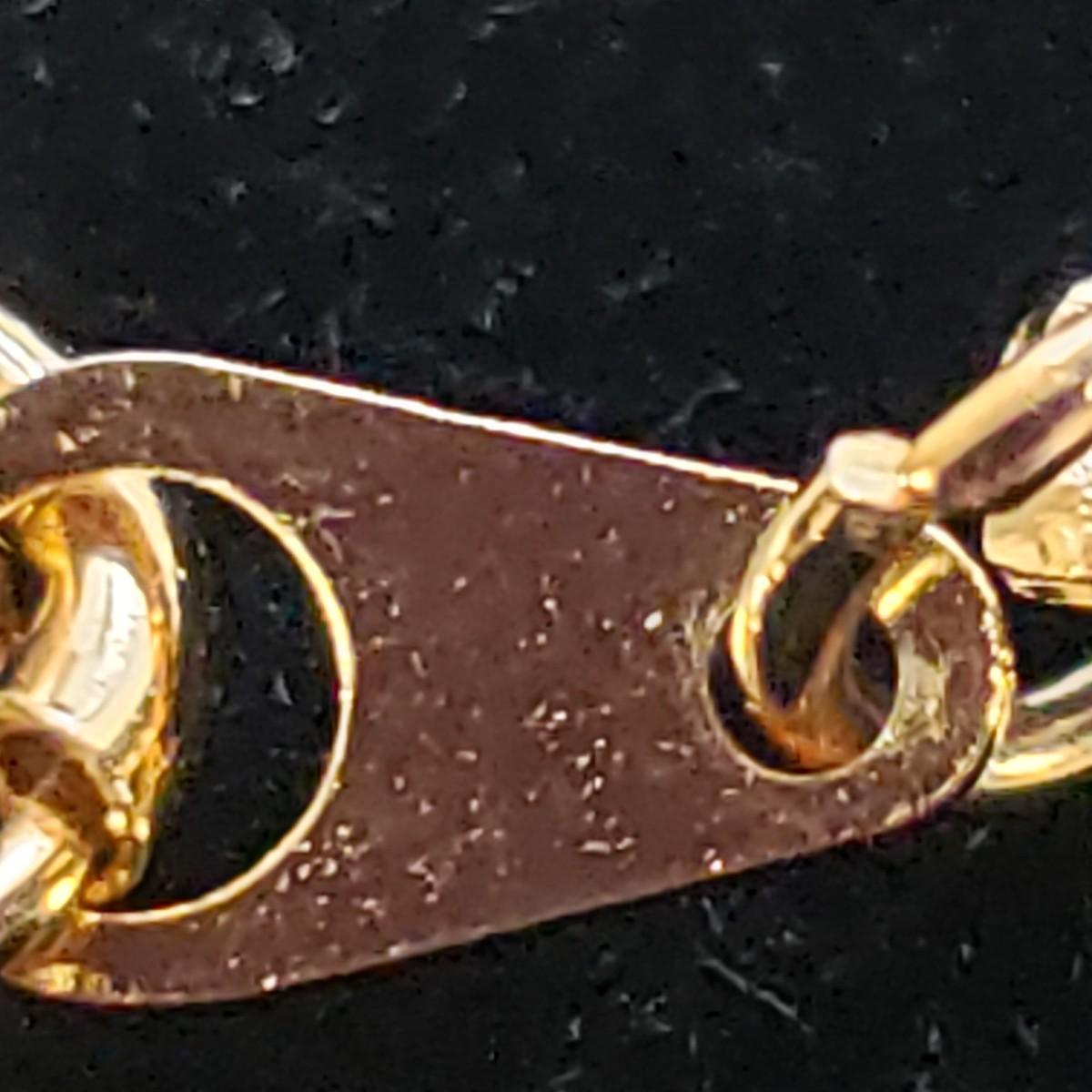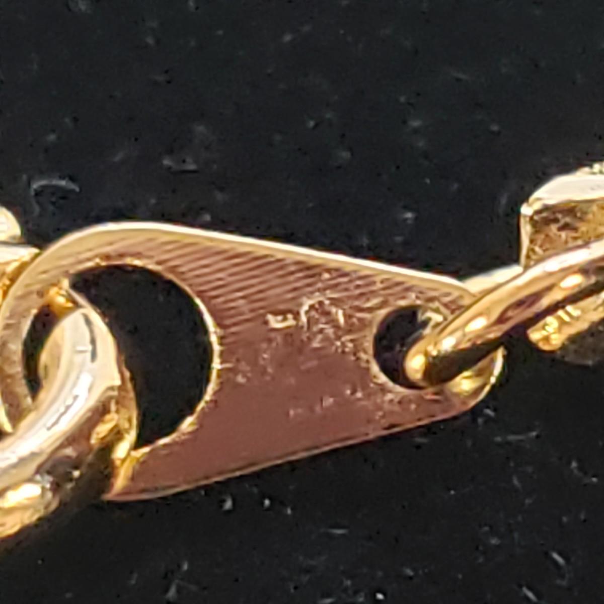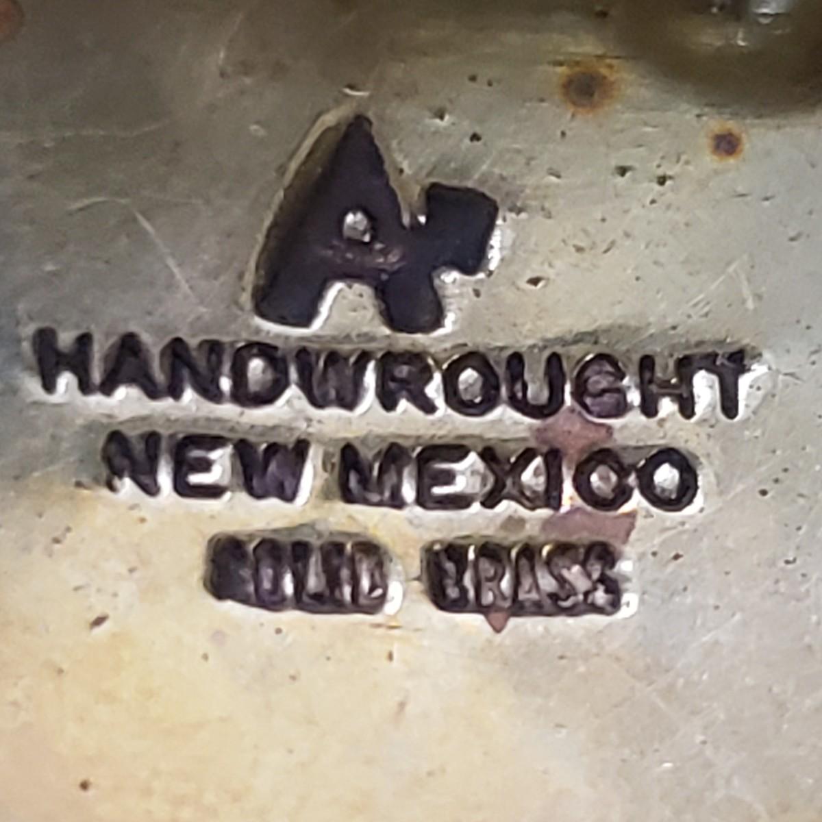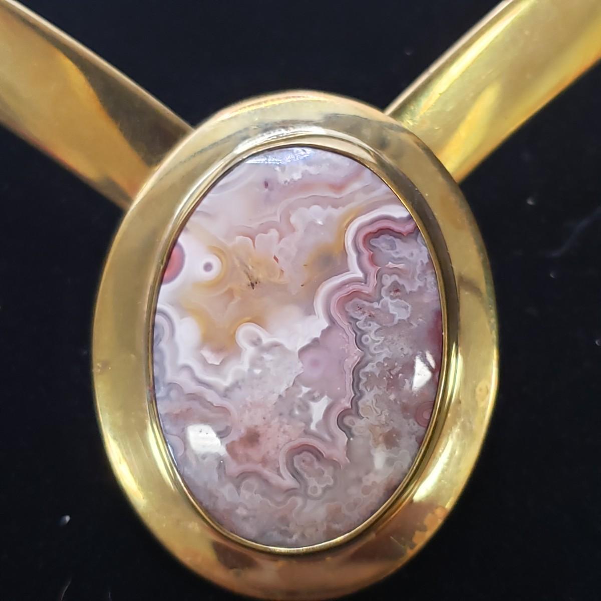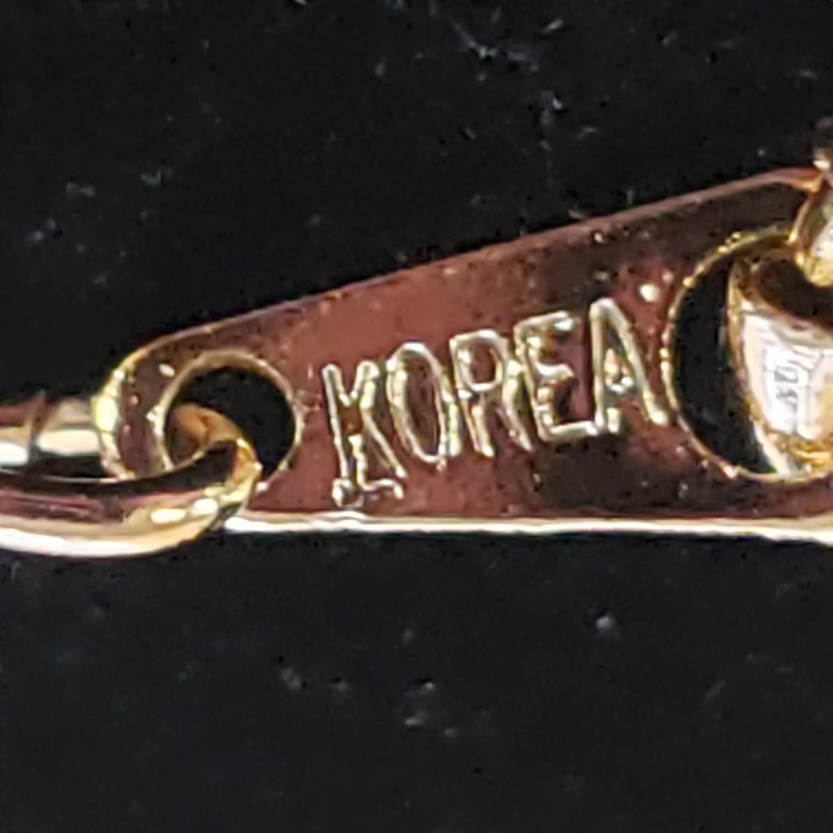 This three piece necklace lot has a choker style necklace with removable stone pendant. The pendant is handwrought in New Mexico and made out of brass. The longest gold necklace is 22". The smaller necklace is stamped "Korea."