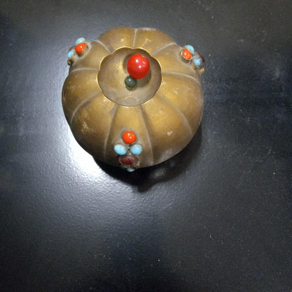 This lot contains 1 brass circular Triket Box with colorful beaded designs