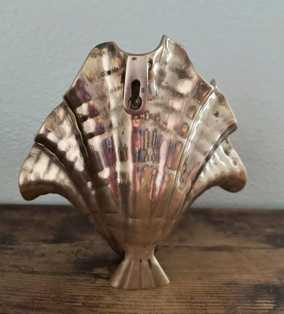 Vintage solid brass clam shell scalloped candle holder wall footed mounted