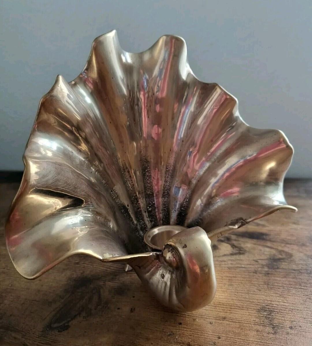 Brass clam shell candle holder