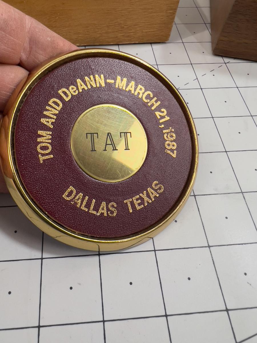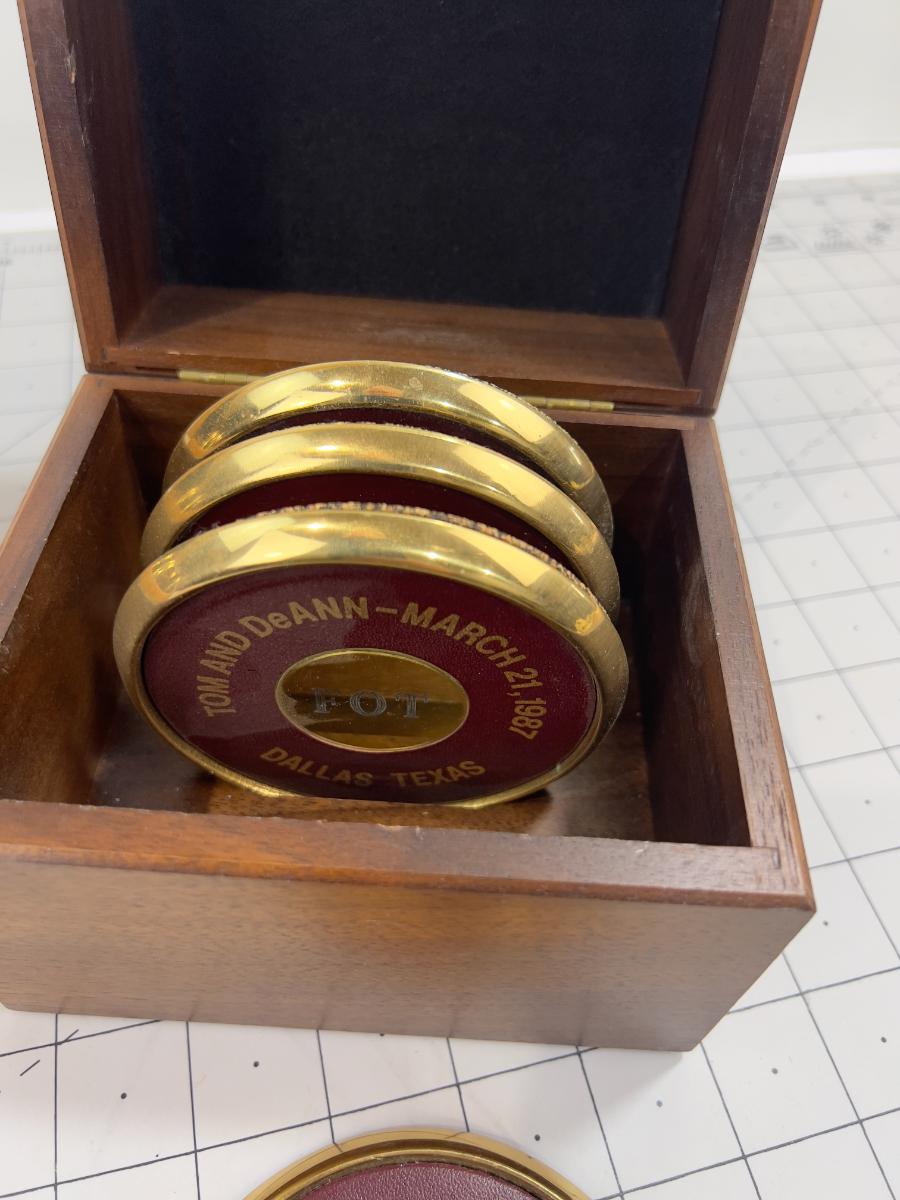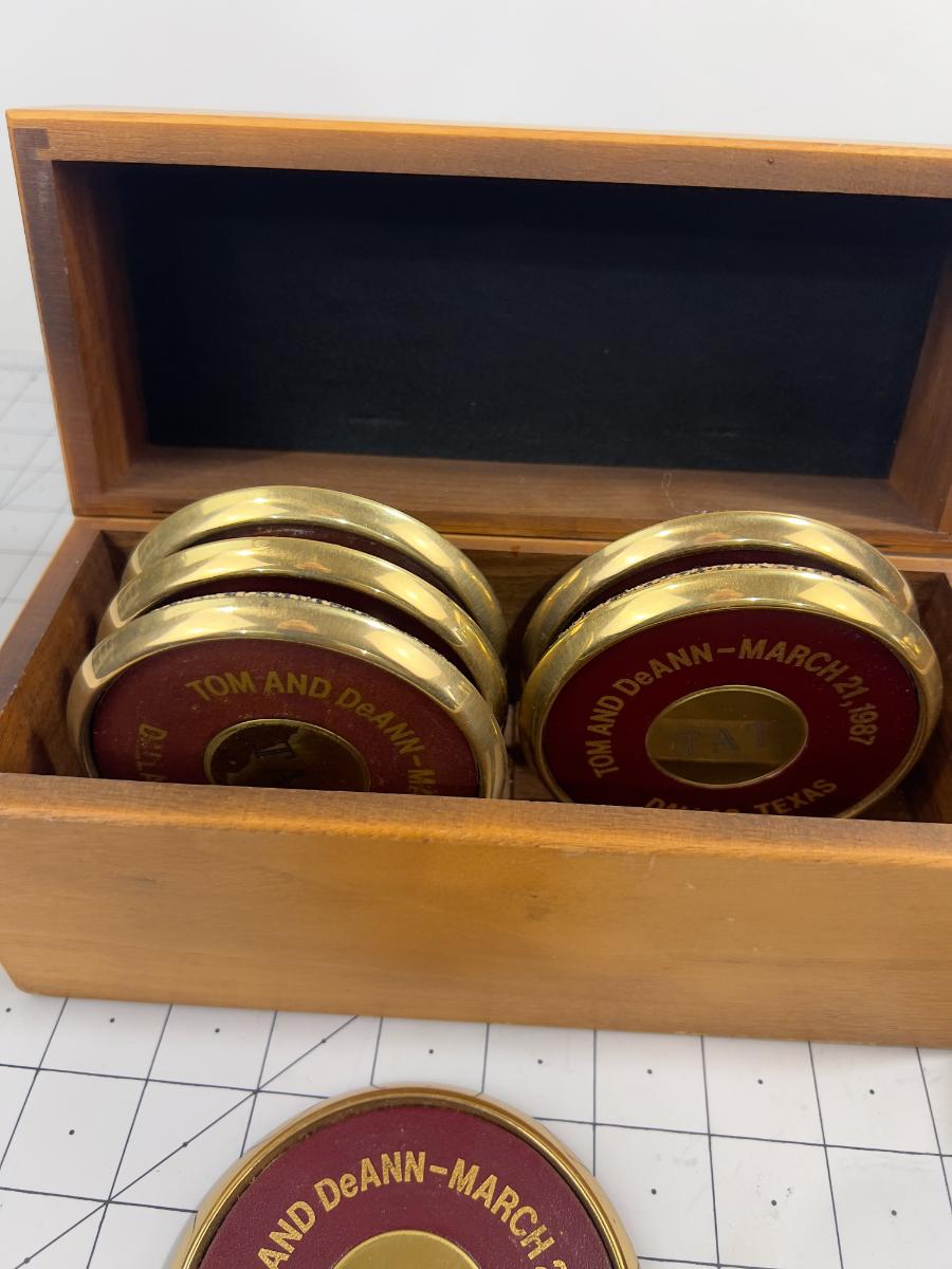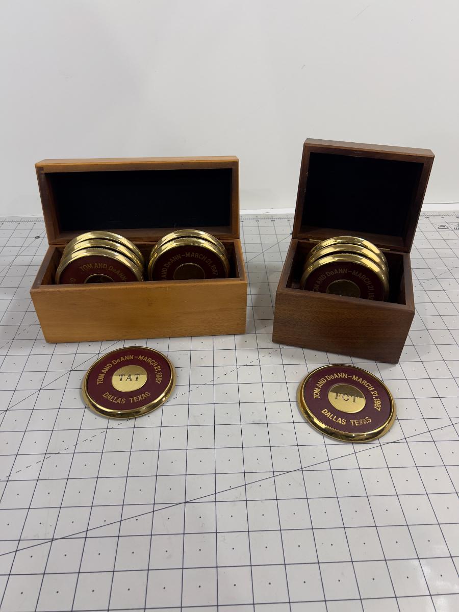 Brass Coaster in Lovely Wood Boxes "Tom & DeANN"