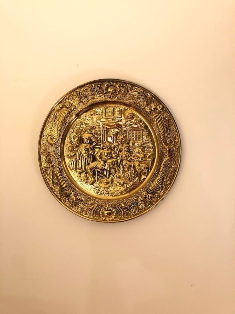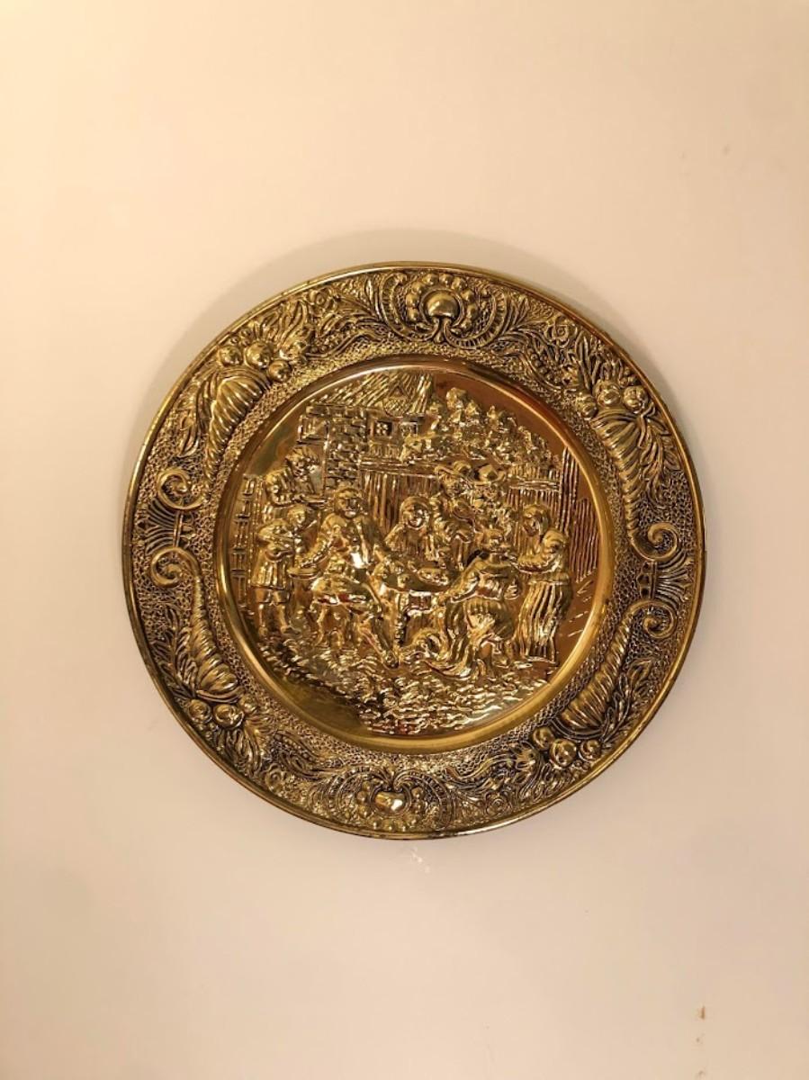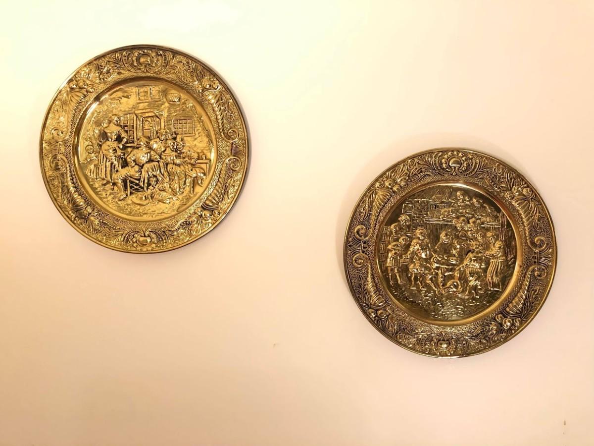 Set of 2 brass colonial wall plates, appr 8 " round.
