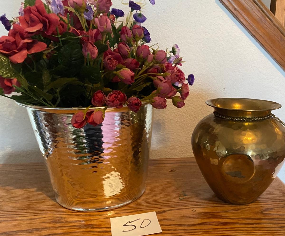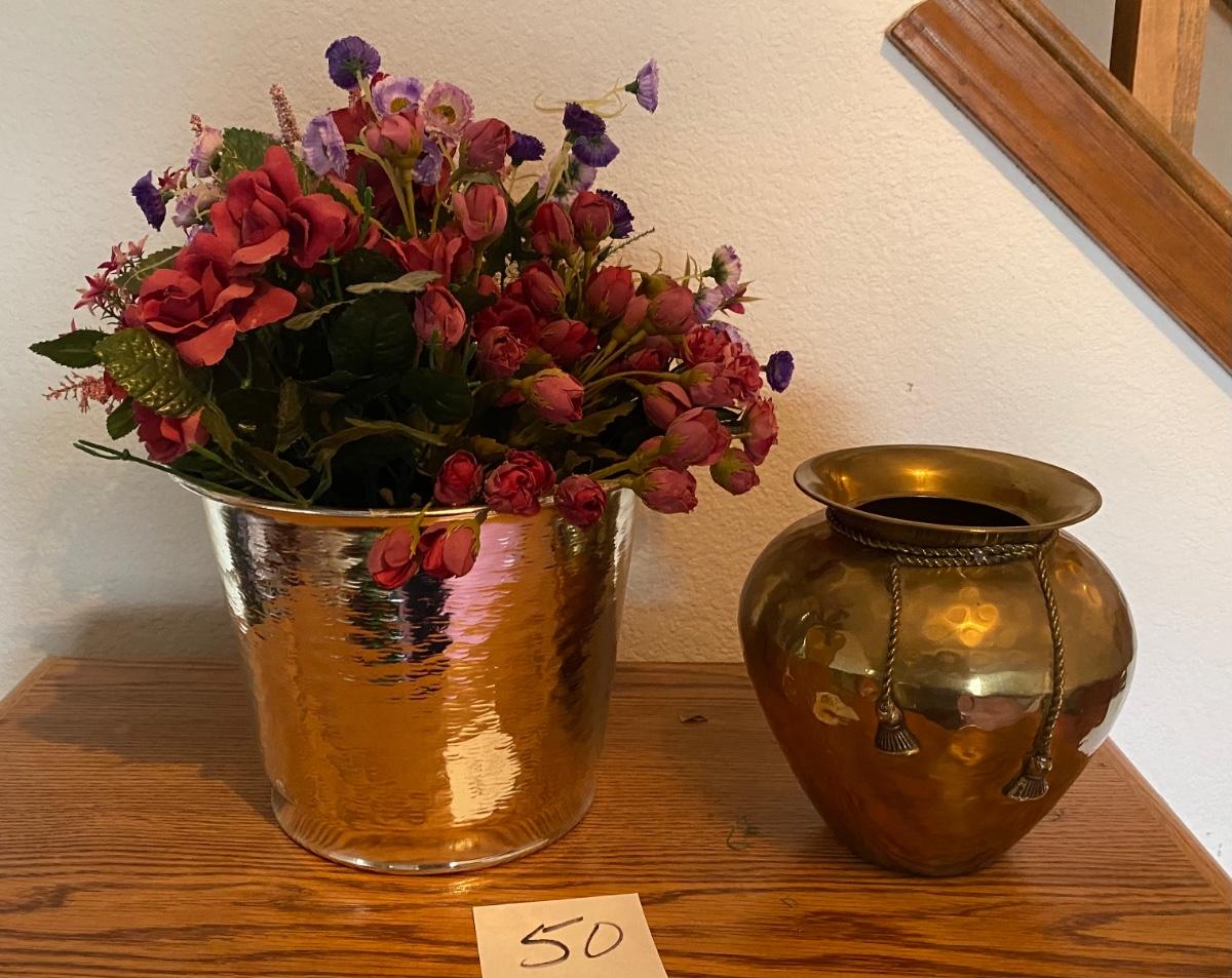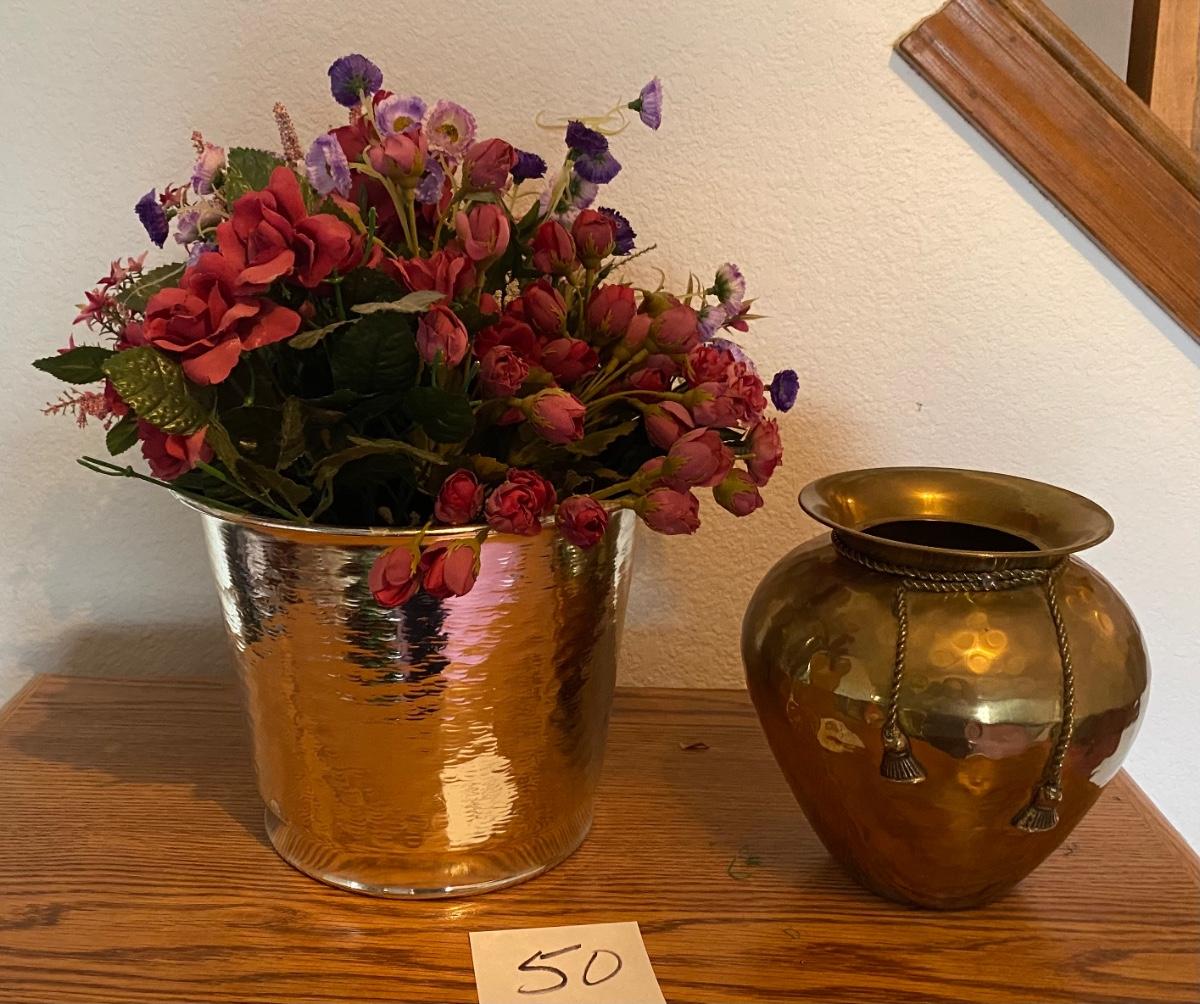 Brass Containers w/Flowers