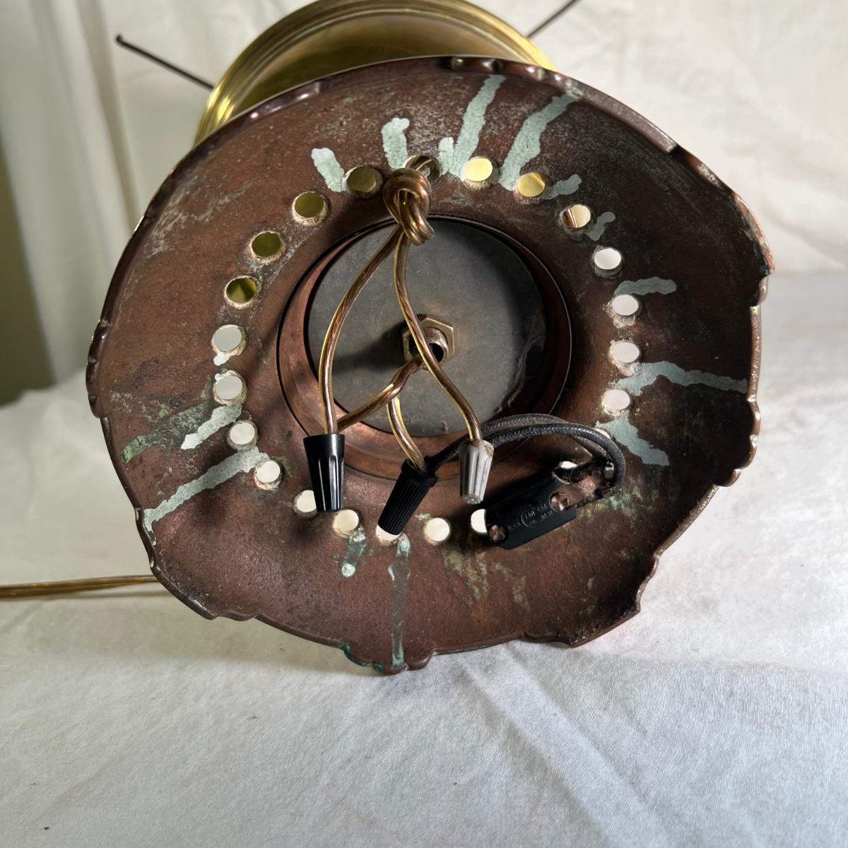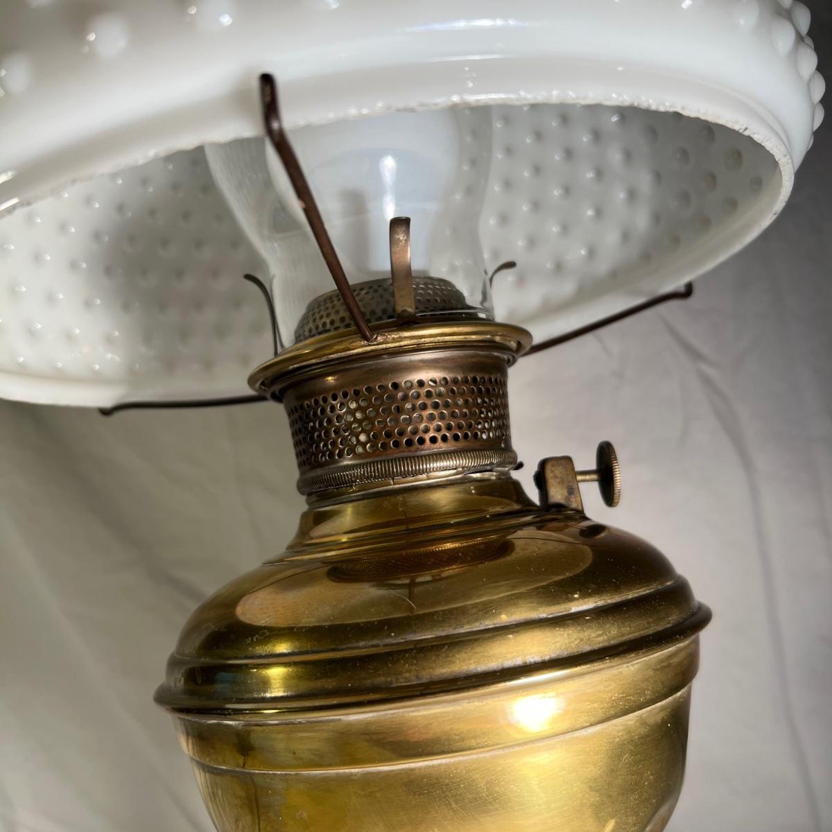 Brass & Copper Hurricane Lamp with Milk Glass Hobnail Shade (PS-RG)