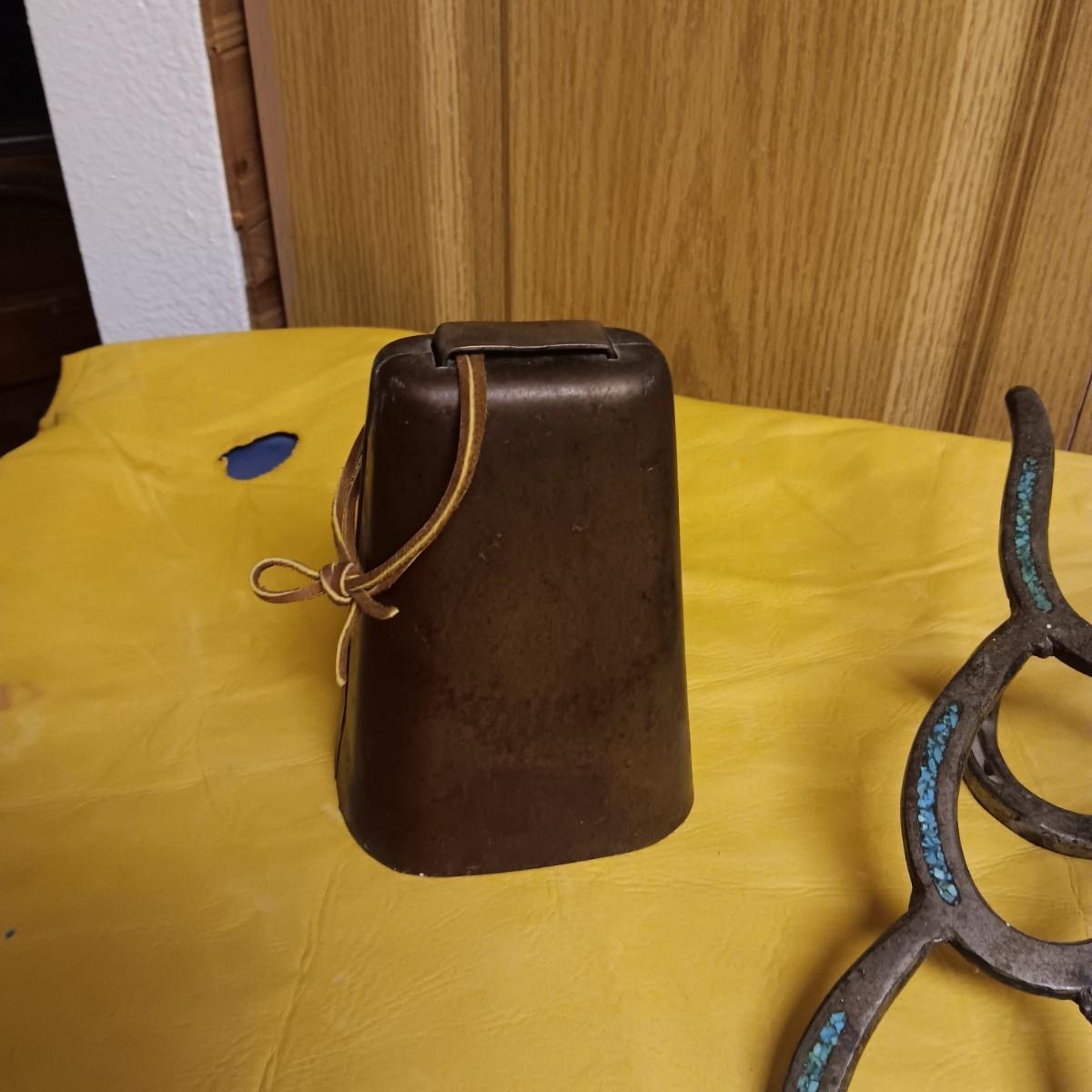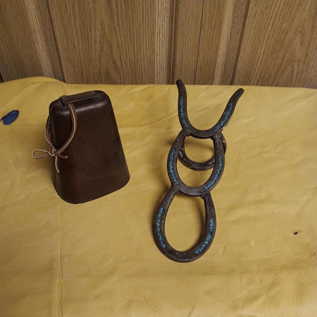BRASS COW BELL AND HORSE SHOE BOOT REMOVER