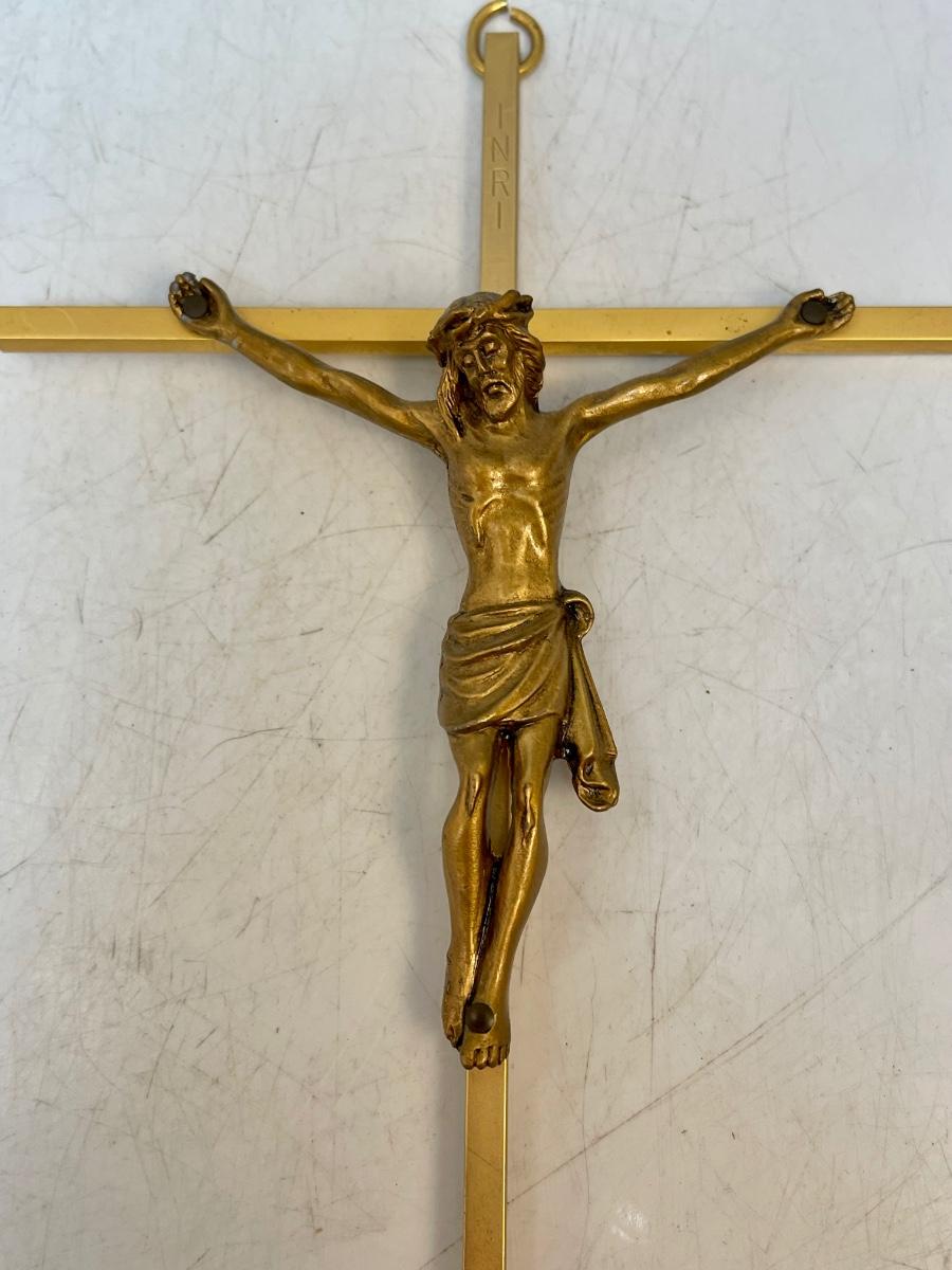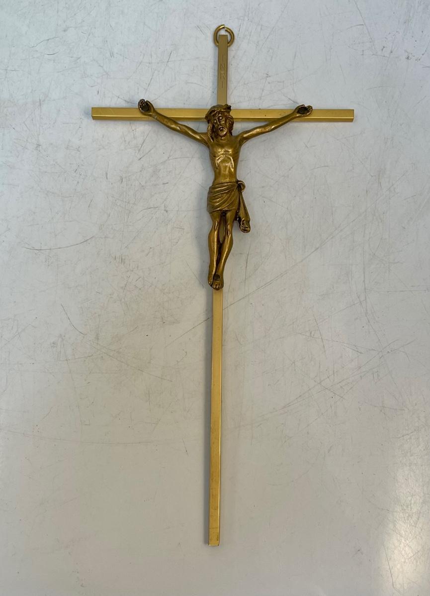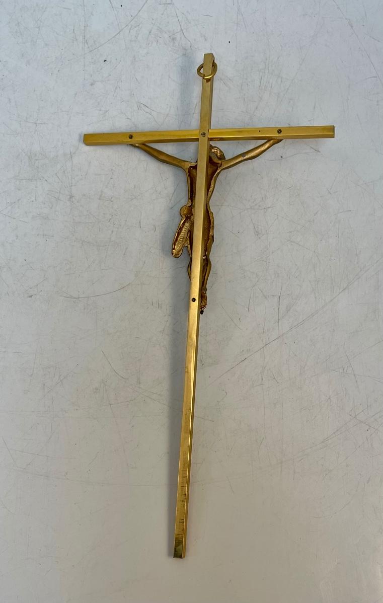 Vintage Slim Gold Tone Shiny Brass Wall Hanging Crucifix Cross