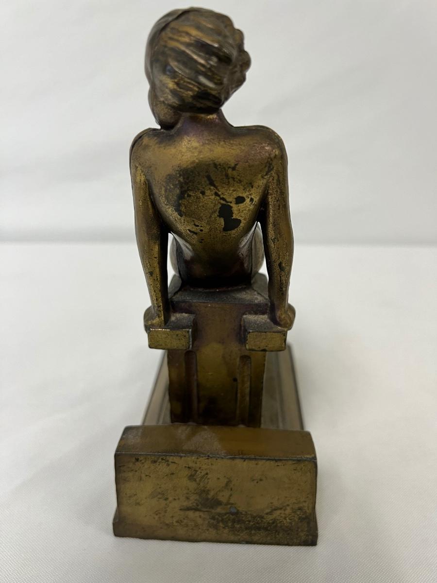 One piece only. Age related wear. Tested brass using Niton XRF precious metals analyzer. Measurement: 7.5"H. [LV]