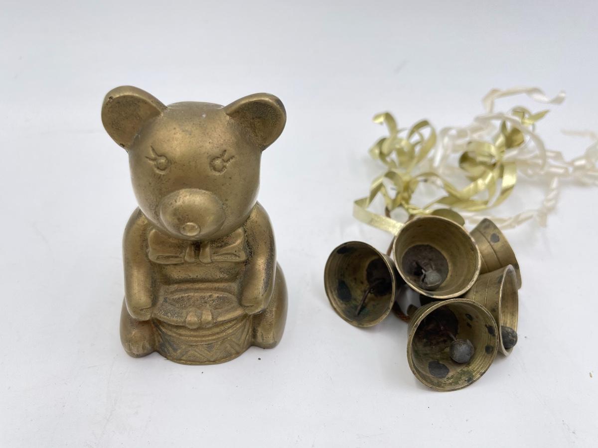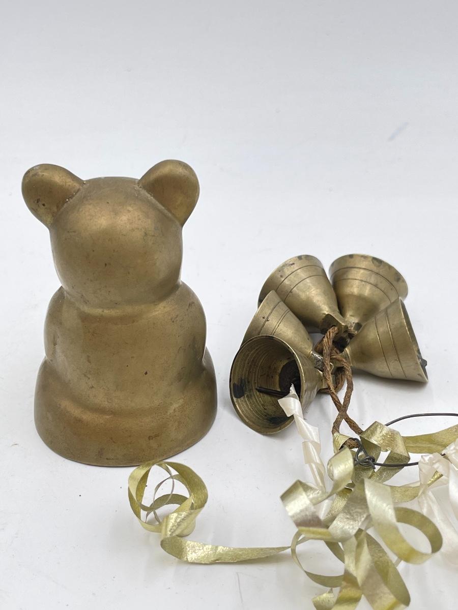 Angel toothbrush holder, small bear, and small set of bells. All in good condition.