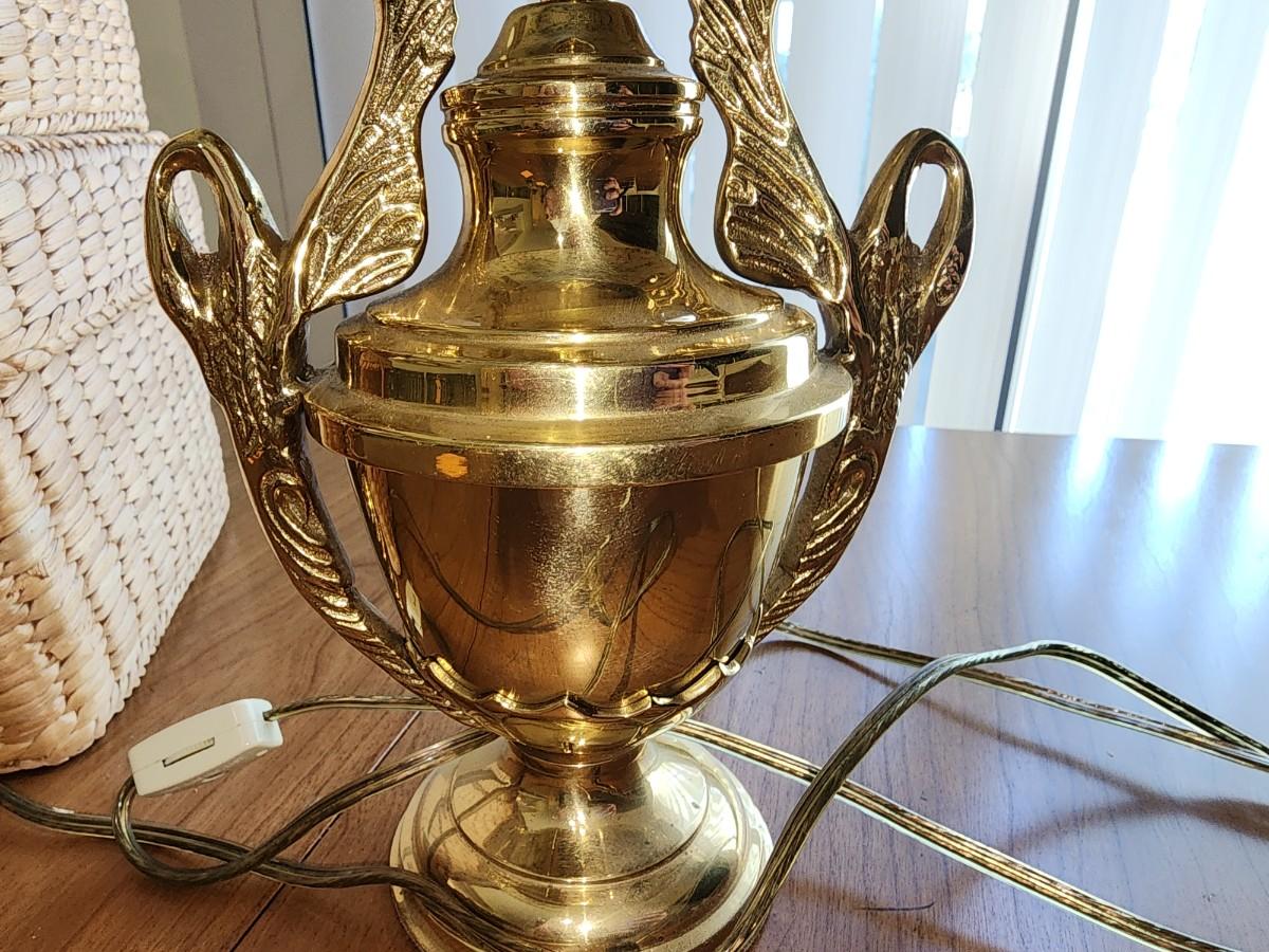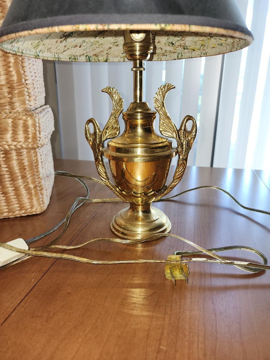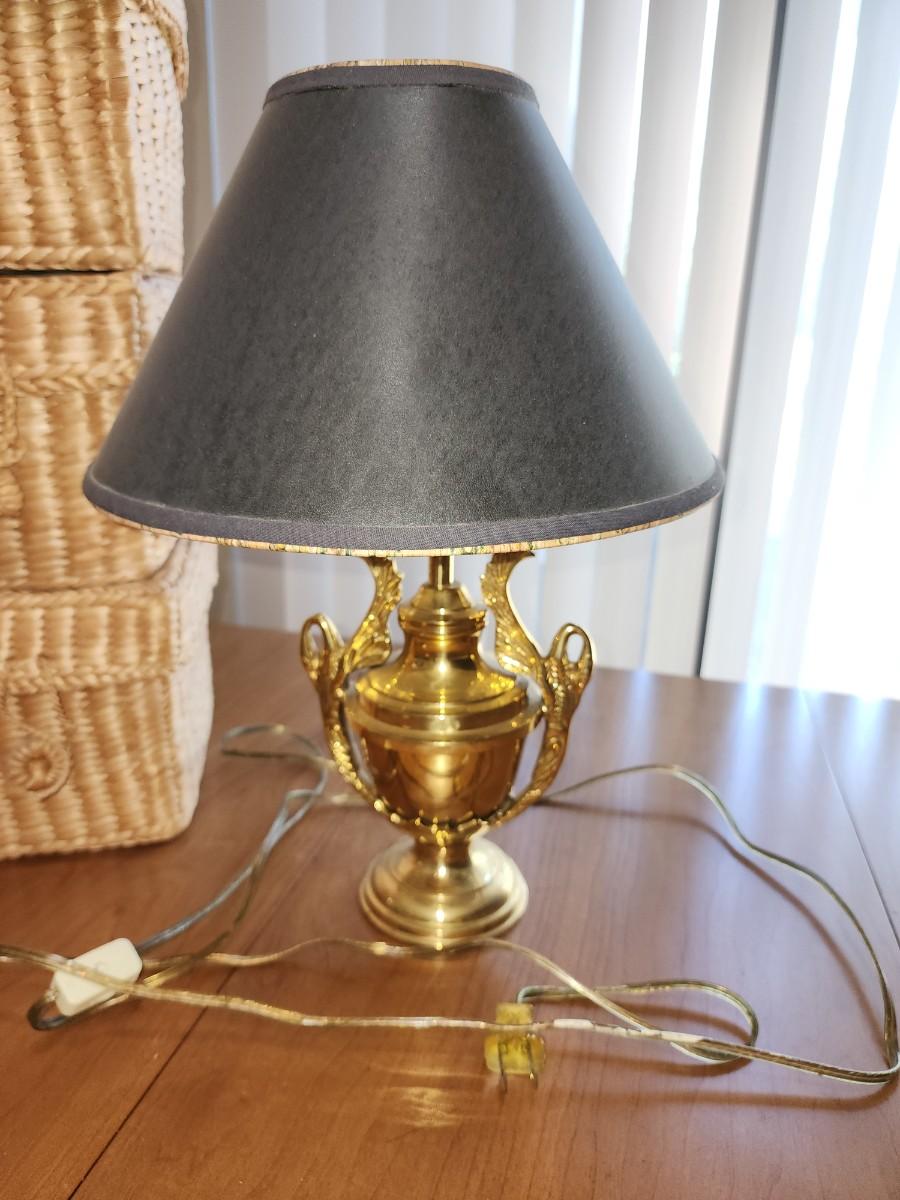 Brass desk lamp with black shade