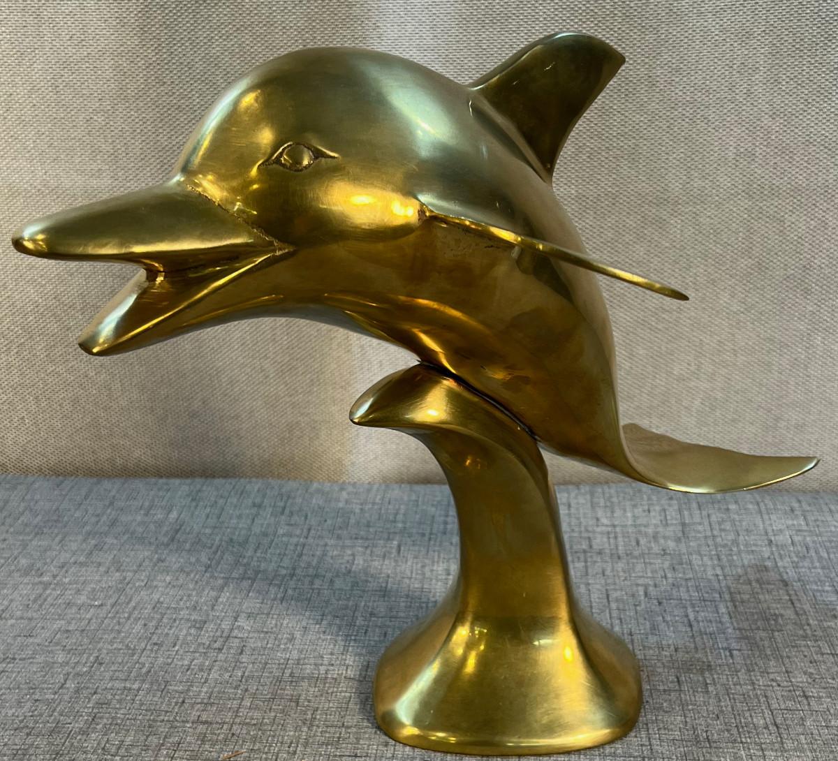 Happy Porpoise 12" Tall 13" Long Pure Brass Hollow NICE!!!