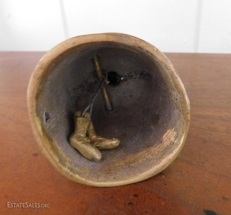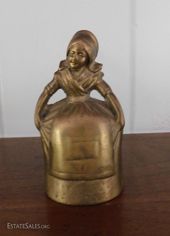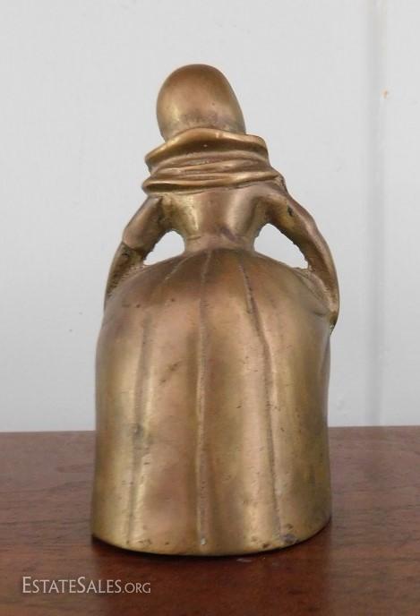 Thick, solid brass bell of Dutch Girl. Clappers are fashioned into two feet. Real nice tone. Good condition. About 5". Shipping Available.