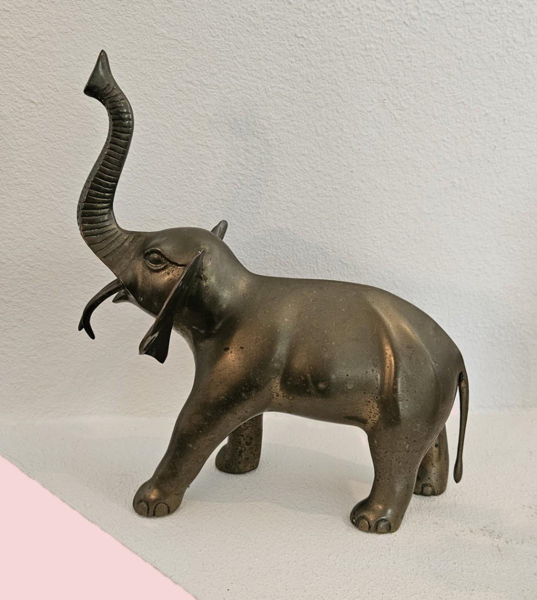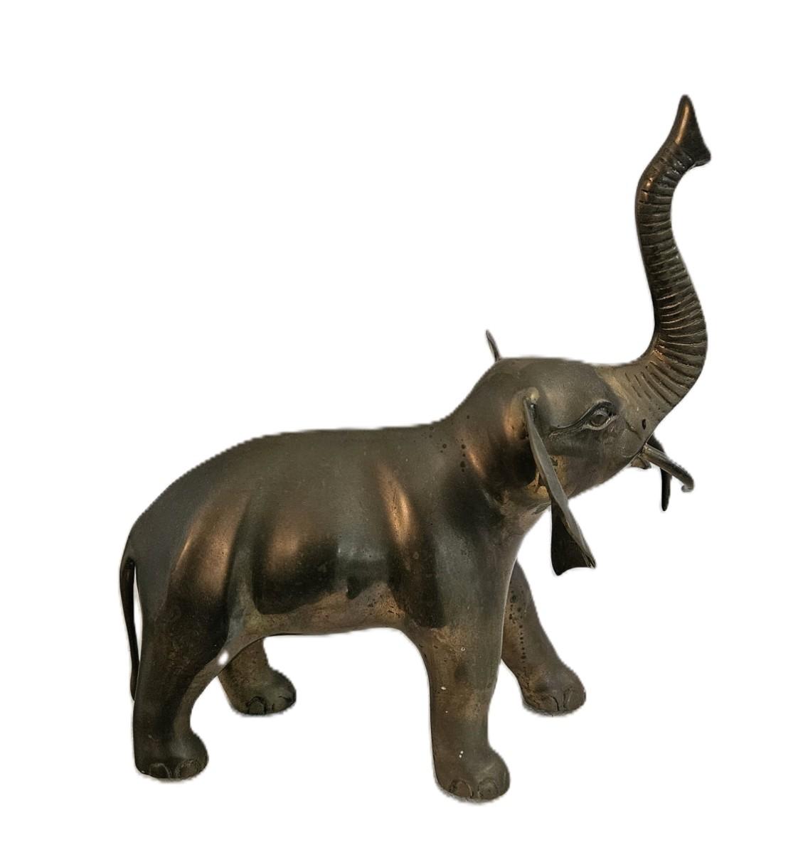 Vintage Brass Elephant Statue W/ Raised Trunk