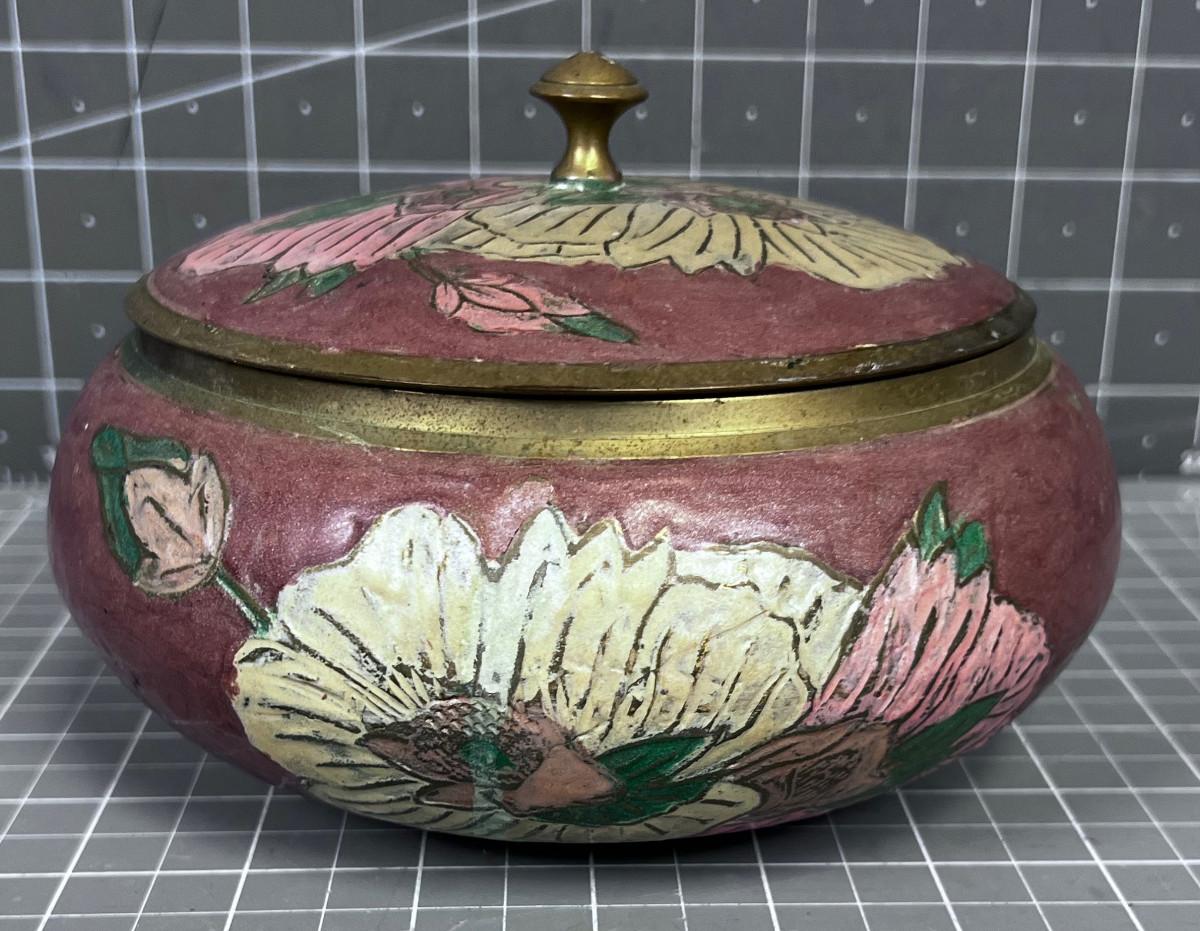 Used. Nice Condition. Floral. 7" Diameter with Lid.