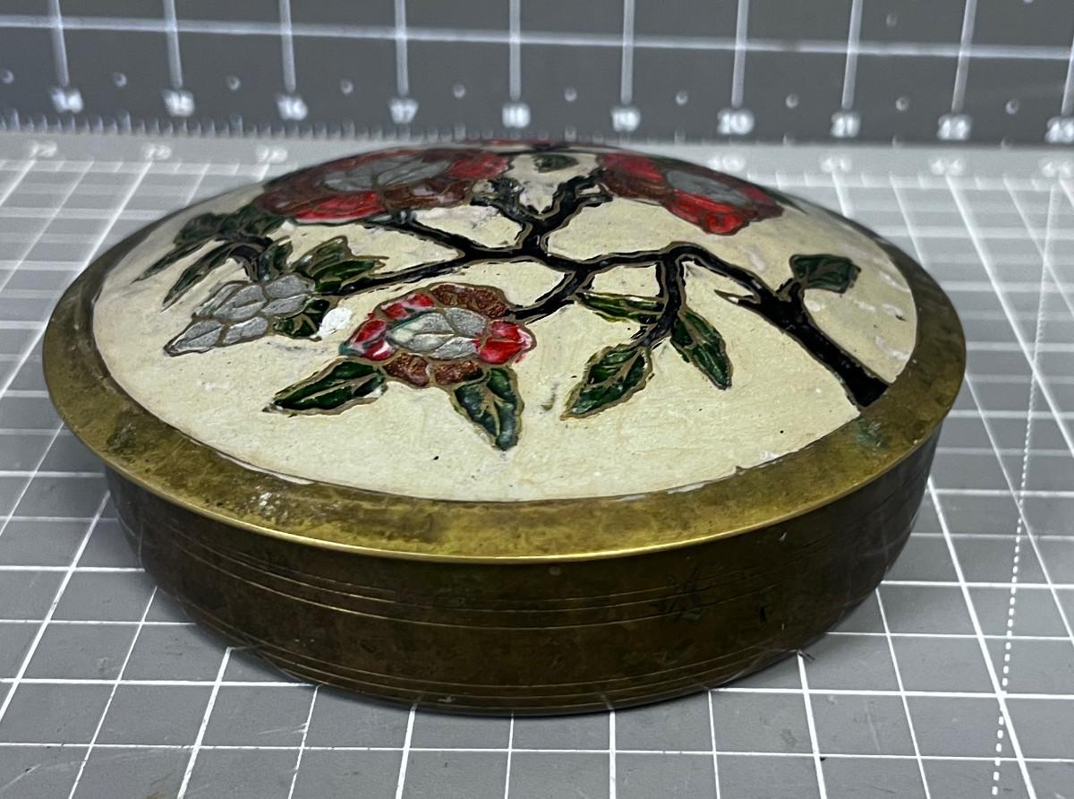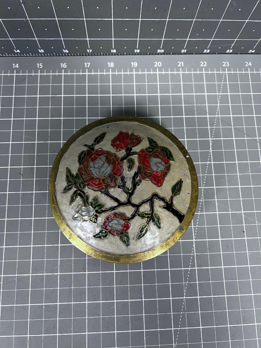 Used. Nice Condition. Floral. 5" Diameter with Lid.