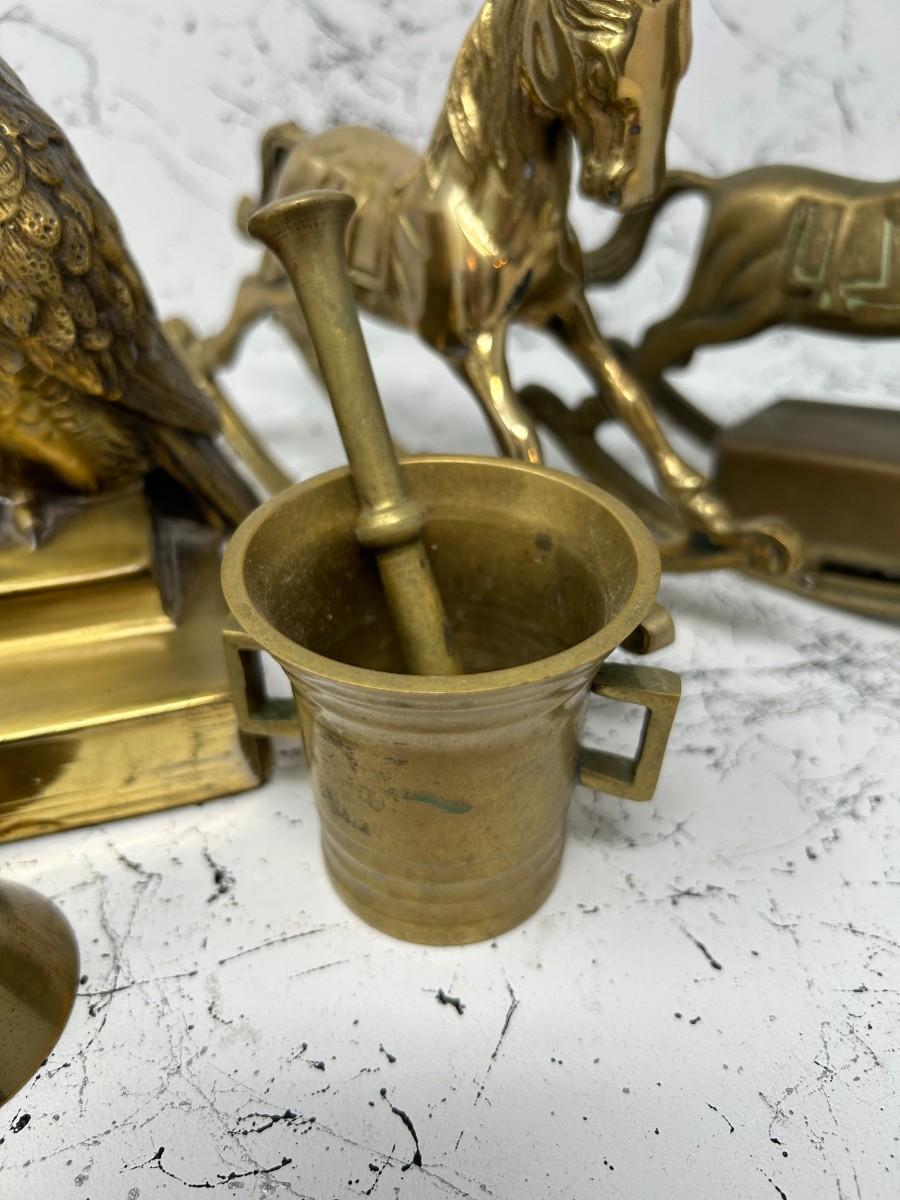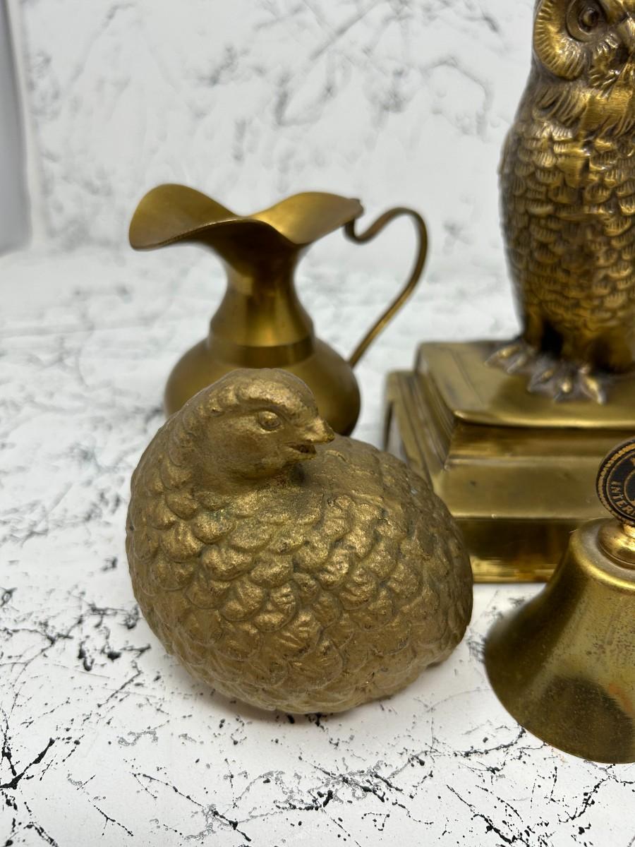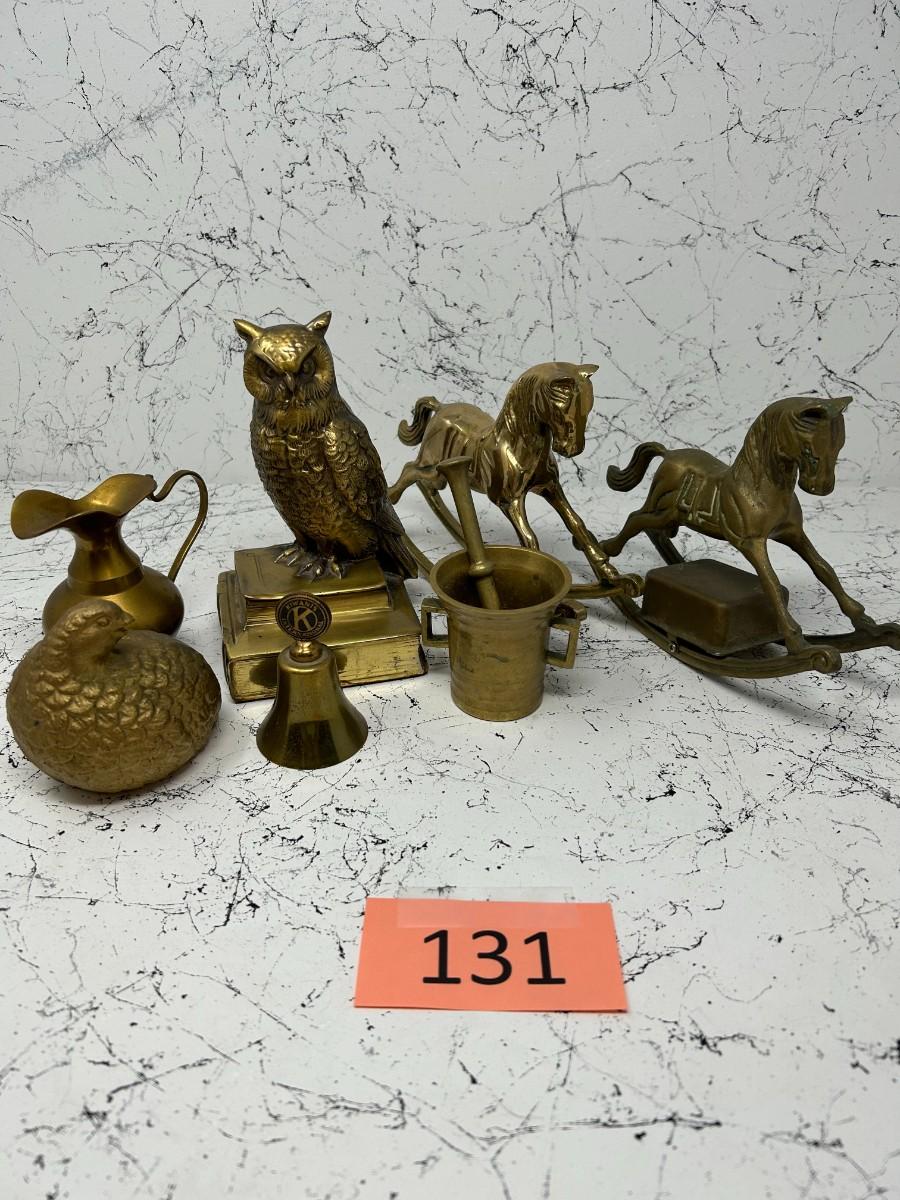 Brass figures Pigeon, Gravy Boat, Owl, Muddling cup, Rocking horse, Musical Rocking Horse