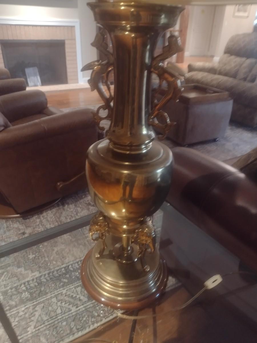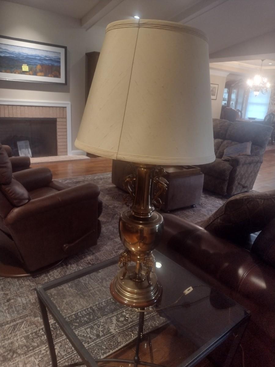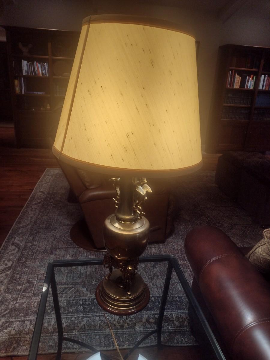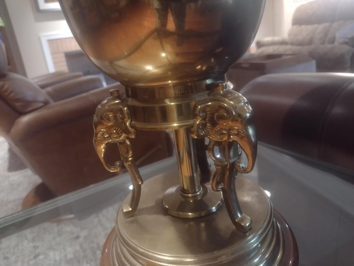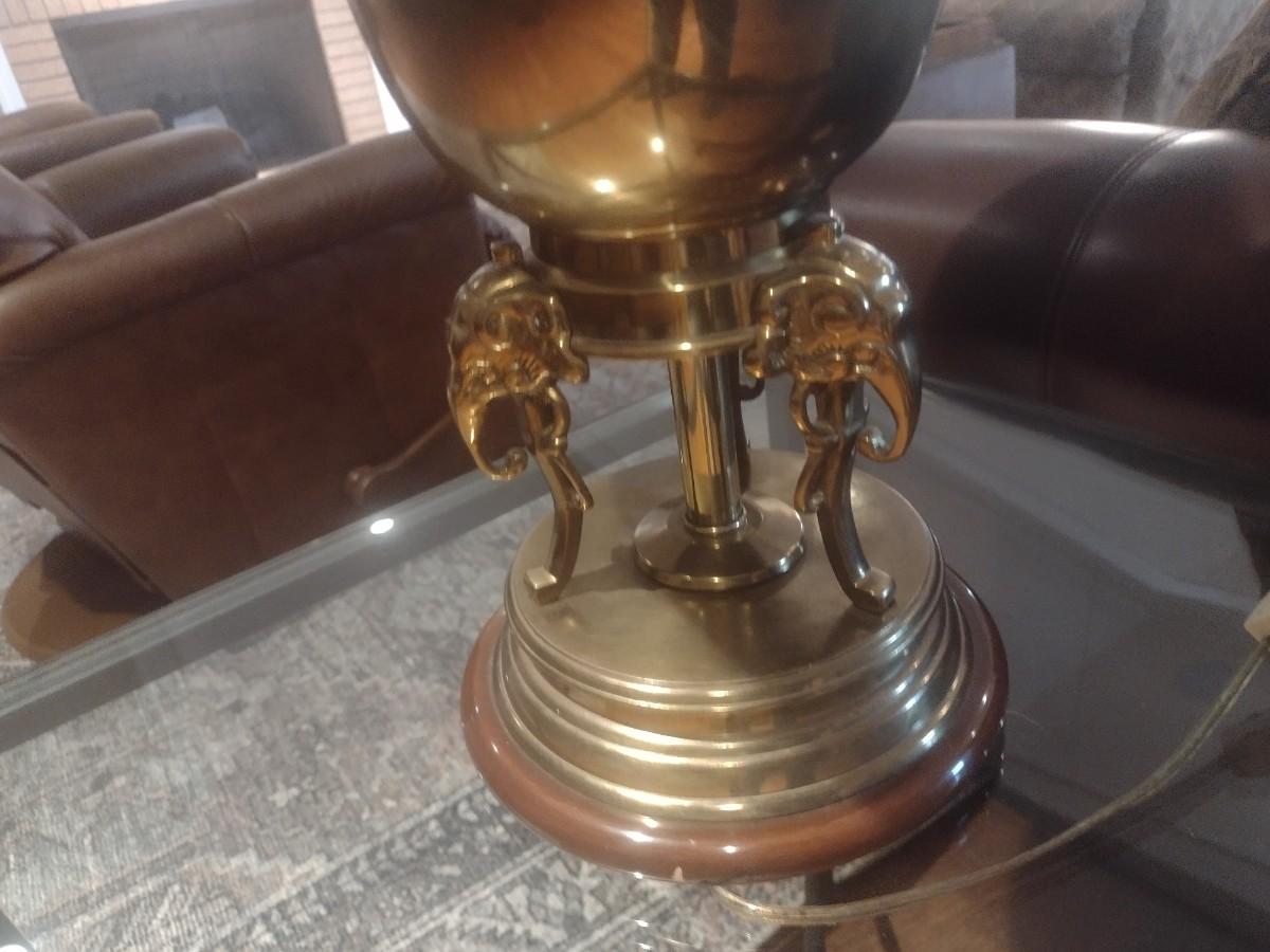 Brass Finish Elephant Figural Post Table Lamp with Shade