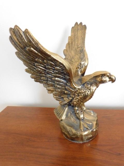 Brass Finish Metal Desk-Top Eagle Statuette 12"