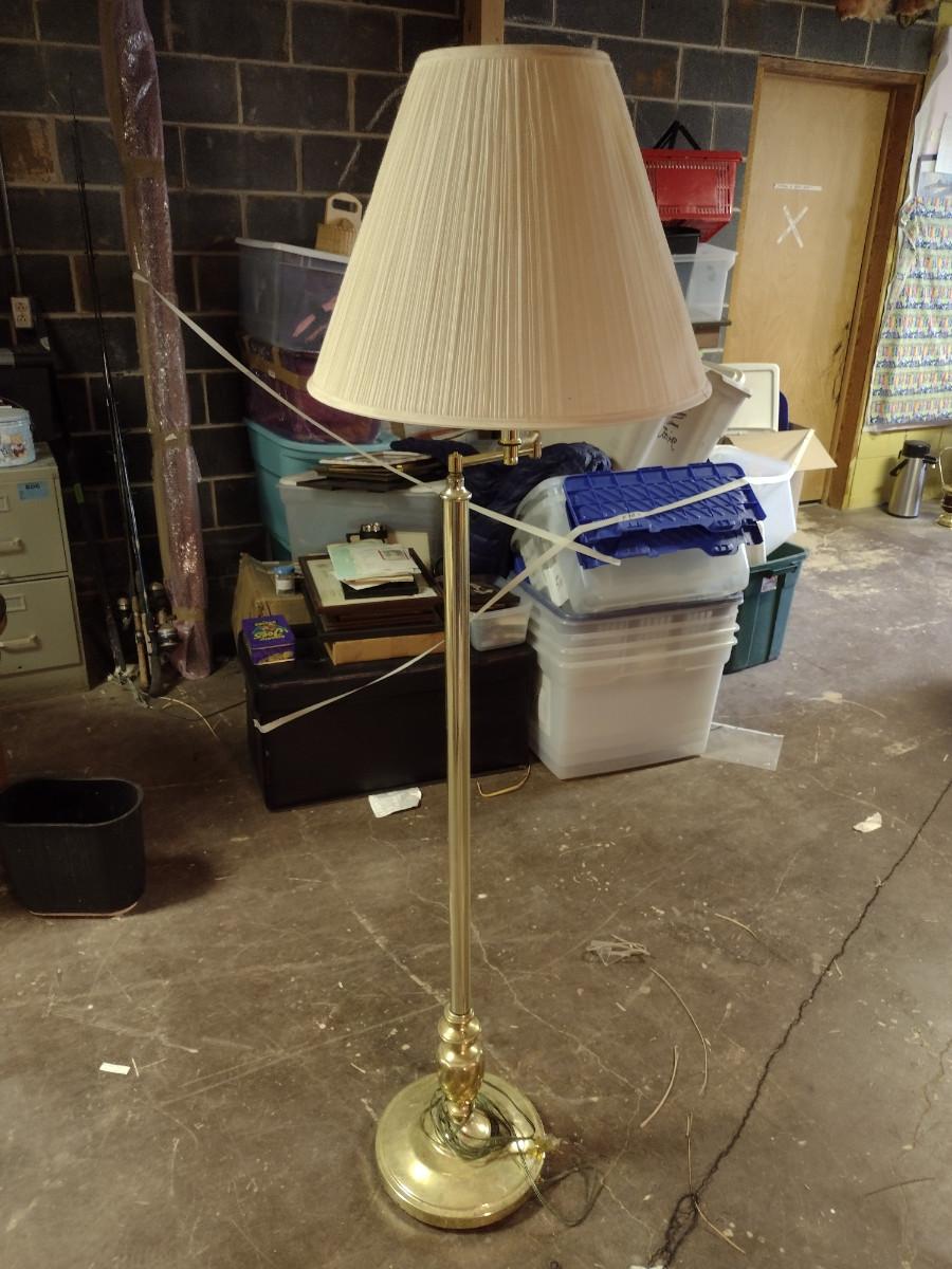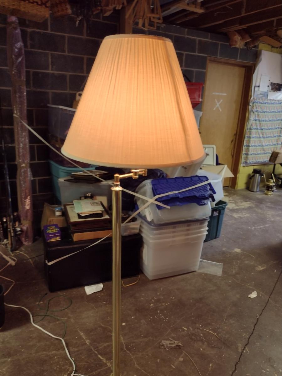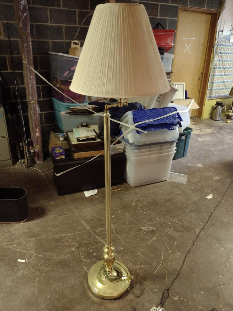 Brass Finish Swing Arm Floor Lamp with Shade- Approx 61 1/2" Tall