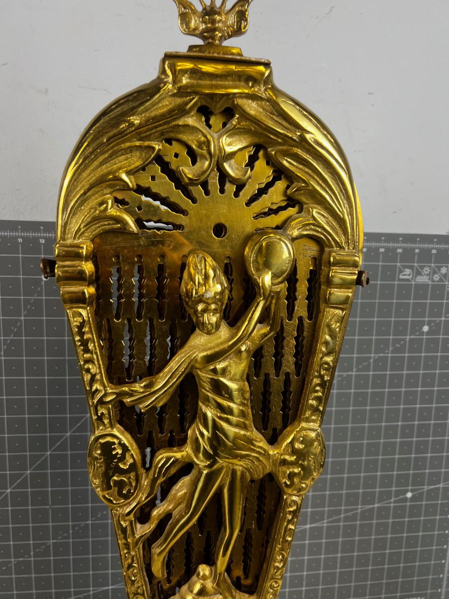 That’s a lot of BRASS. Large! Good Condition. Be AWARE Is missing a clip that holds one of the fans. Measures 48 W. X 36" Tall. Impressive Piece.