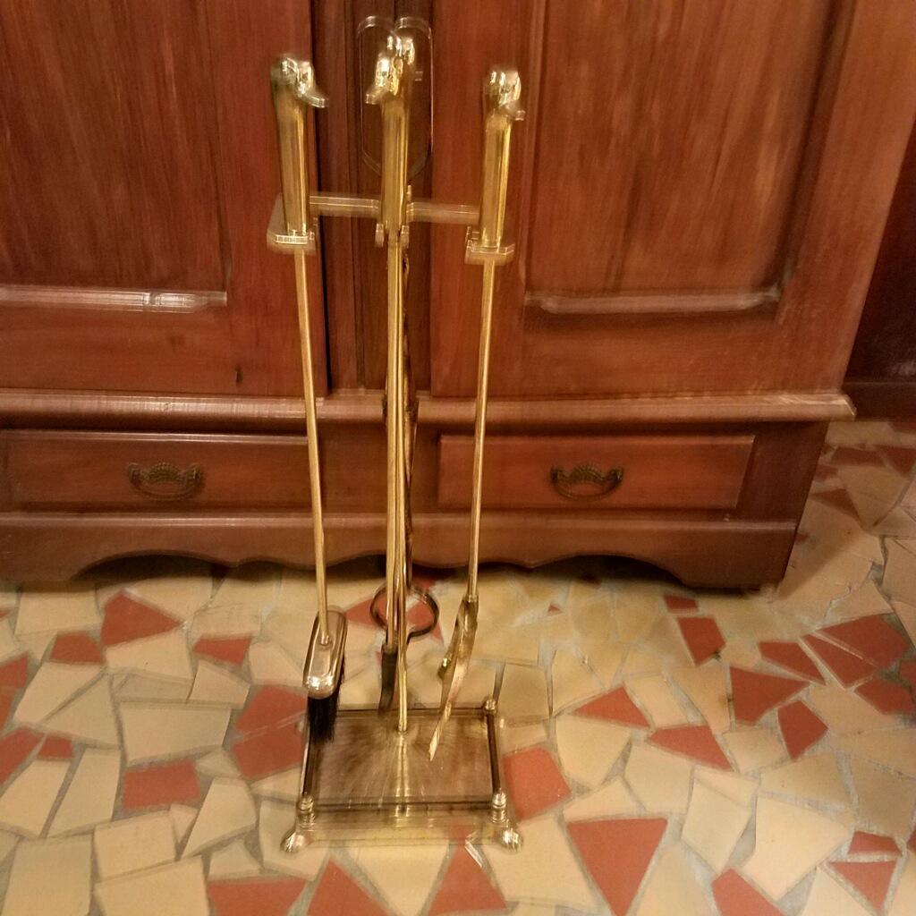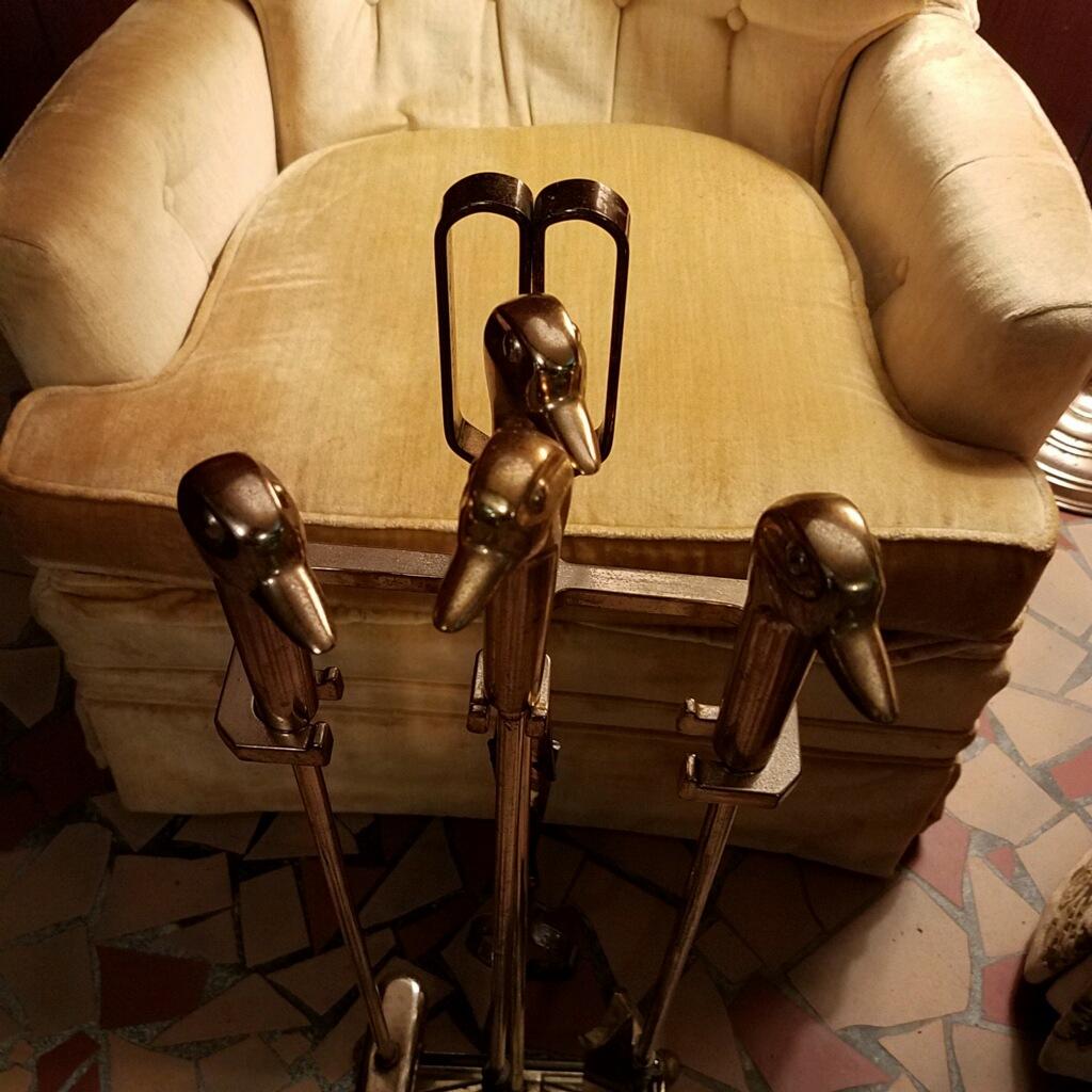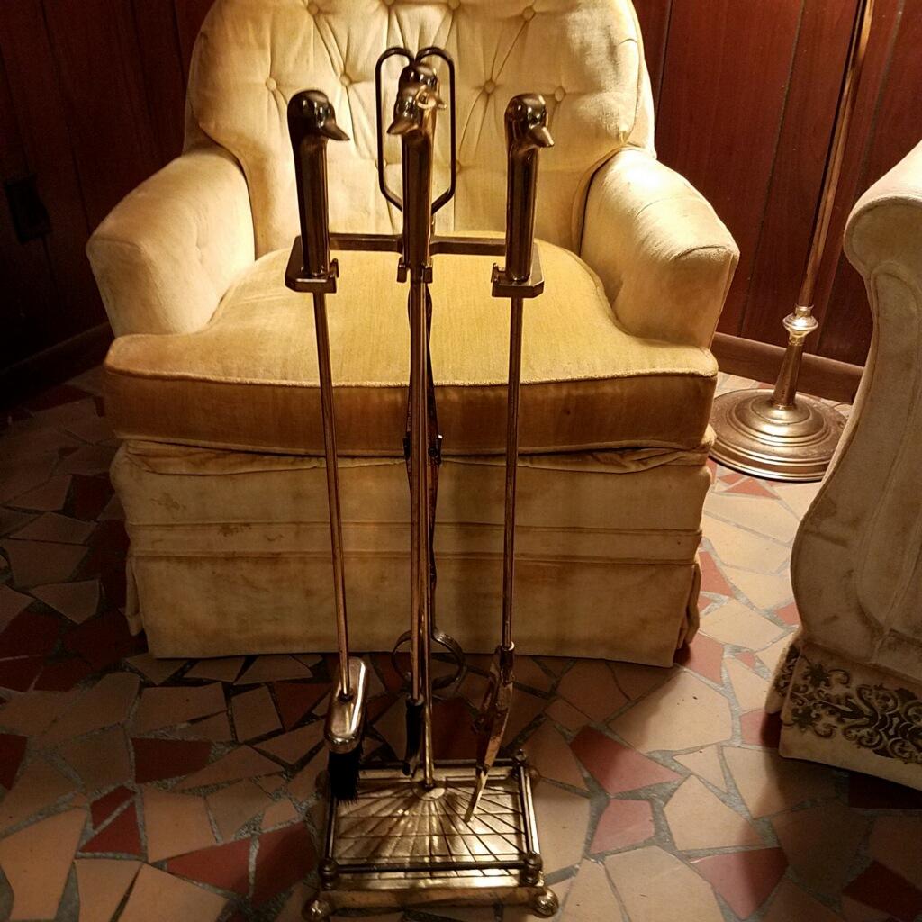 Fireplace Set A: brass set of 4 tools with duck head and stand with Duck Head