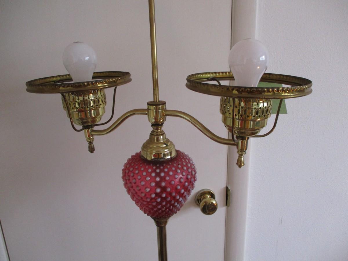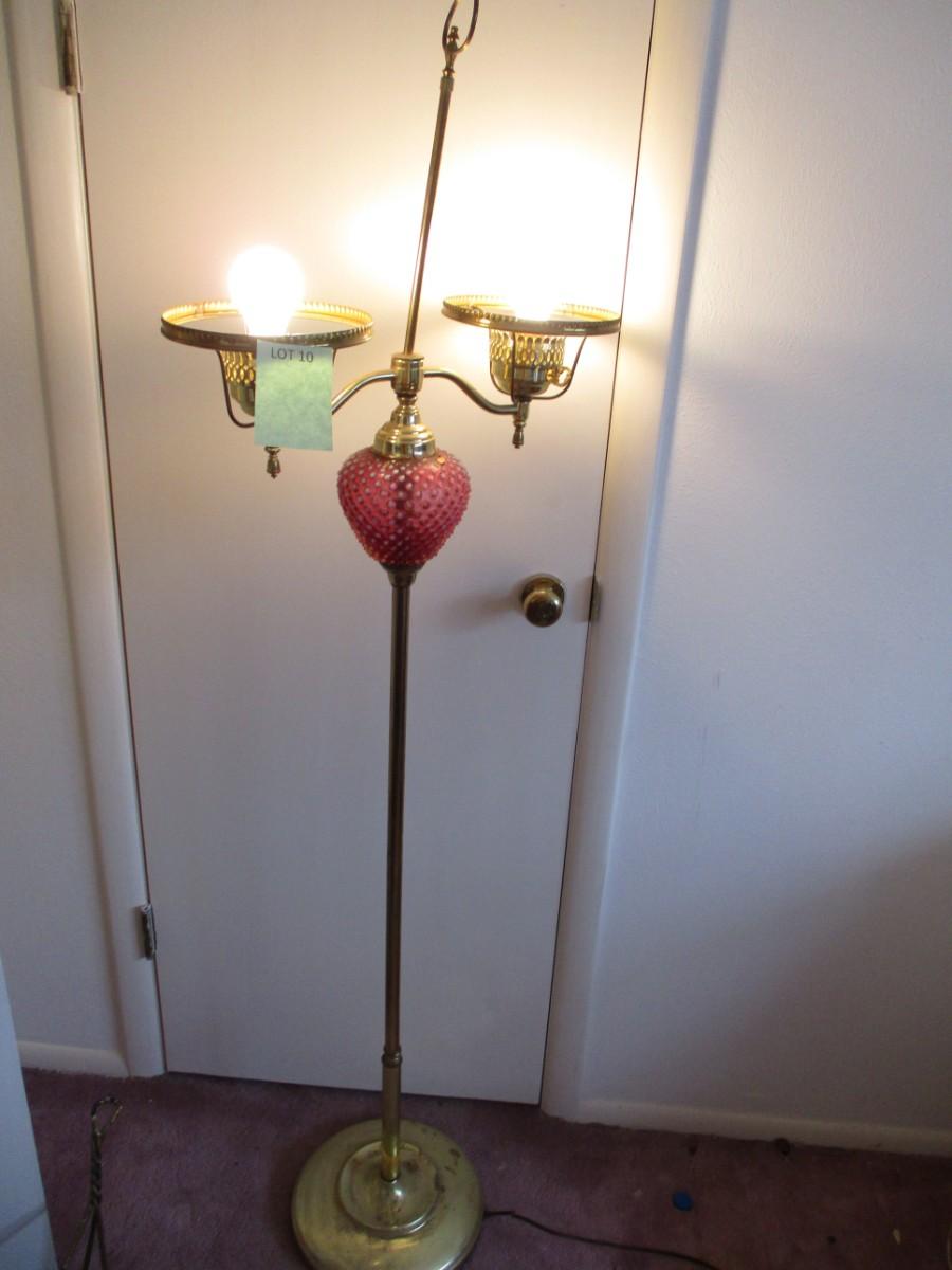 Brass Floor lamp w/hobnail globe design. Heavy base.