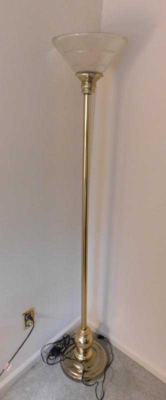 Brass Floor Lamp with Glass Reverse Shade
