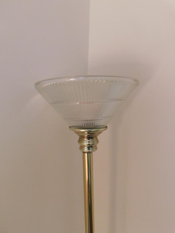 Brass Floor Lamp with Glass Reverse Shade in great condition.