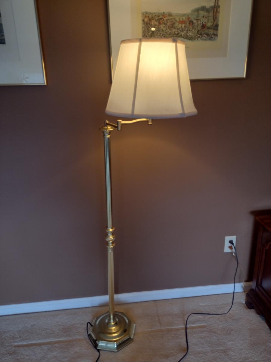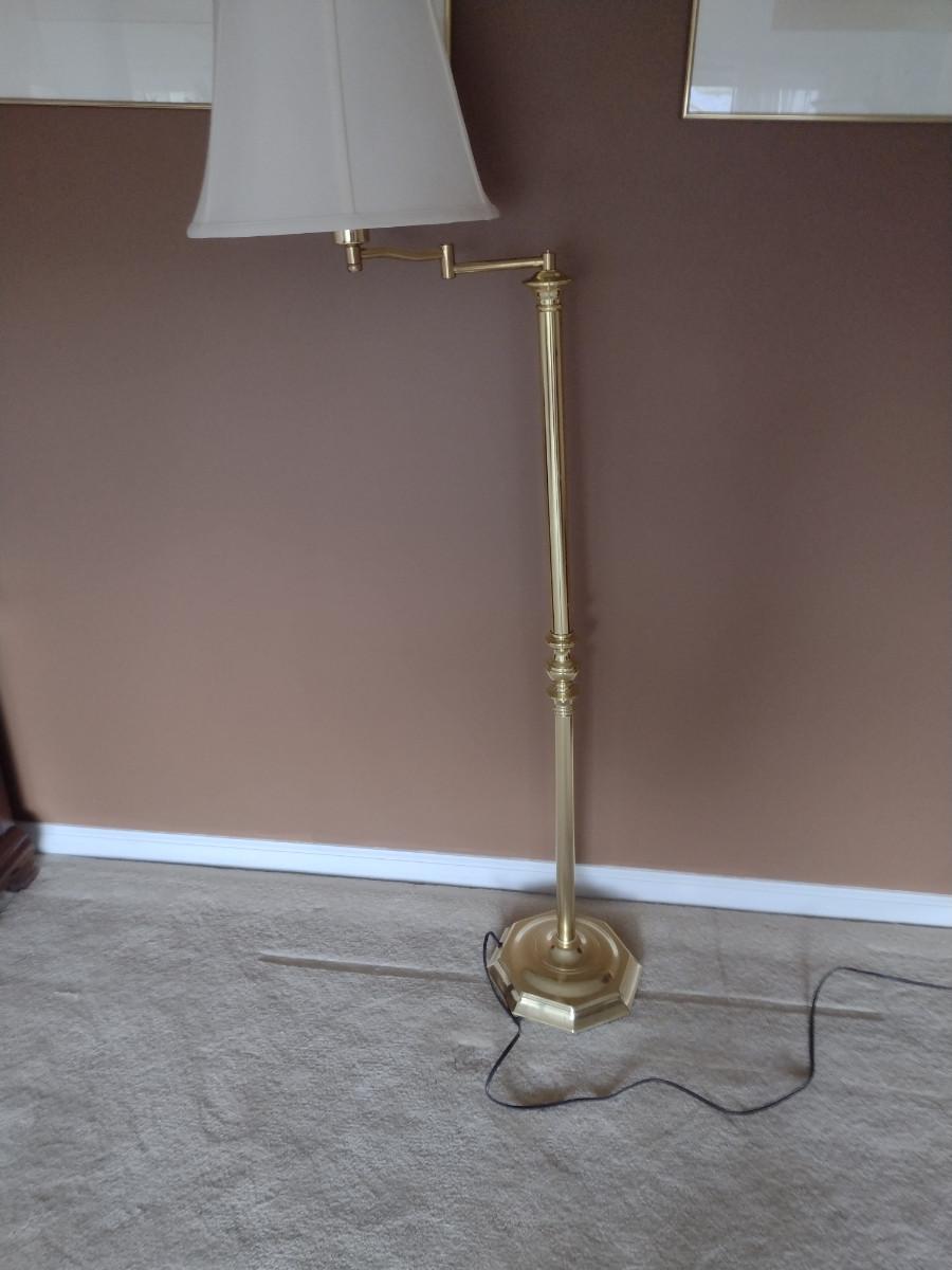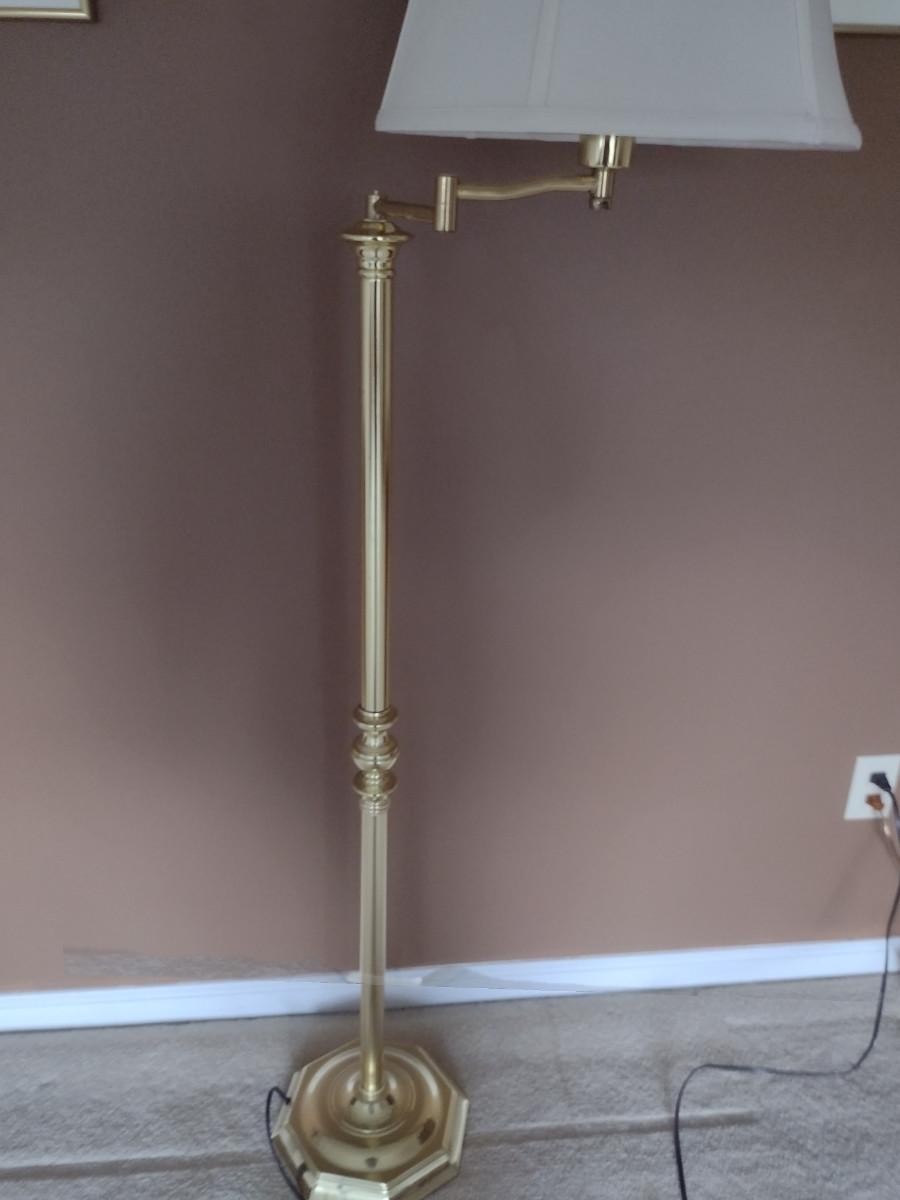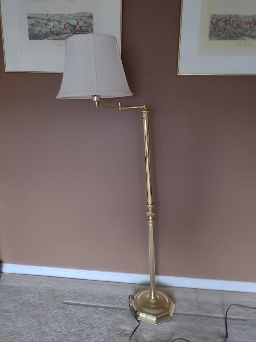 Brass Floor Lamp with Swing Arm. Item is a bit wobbly and may need tightening.
