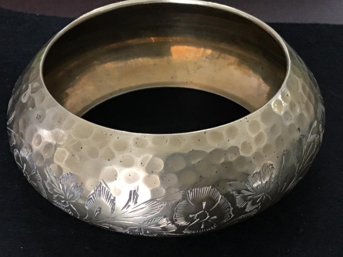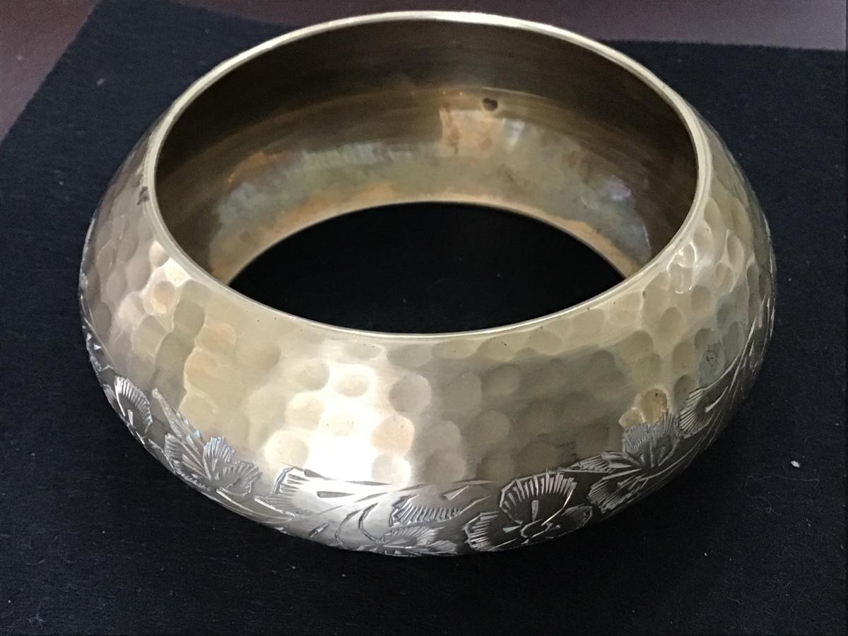 Brass Floral Bangle Wide Vintage
