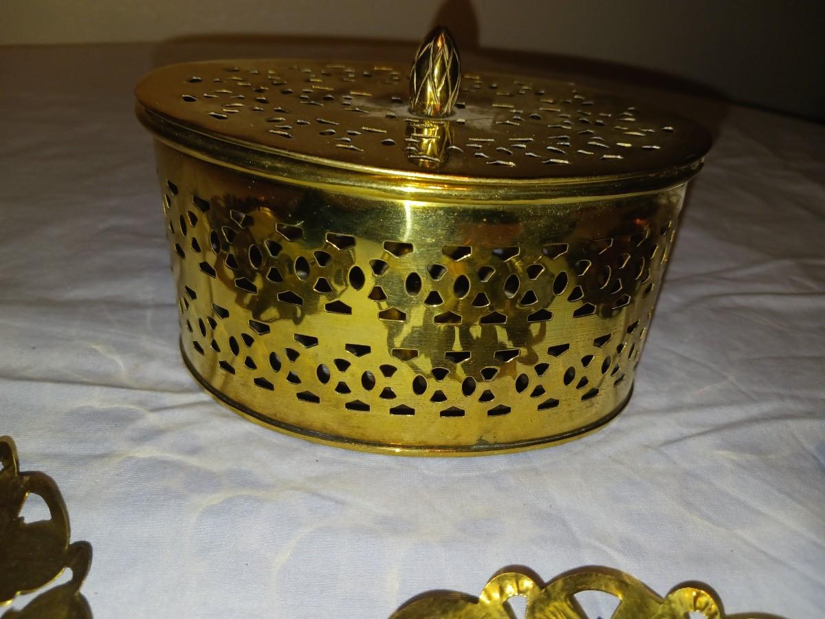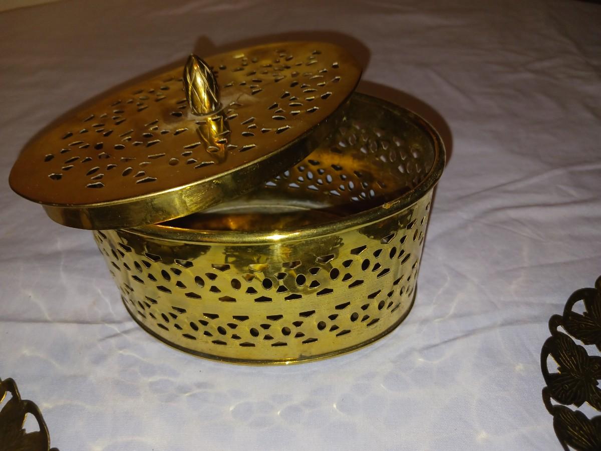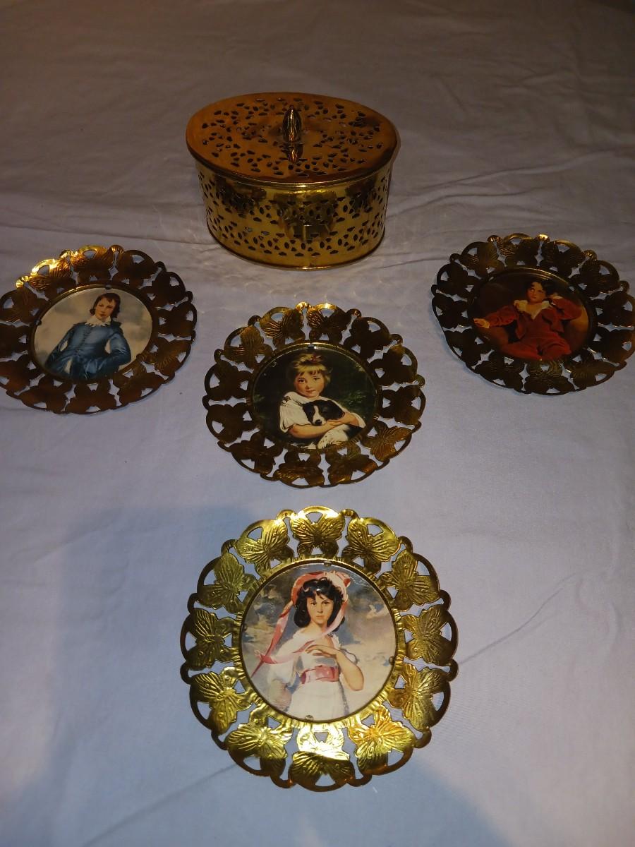 BRASS FRAMED PICTURES AND TRINKET BOX