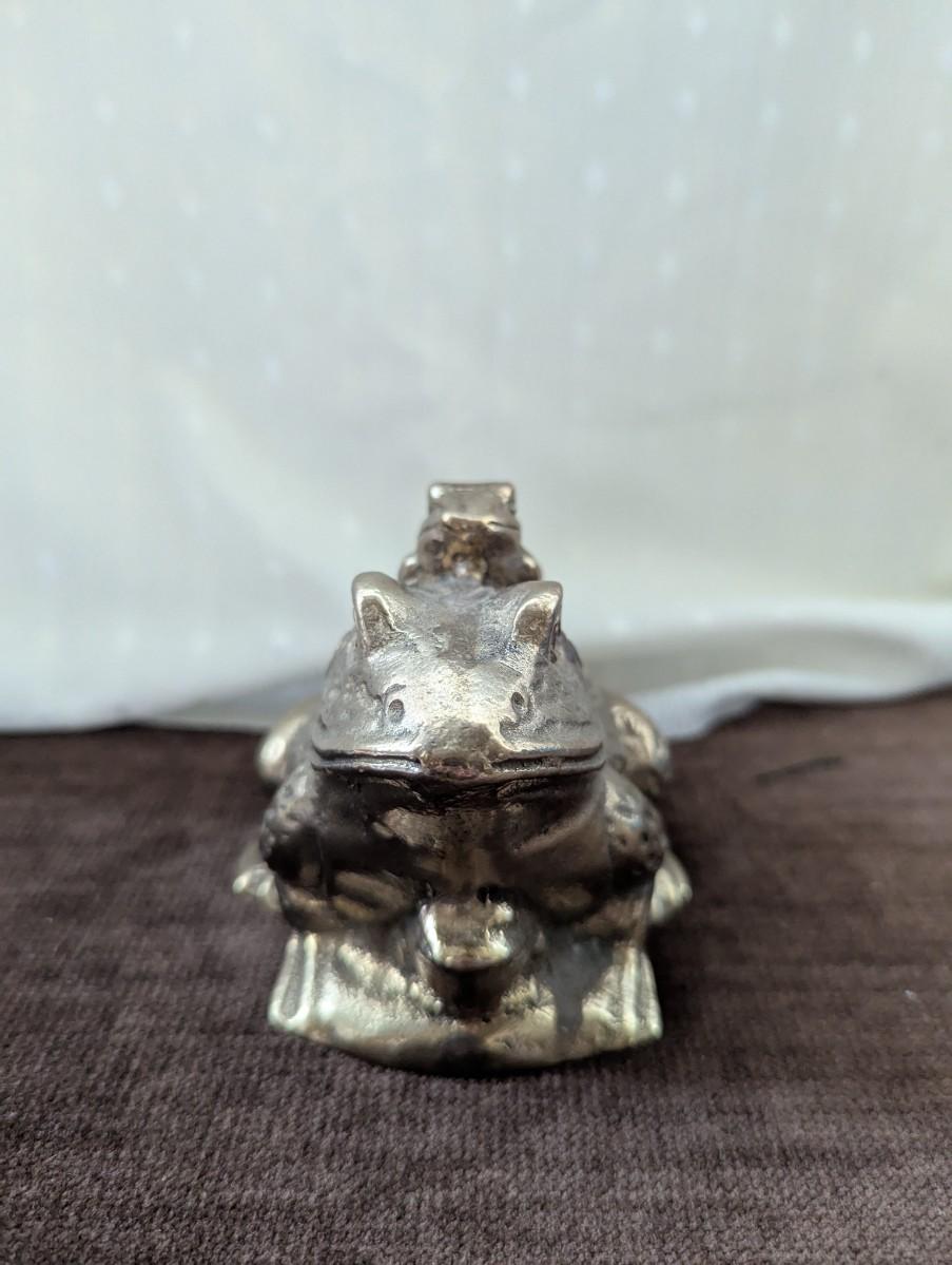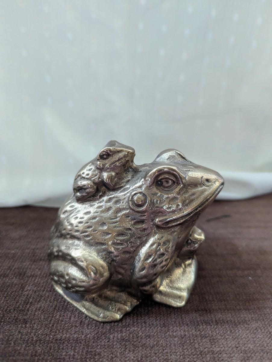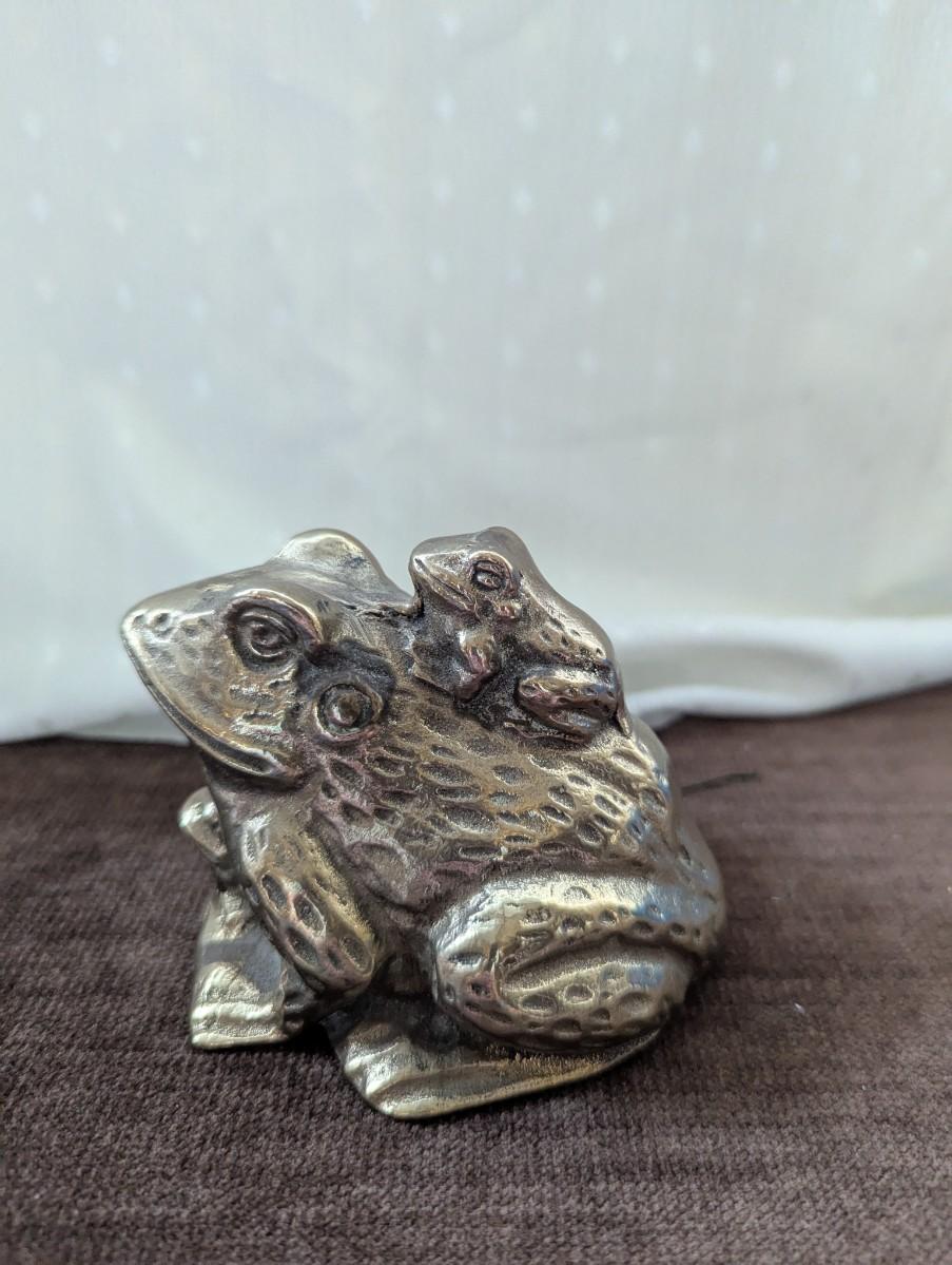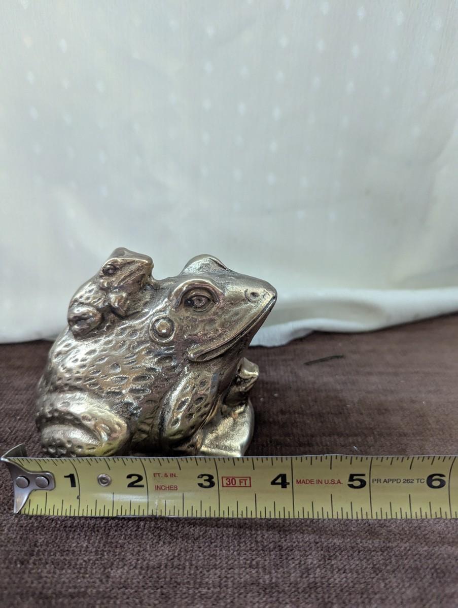 Vintage Brass Tree Frog Toad Family textured figurine.