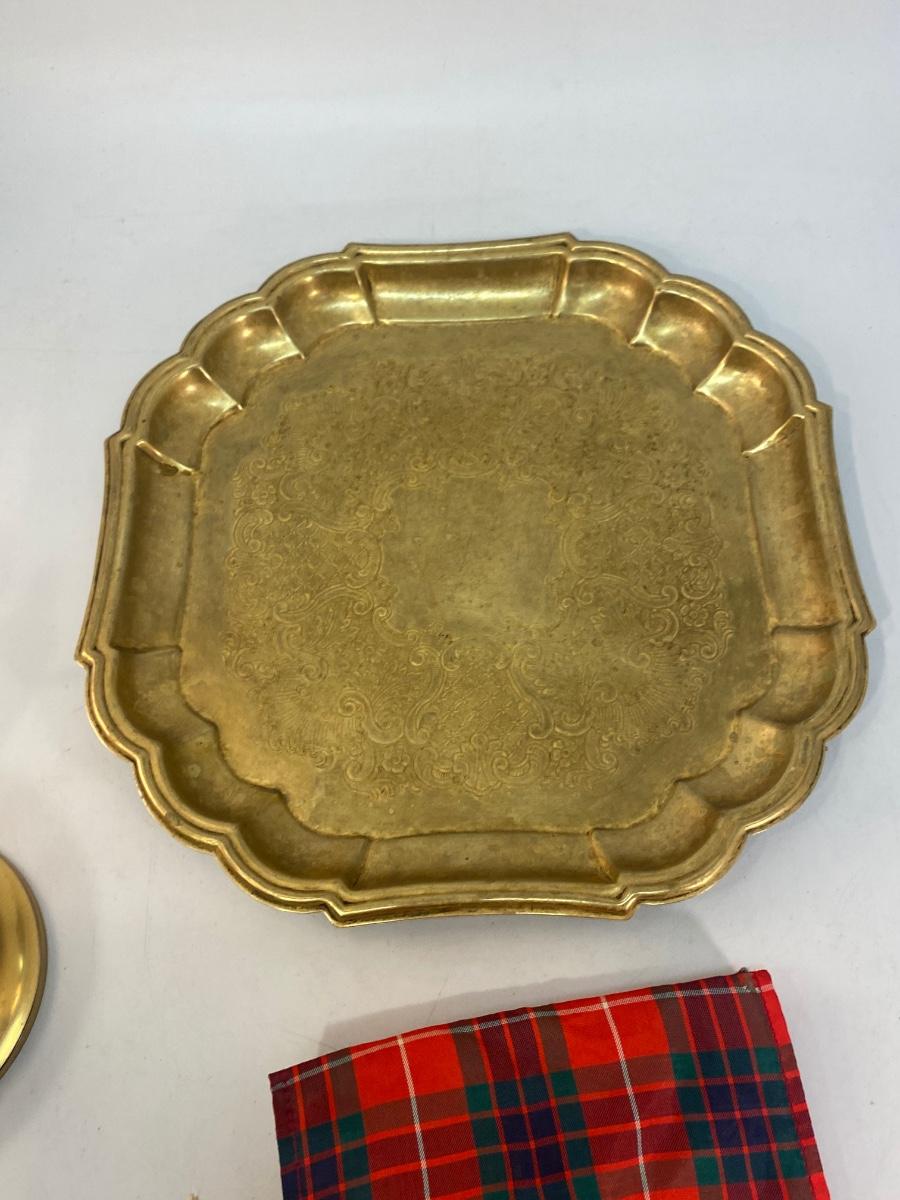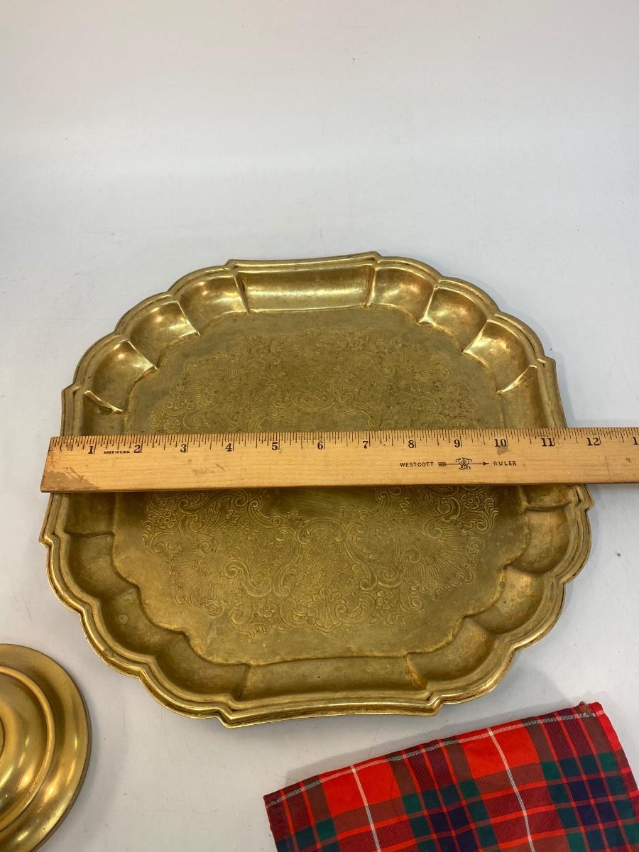 Brass Gentlemen's Shaving Set Smoking Pipe & Tray Set. Shaving set has a spot for hanging razor as well. Everything in good vintage condition.